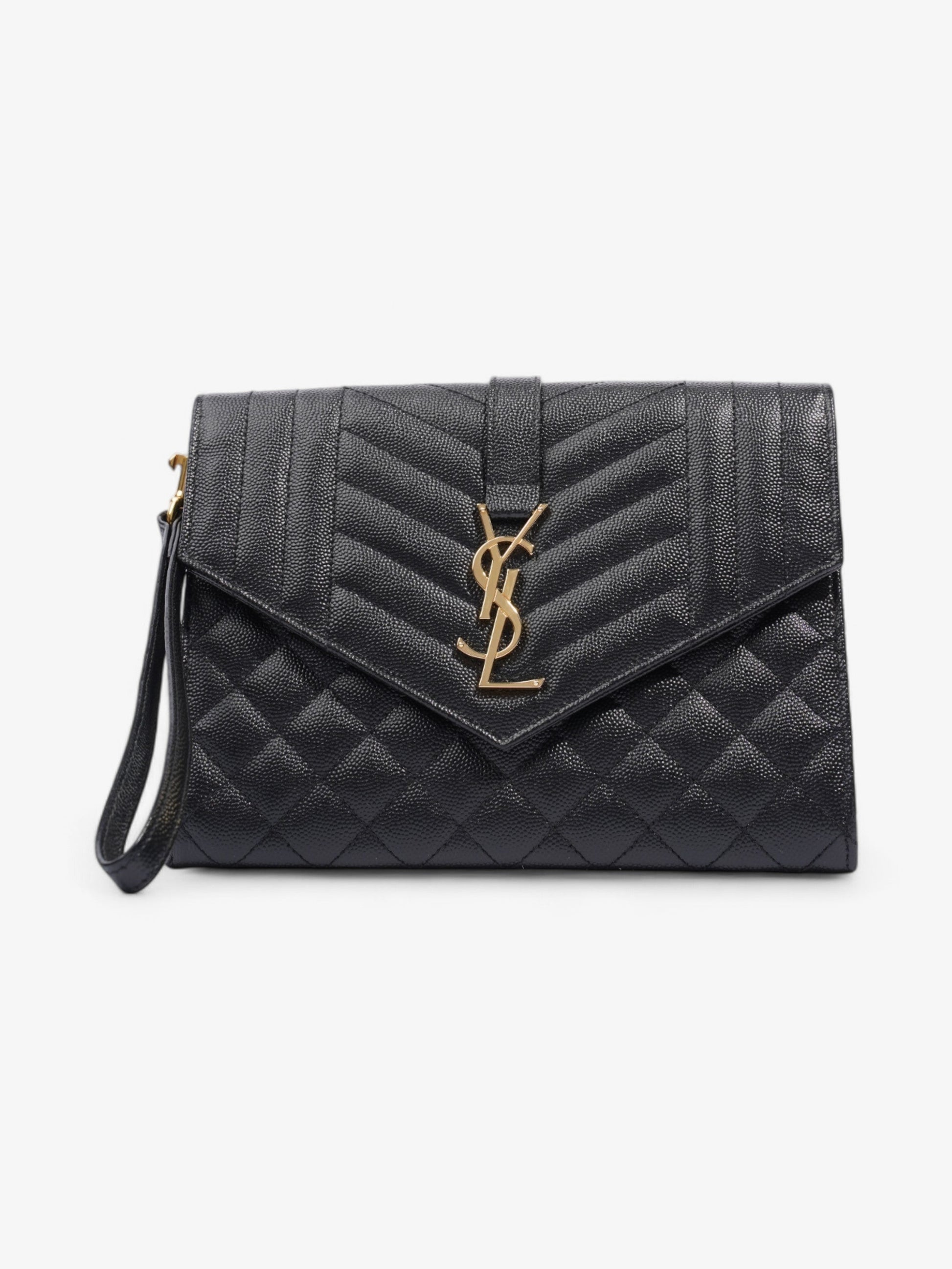 Saint Laurent Monogram Envelope Clutch Black Grained Leather