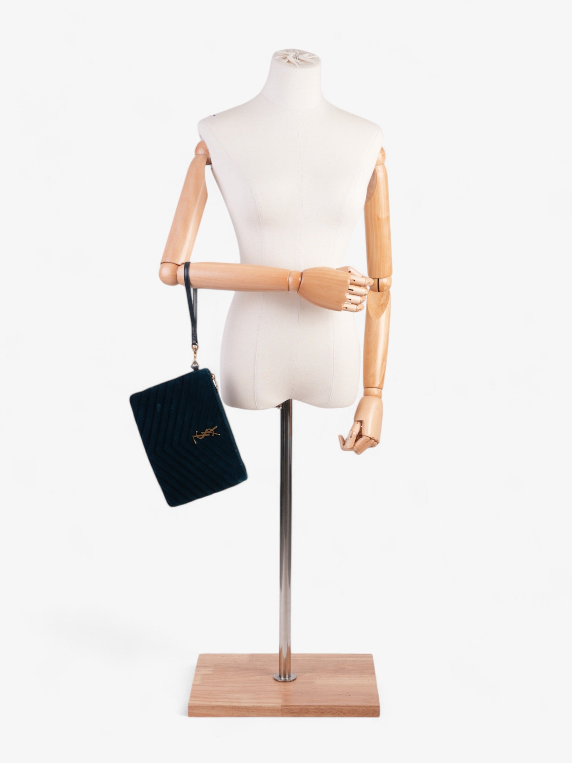 Saint Laurent Monogram Wristlet Midnight Blue Velvet