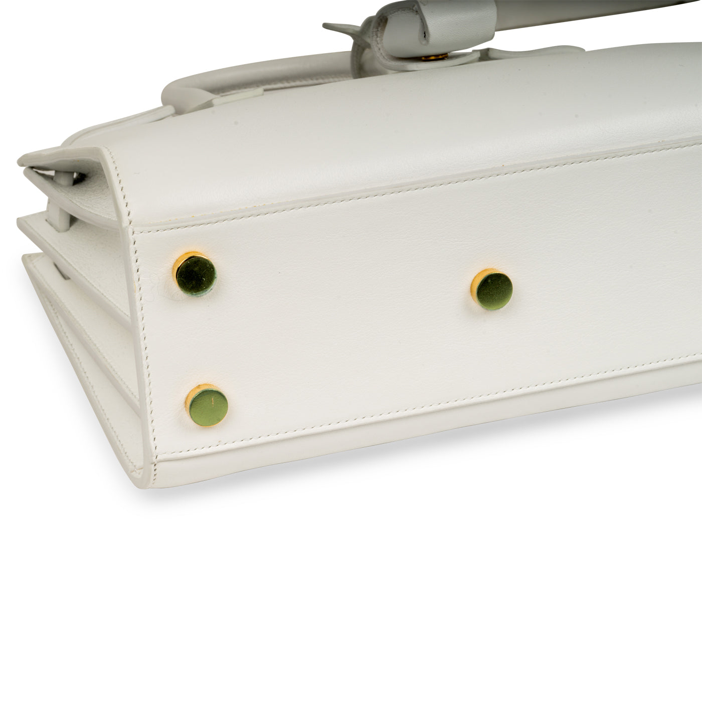 Designed by Hedi Slimane during his reign at Saint Laurent, the brand continues to produce the iconic Sac de Jour bag under the creative direction of Anthony Vaccarello. Acclaimed for its rock n' roll, heroine-chic designs, the SDJ is no exception to the edgy aesthetic. The sleek and structured bag is perfect for the stylish, modern woman with a love for luxury. With its singular open compartment, the Sac de Jour has plenty of space for your small daily essentials. The gold-tone hardware compliments the bright white hue and with the additional shoulder strap ideal for cross body usage, you can go about your day handsfree and in style. Chic, contemporary and a true must-have for any individual with an edge, no luxury handbag collection is really complete without a Sac de Jour.
