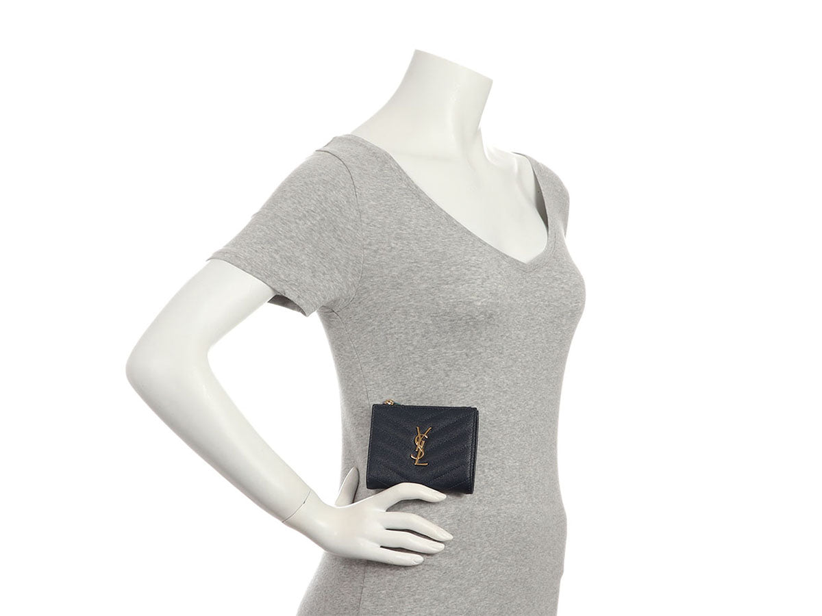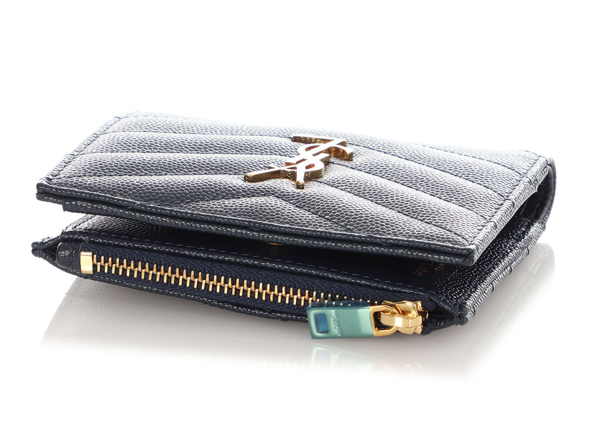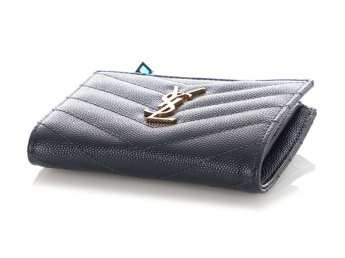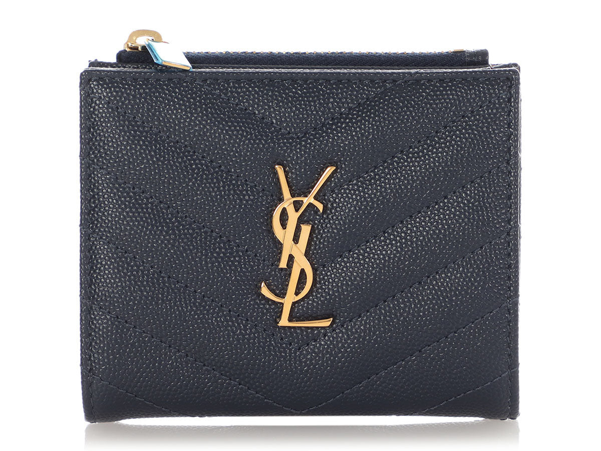 Saint Laurent Navy Grain de Poudre Compact Wallet