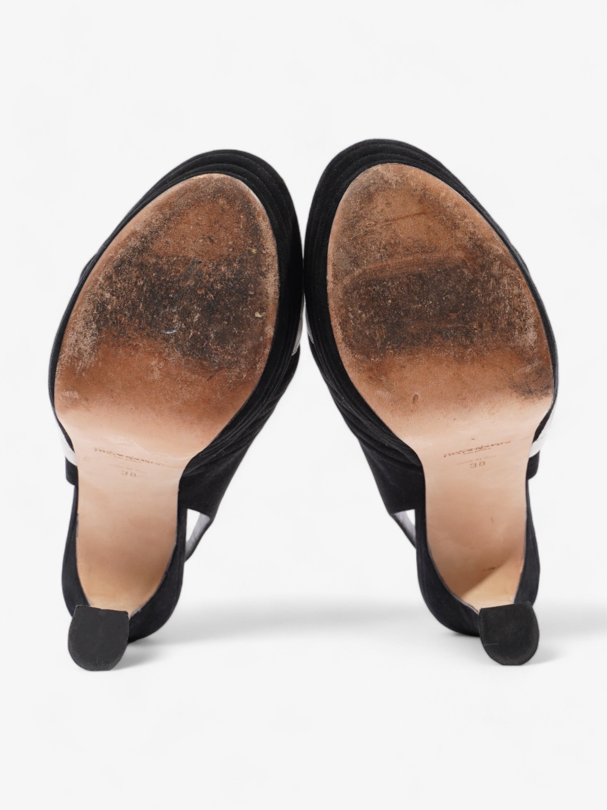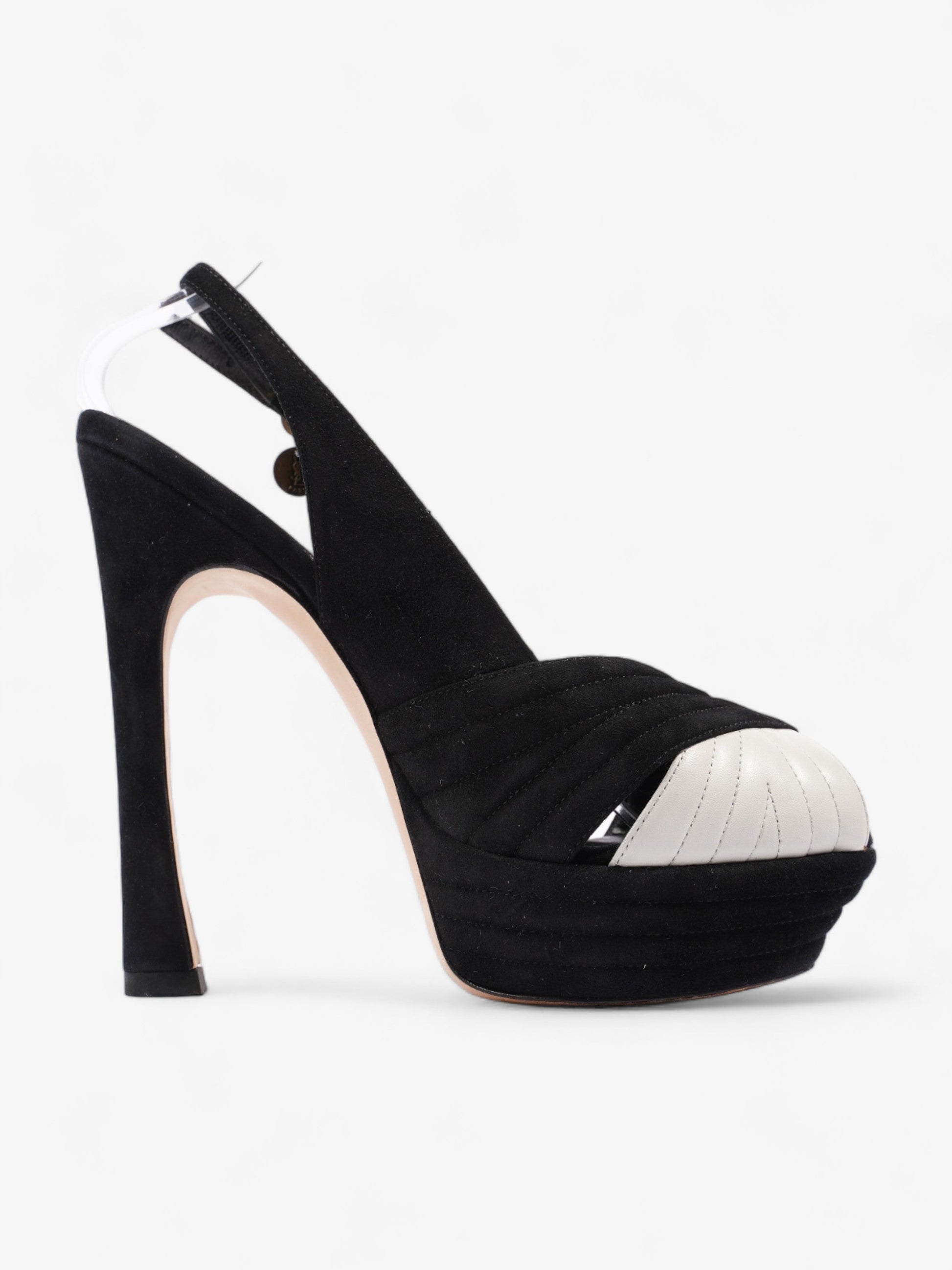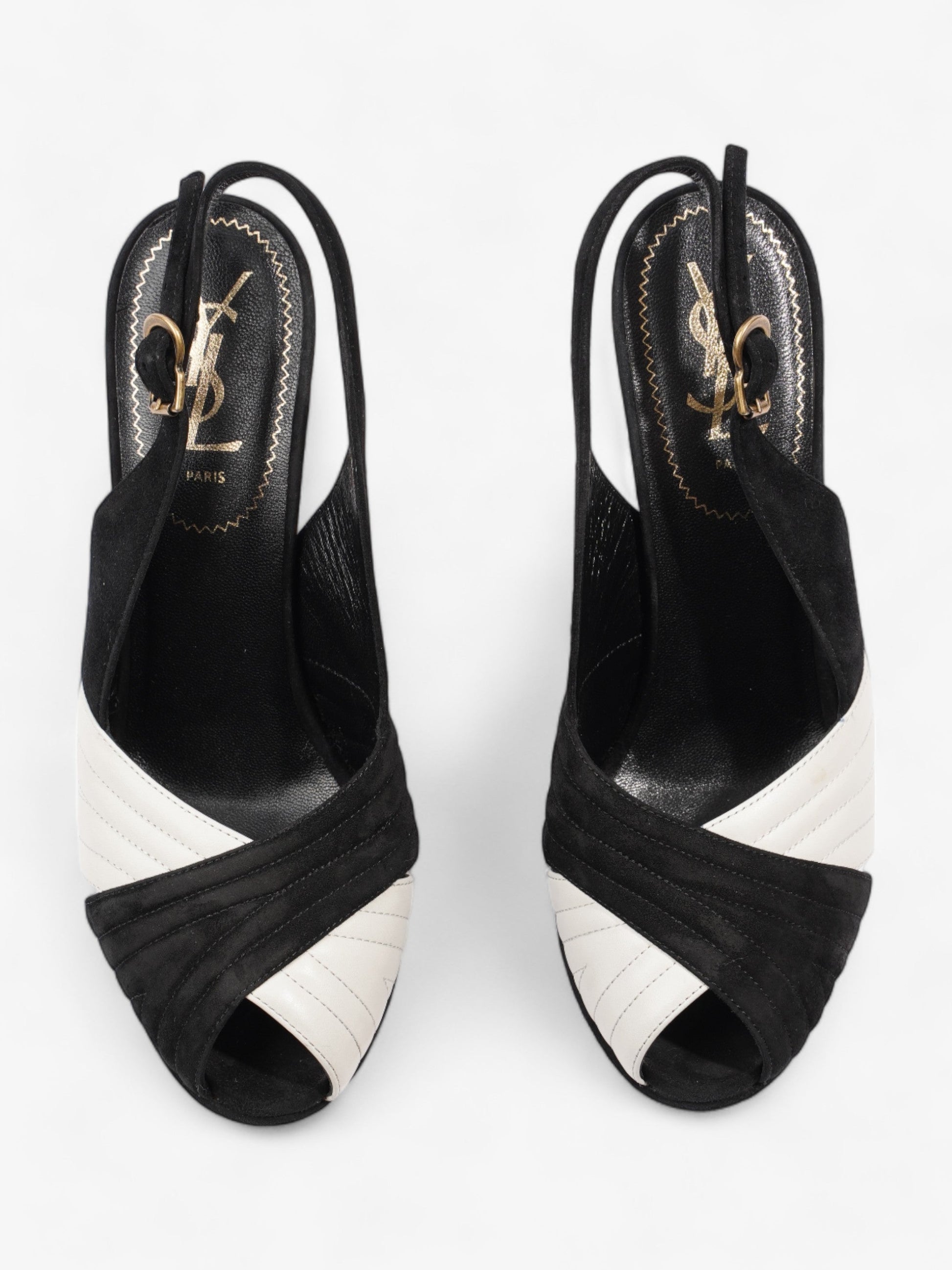 Saint Laurent Quilted Slingback Platform Heels 110mm Black / White Suede EU 38 UK 5