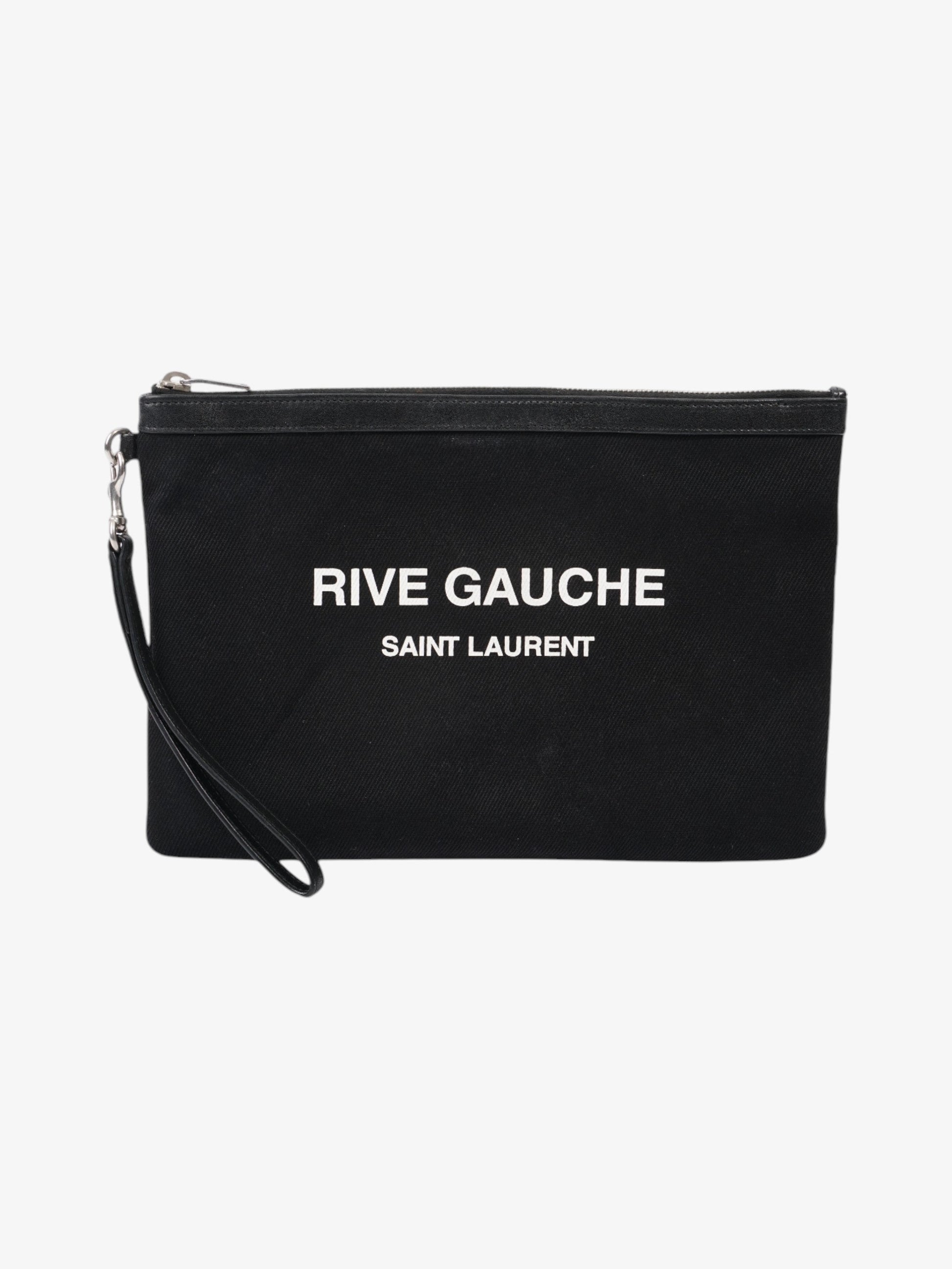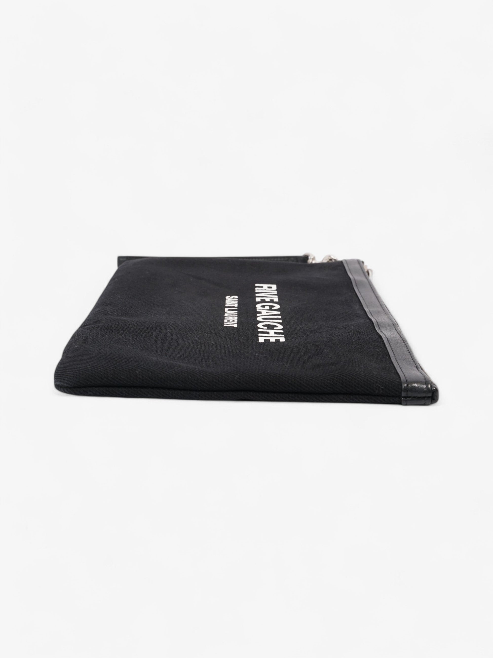 Saint Laurent Rive Gauche Clutch Black / White Canvas