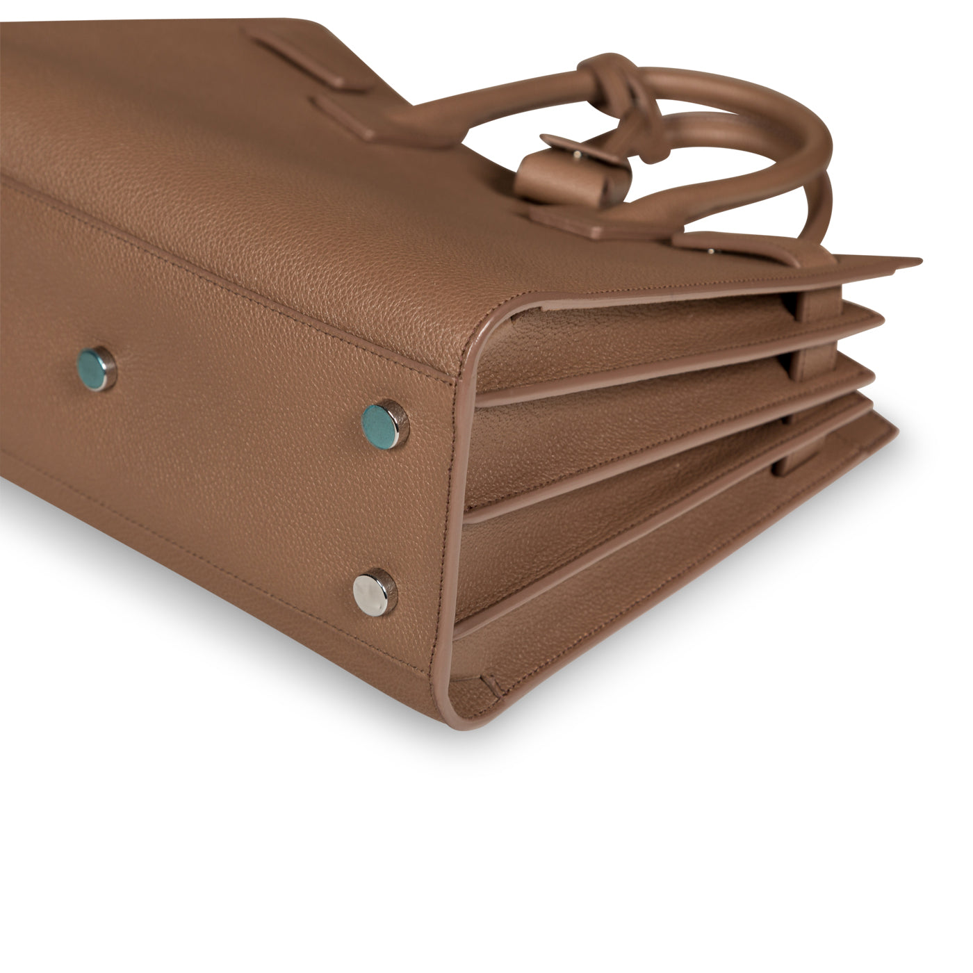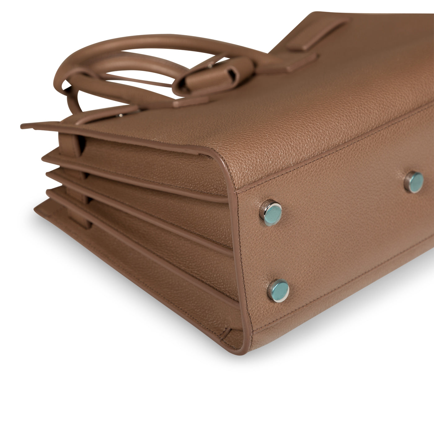 Widely renowned for its contemporary take on traditionally understated glamour, Saint Laurent brings us this miniature version of the much celebrated sac du jour. This breathtaking tote is full of character with its brownish/beige hue grained leather and adornment of silver toned hardware. Its interior encompasses multiple storage compartments and is lined with the finest black fabric lining. Style this bag with your favourite day outfit or detach its shoulder strap to create a jaw-dropping evening look that is sure to leave everyone in awe.