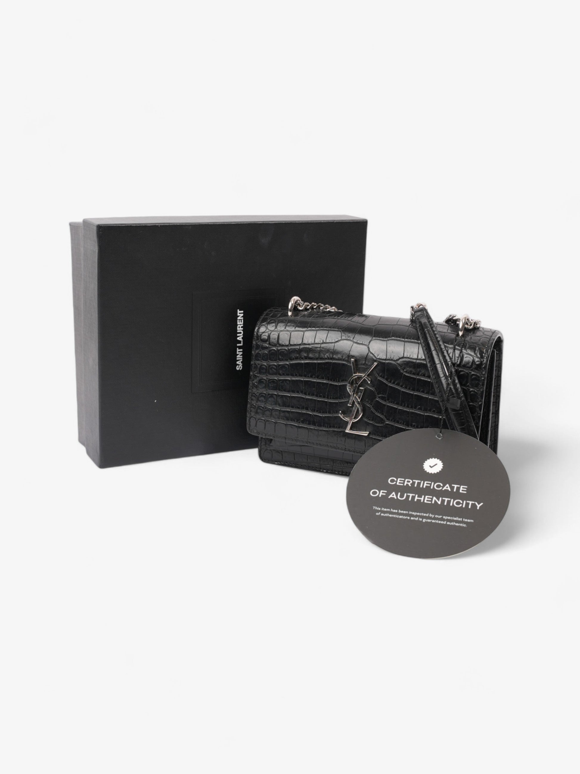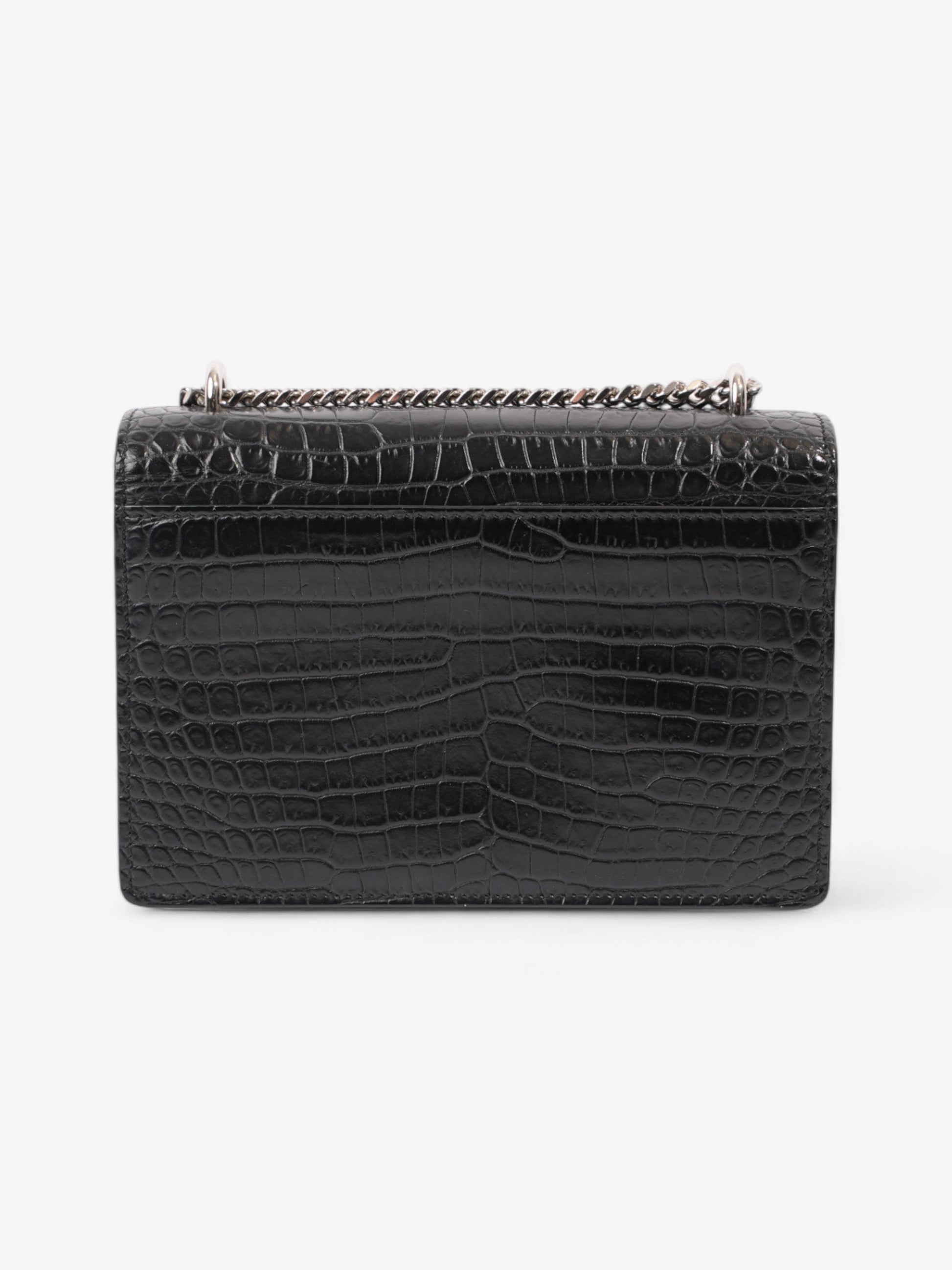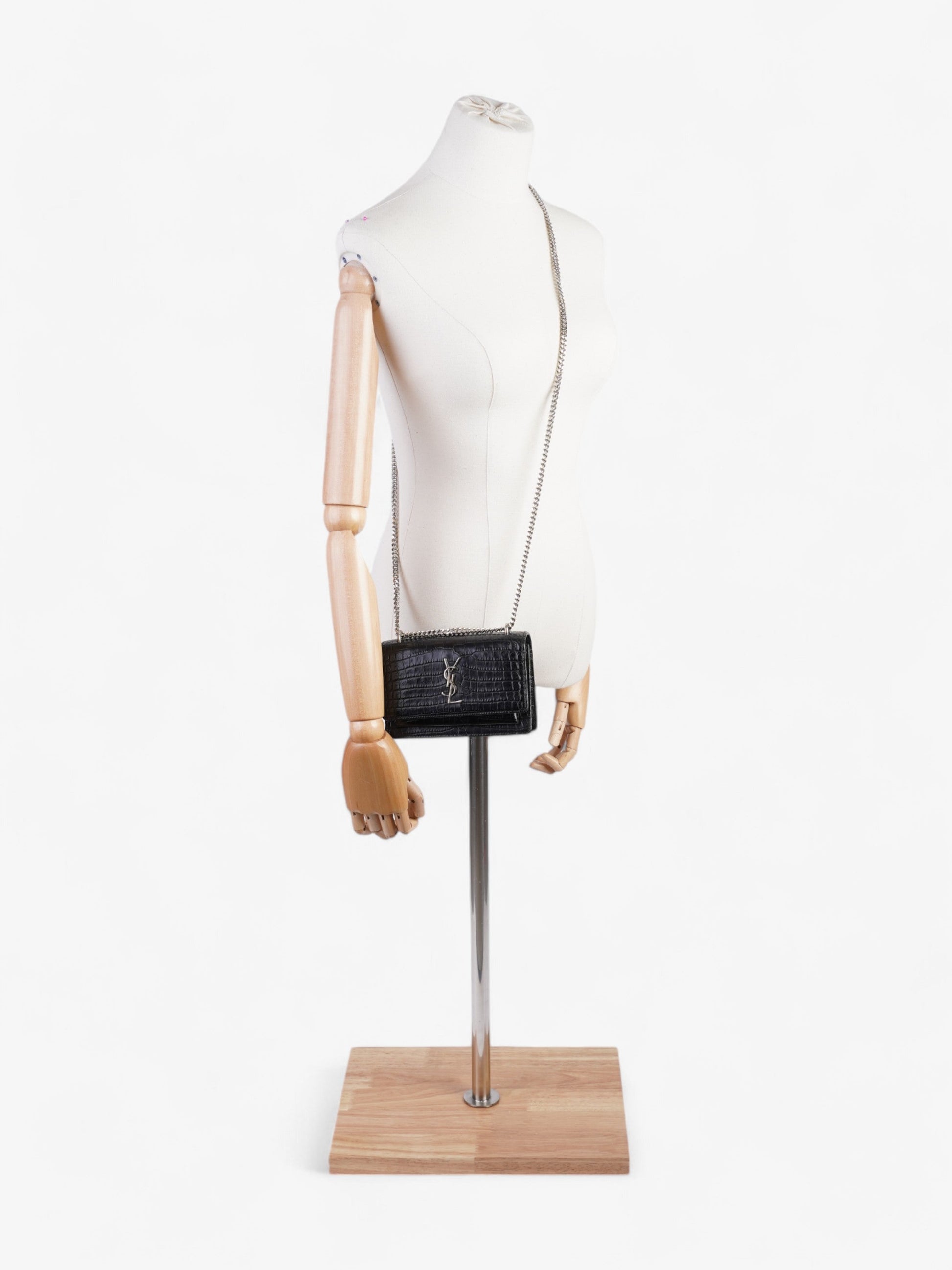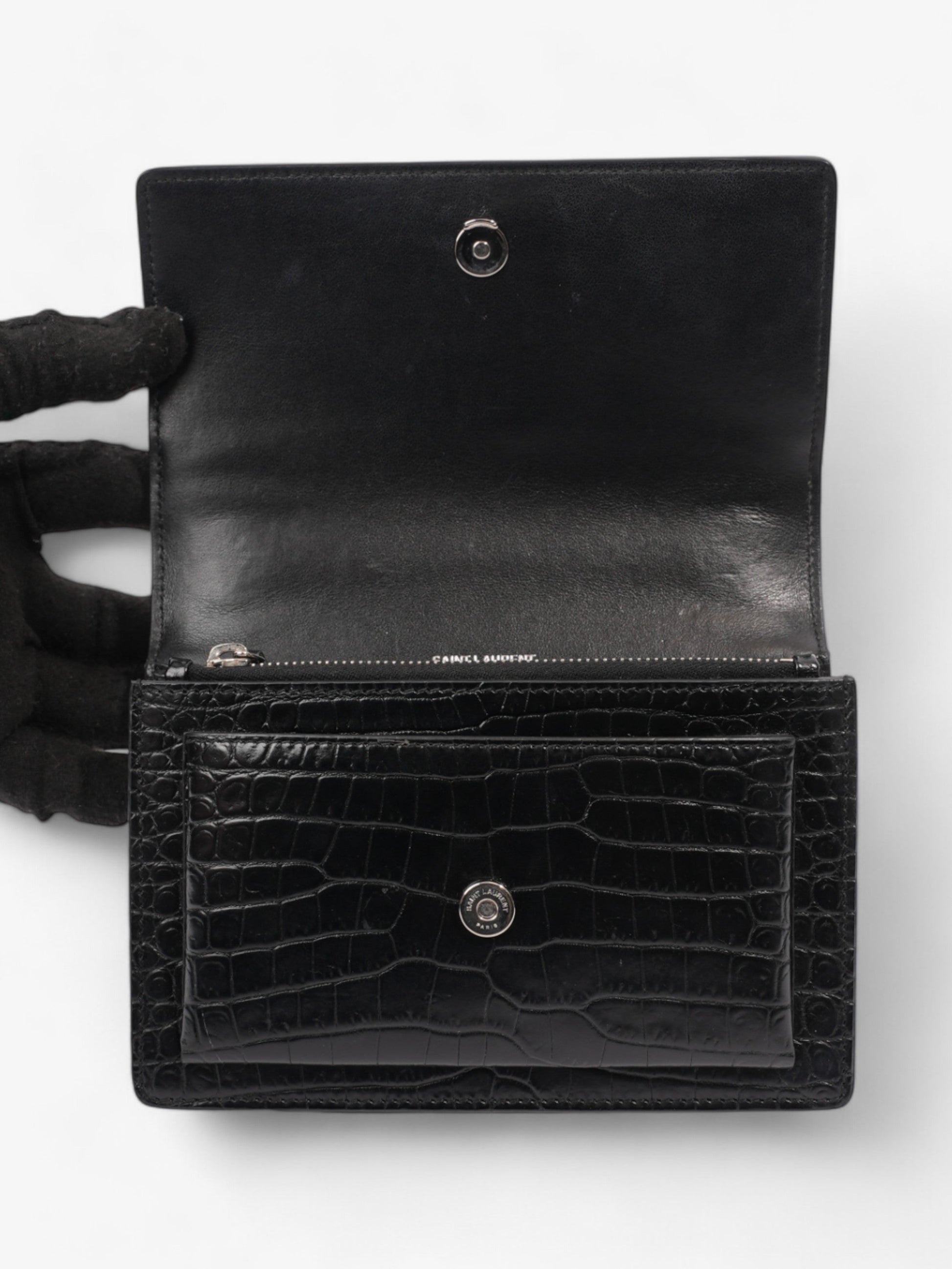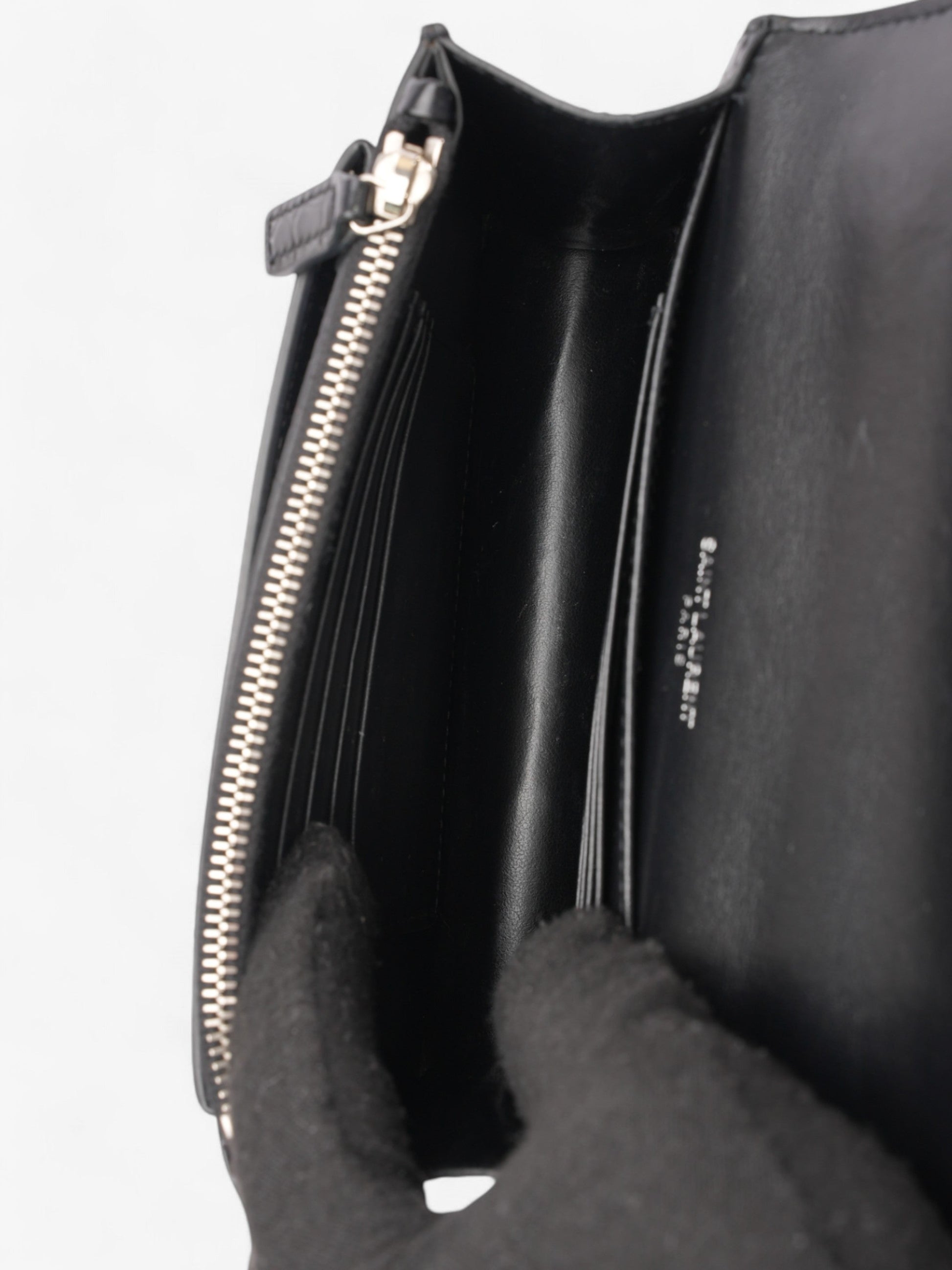 Saint Laurent Sunset Chain Wallet Black Embossed Leather