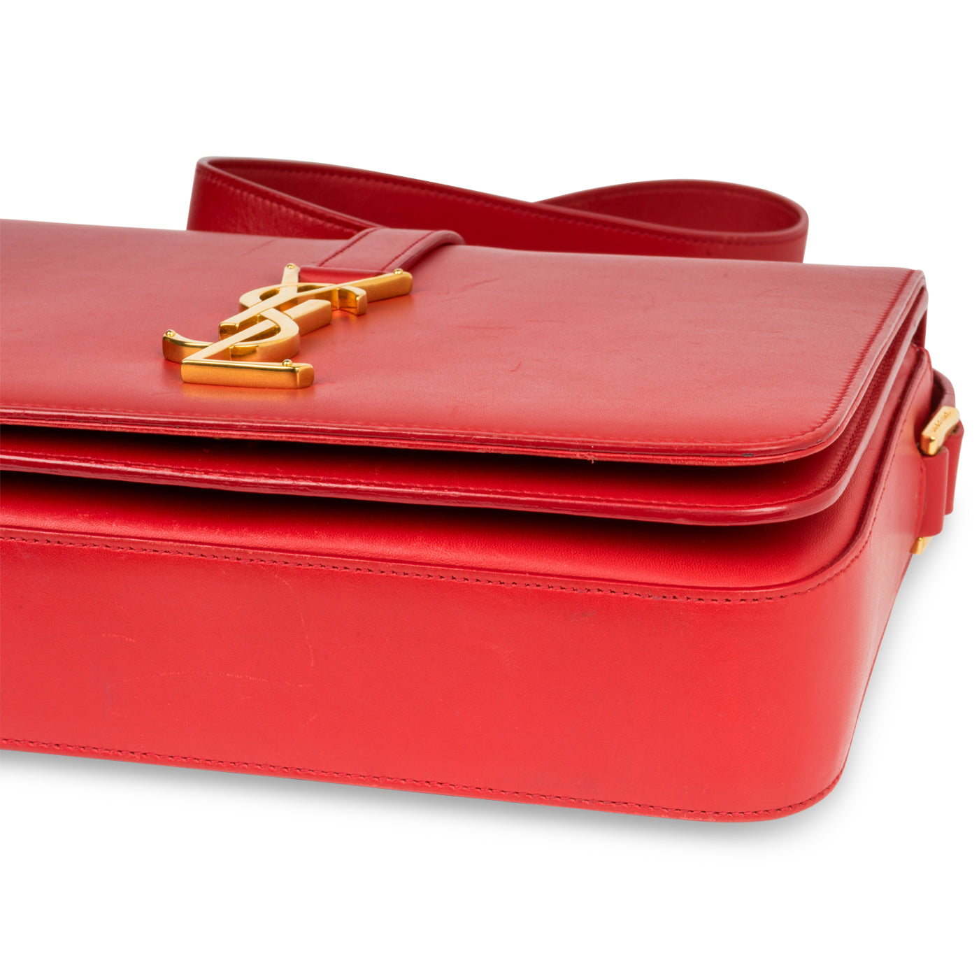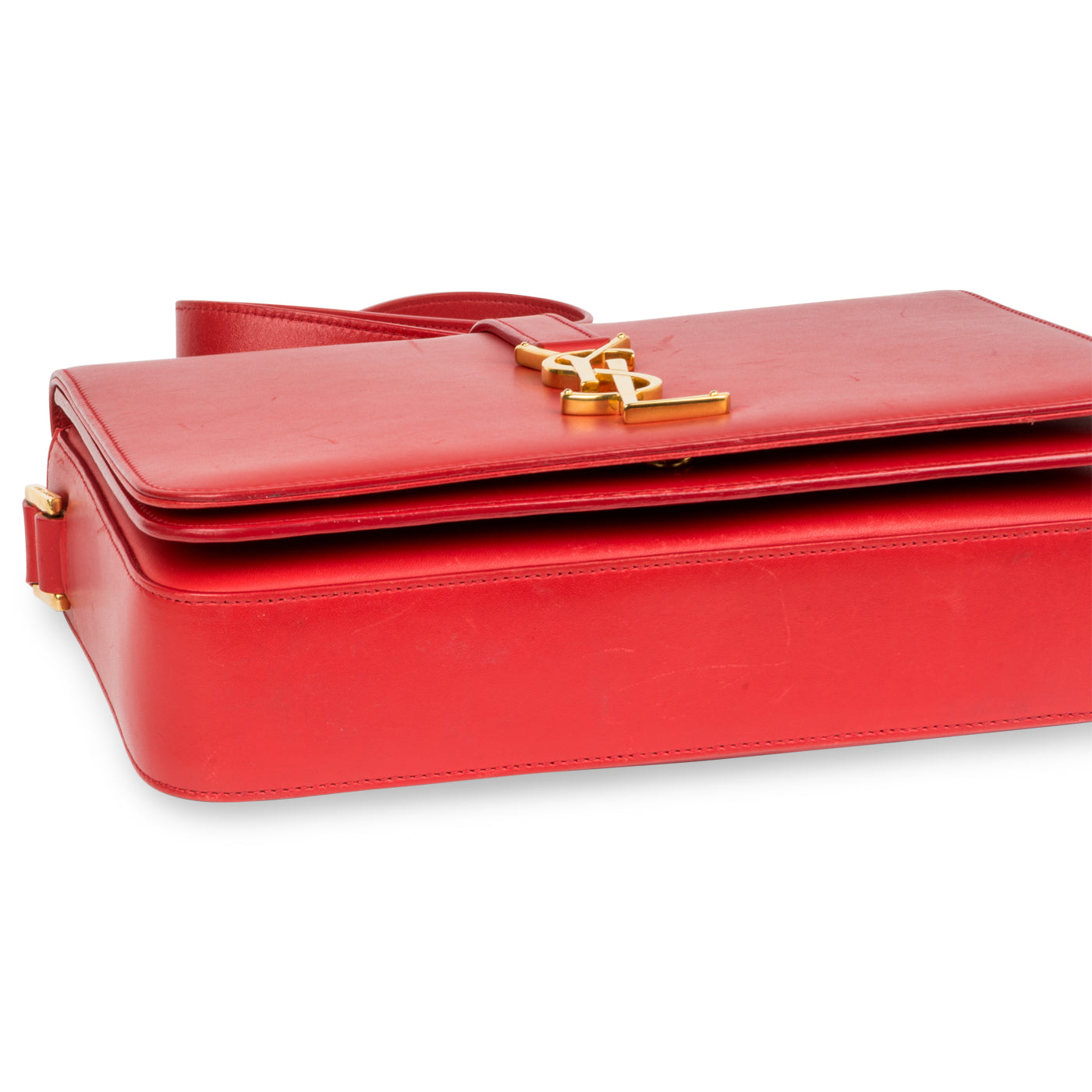 Depicted in a bright red hue, this stunning Université bag from Saint Laurent is one of the most versatile bags around. The perfect balance between fashion and function, this practical and simple bag remains chic and glamorous. Suitable for every day usage, this gorgeous satchel can easily hold all your daily necessities comfortably inside while keeping you sleek and sophisticated. The perfect pop of colour to any neutral or monochromatic look, this shoulder / cross-body bag is a true must-have for any woman with a love for simple luxury. Instantly recognizable given its prominent YSL logo plaque, the Université is a well-worthy addition to any handbag collection.