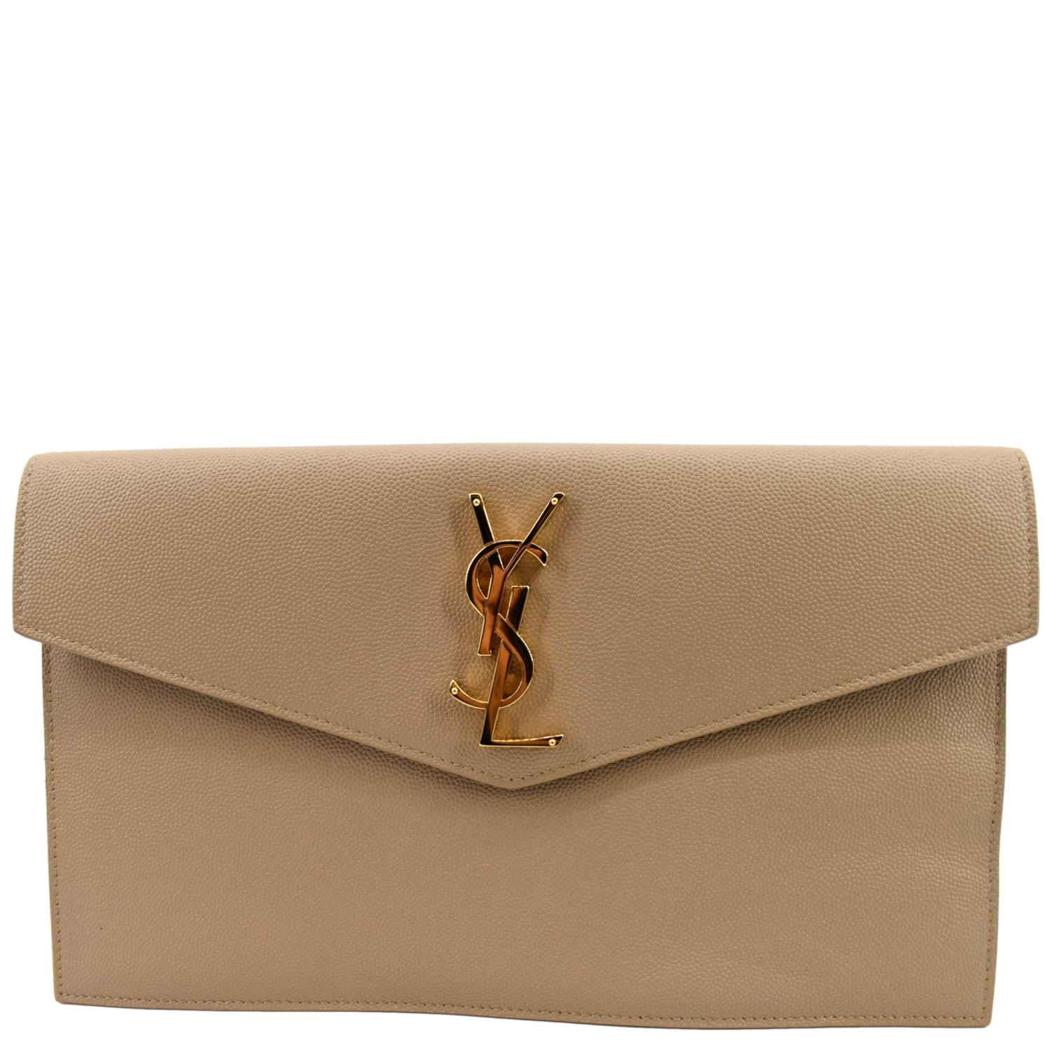 YVES SAINT LAURENT Uptown Envelope Grain De Poudre Leather Clutch Beige