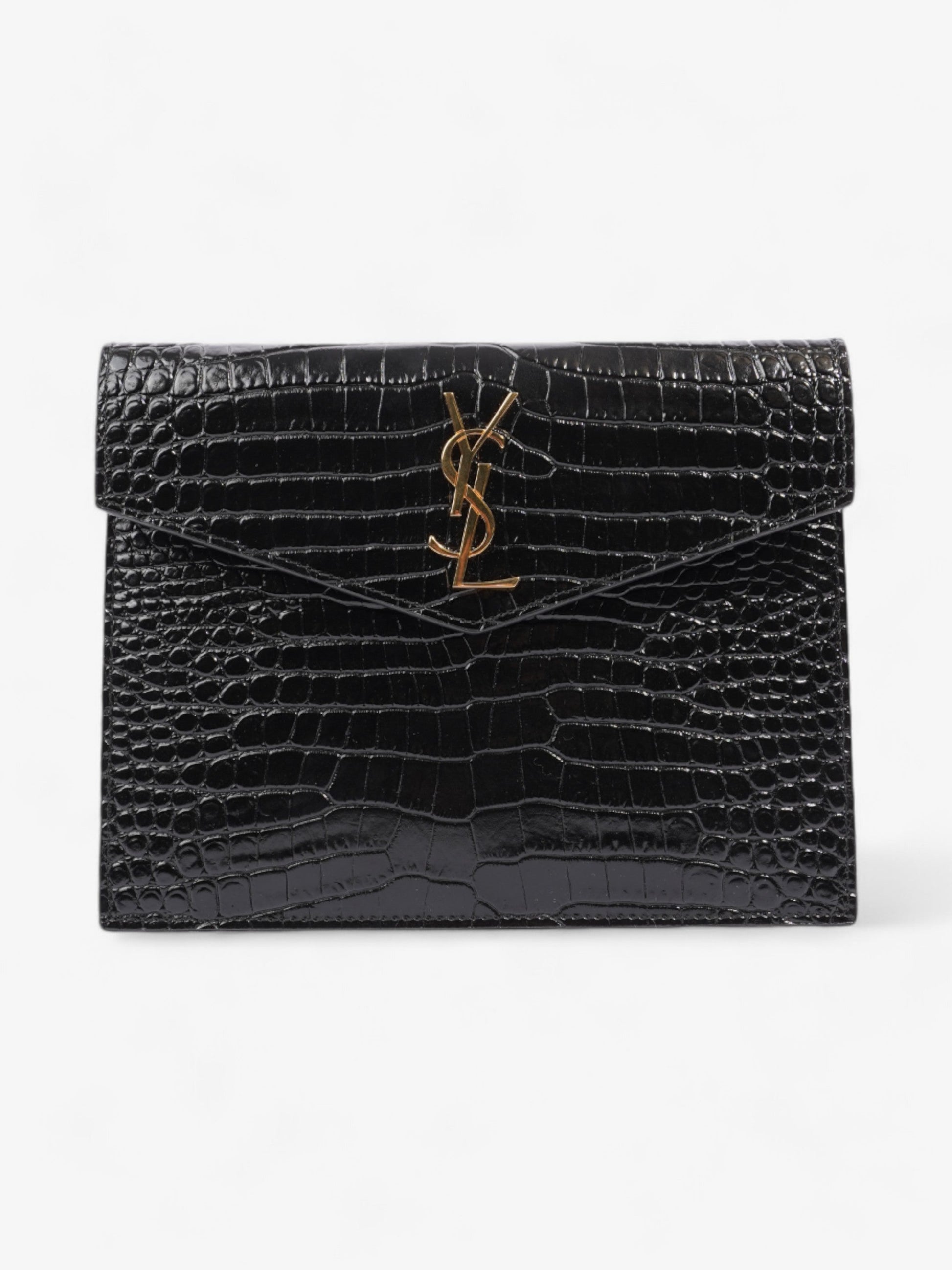 Saint Laurent Uptown Clutch Black Embossed Leather