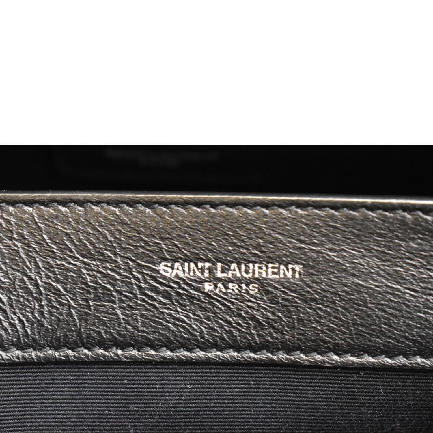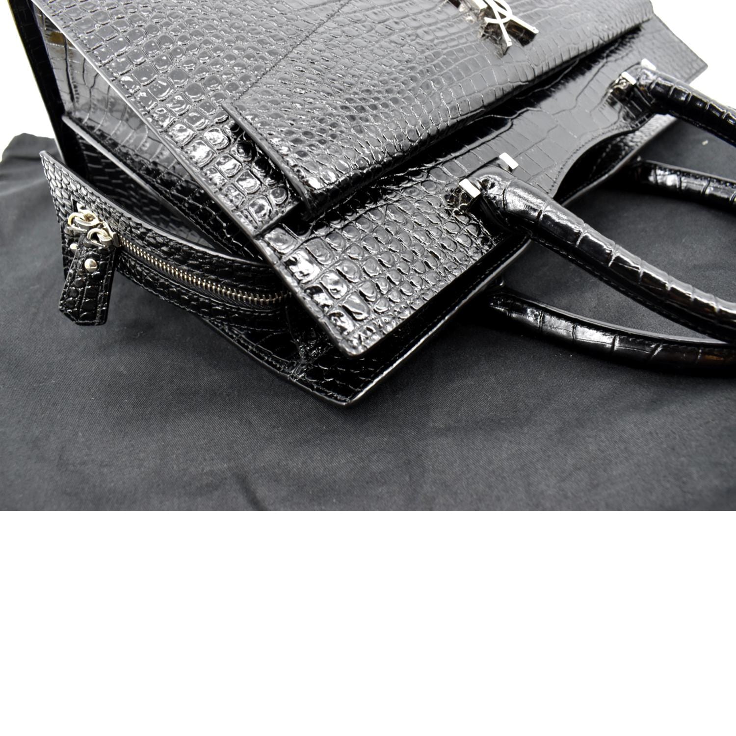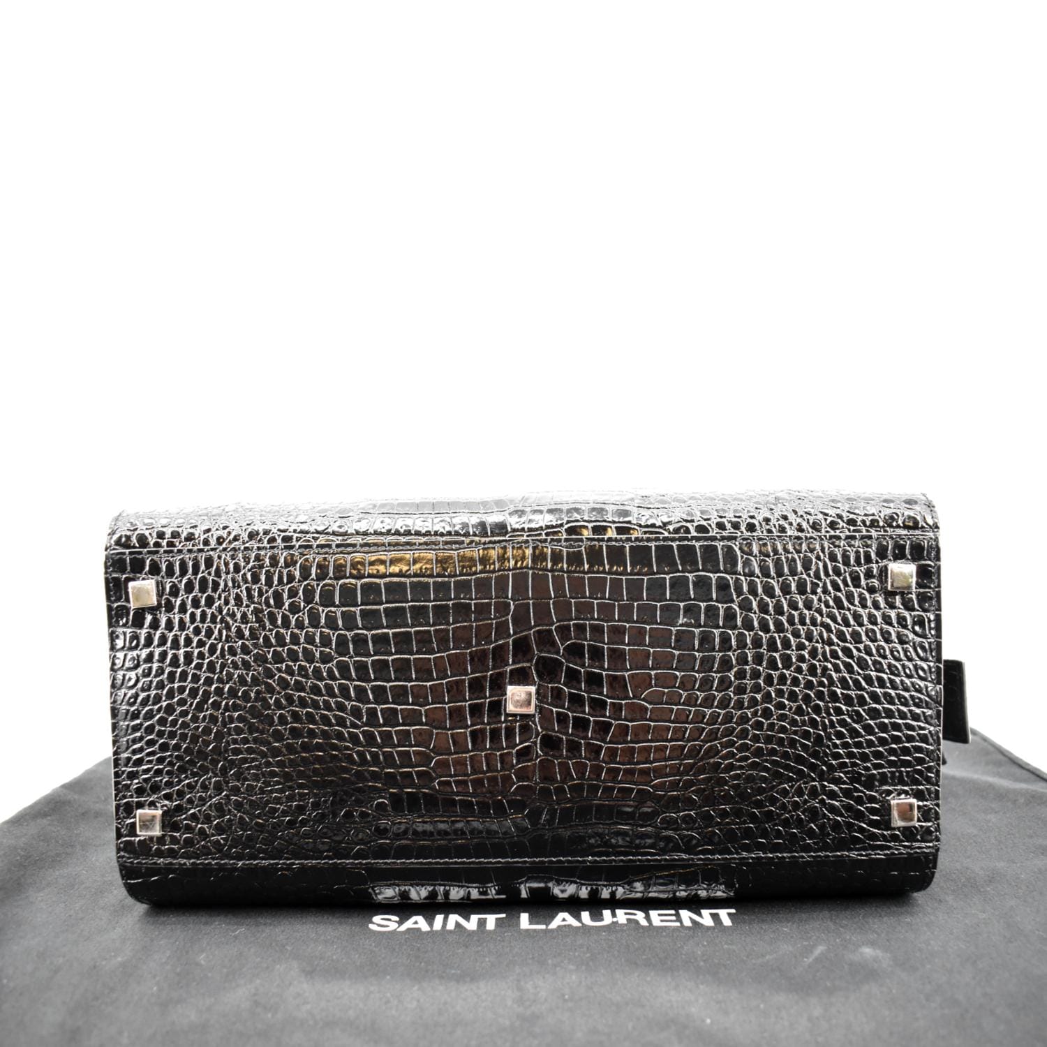 YVES SAINT LAURENT Uptown Crocodile Calfskin Embossed Tote Bag Black
