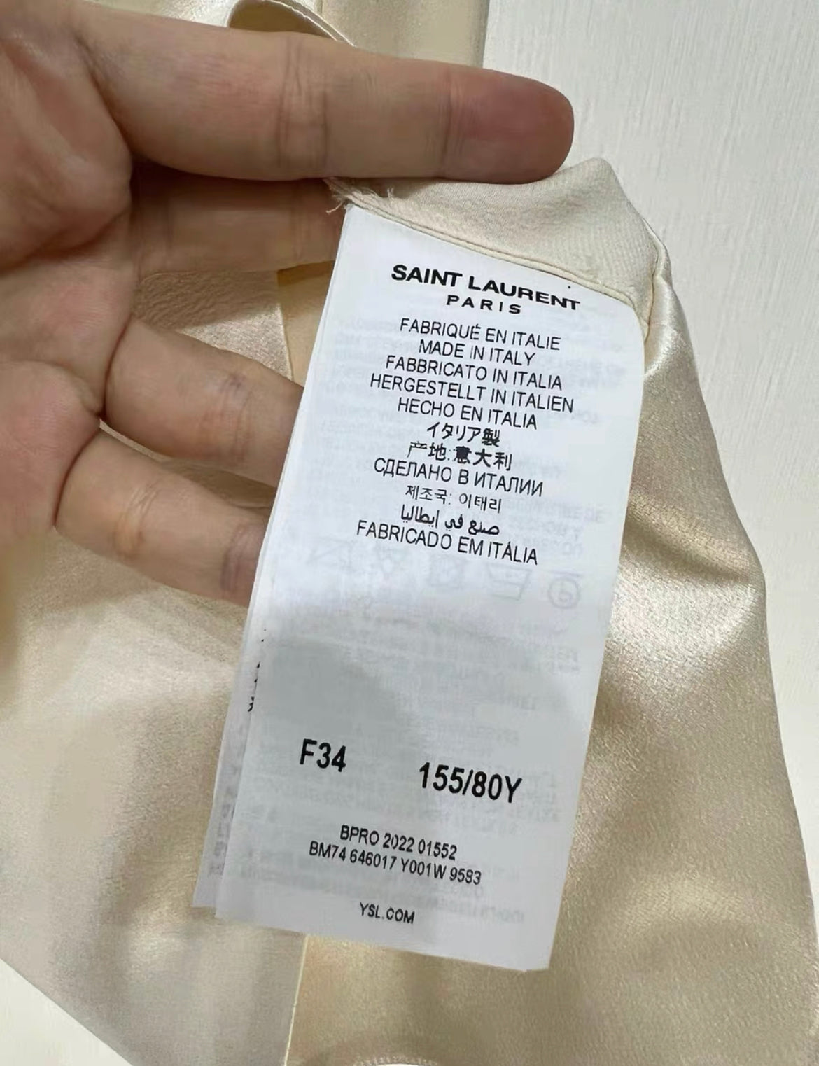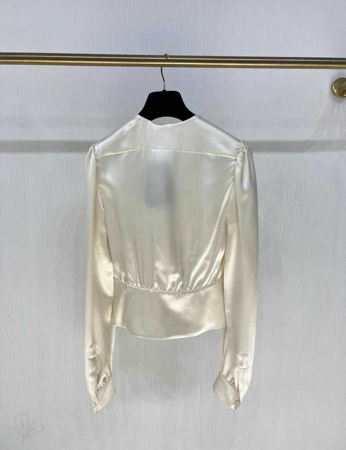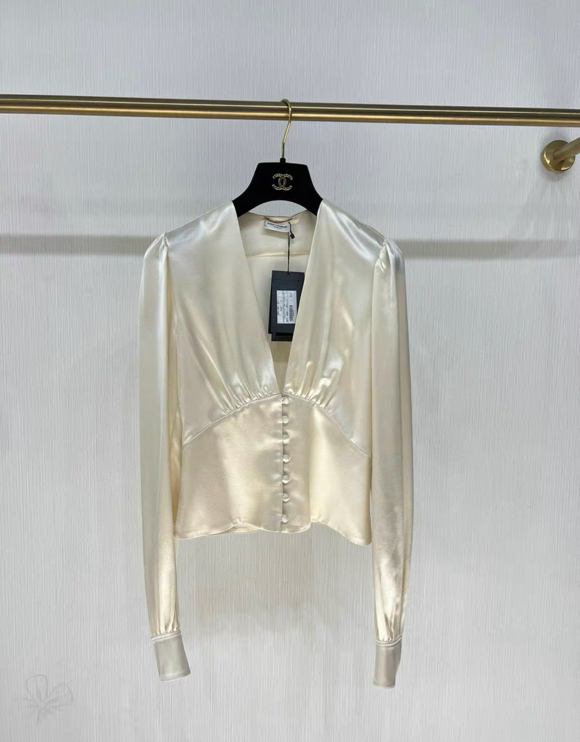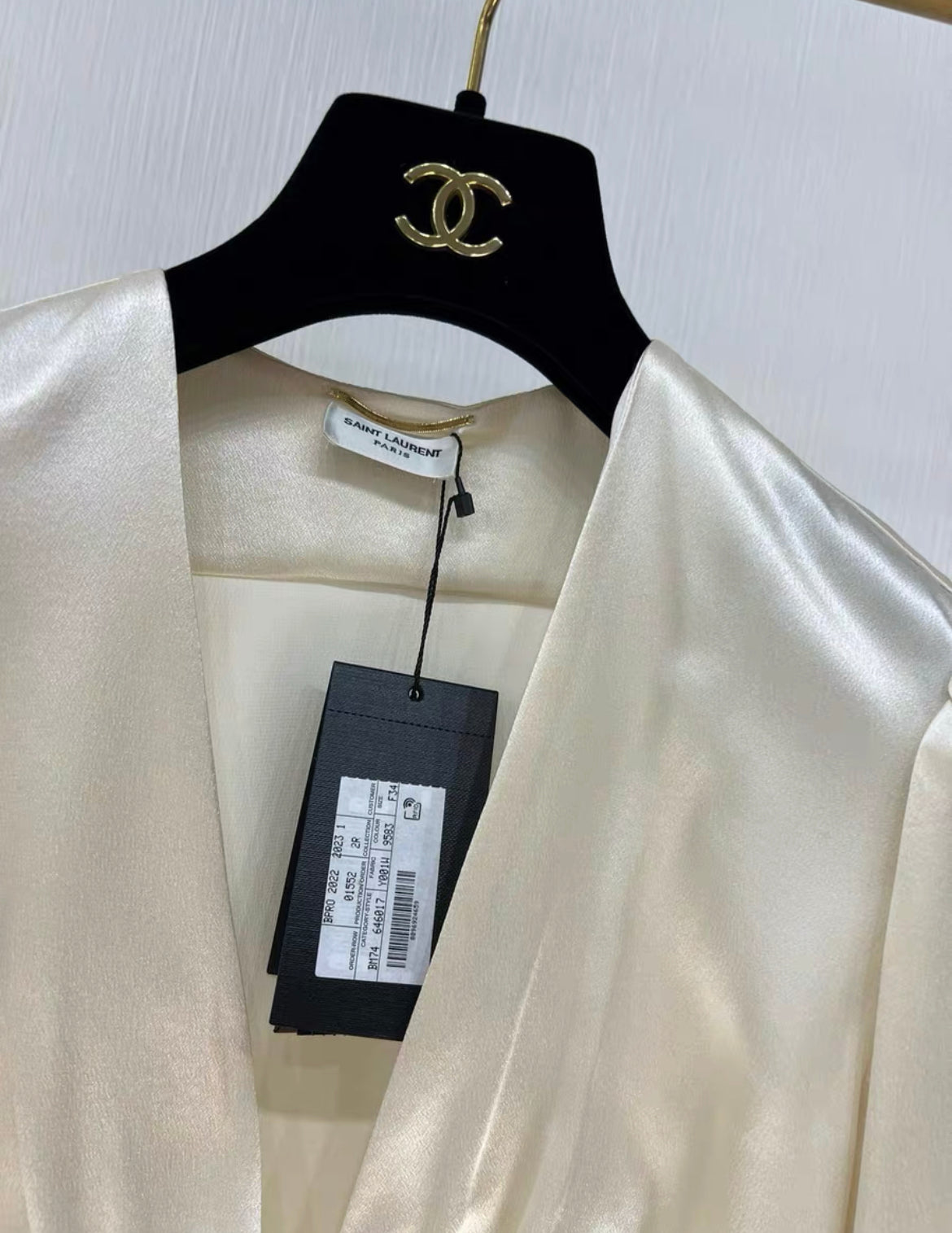 Saint Laurent luxurious V-neck cream white satin shirt, brand new FR34