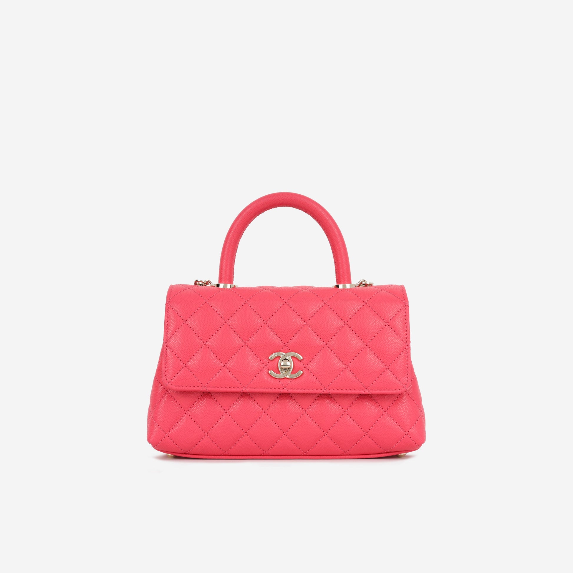 The Mini Coco Handle comes with practicality and style and is the smallest size in this collection. This bag comes with the Chanel classic flap and twist lock system. Designed for hand held use or for wearing over your shoulder with the very convenient removable strap. This Chanel may be a mini, but it comes with two compartments and includes two extra pockets. Chic and sweet, this Chanel is a delightful edition to the flap collection.