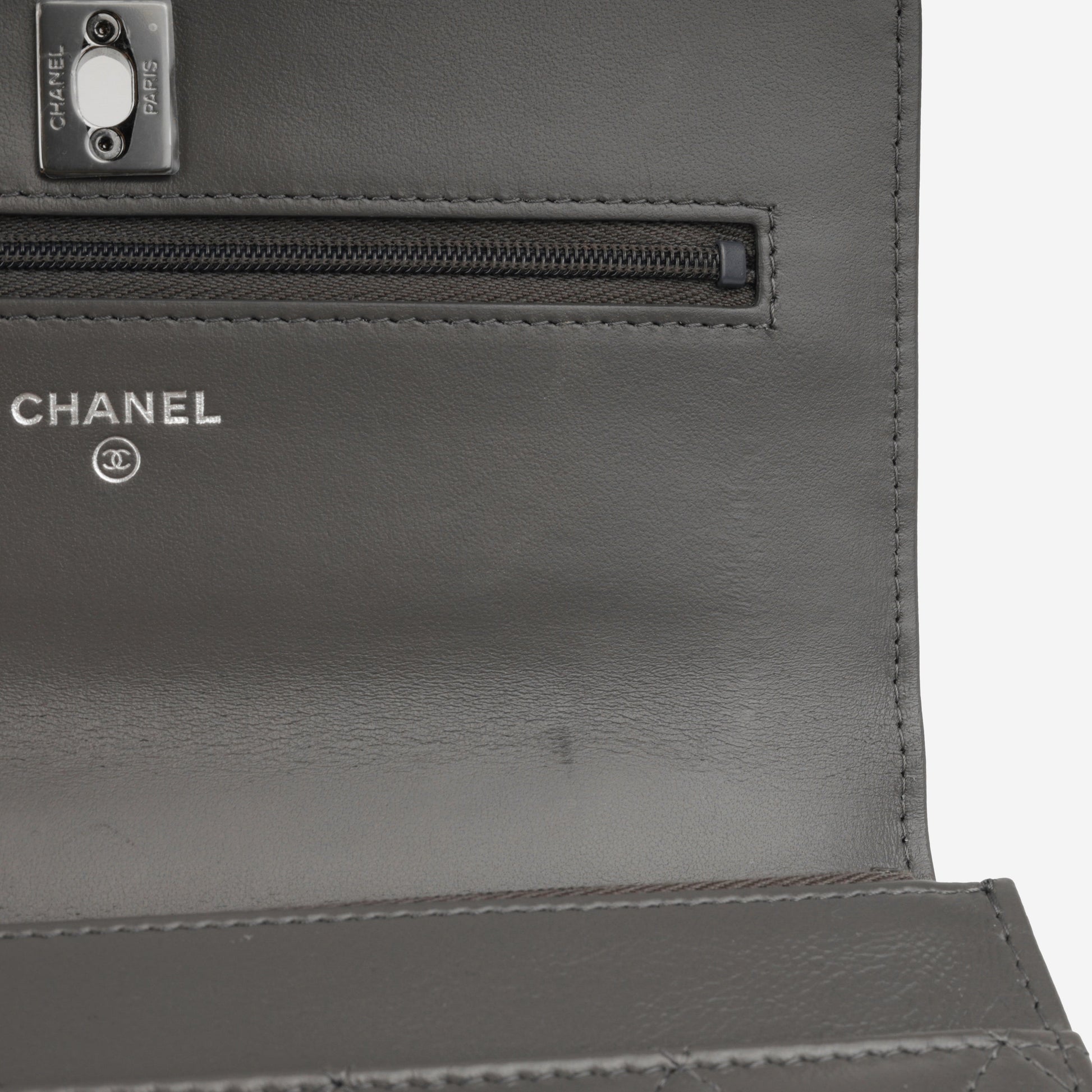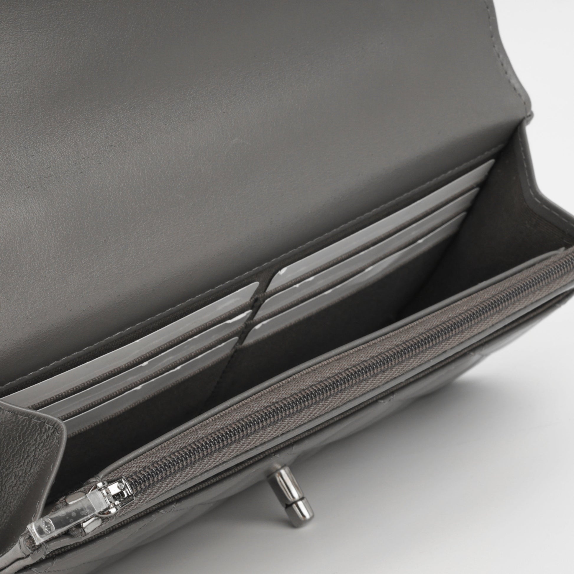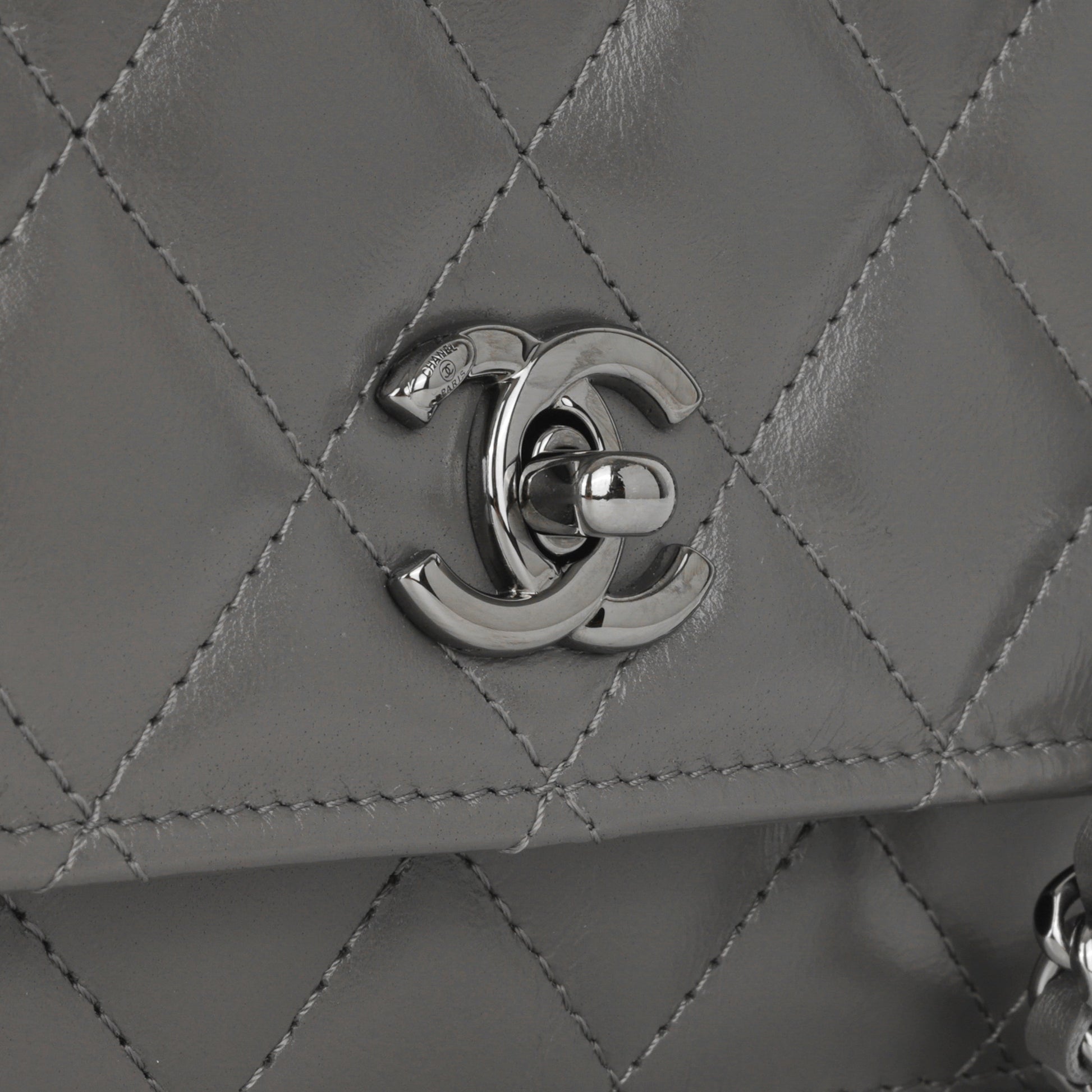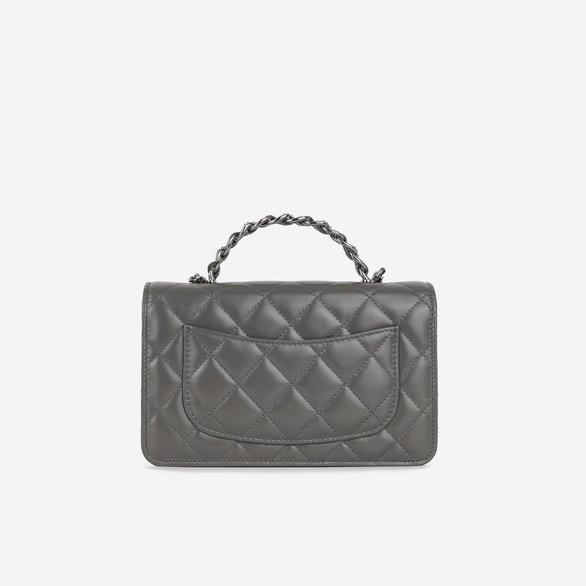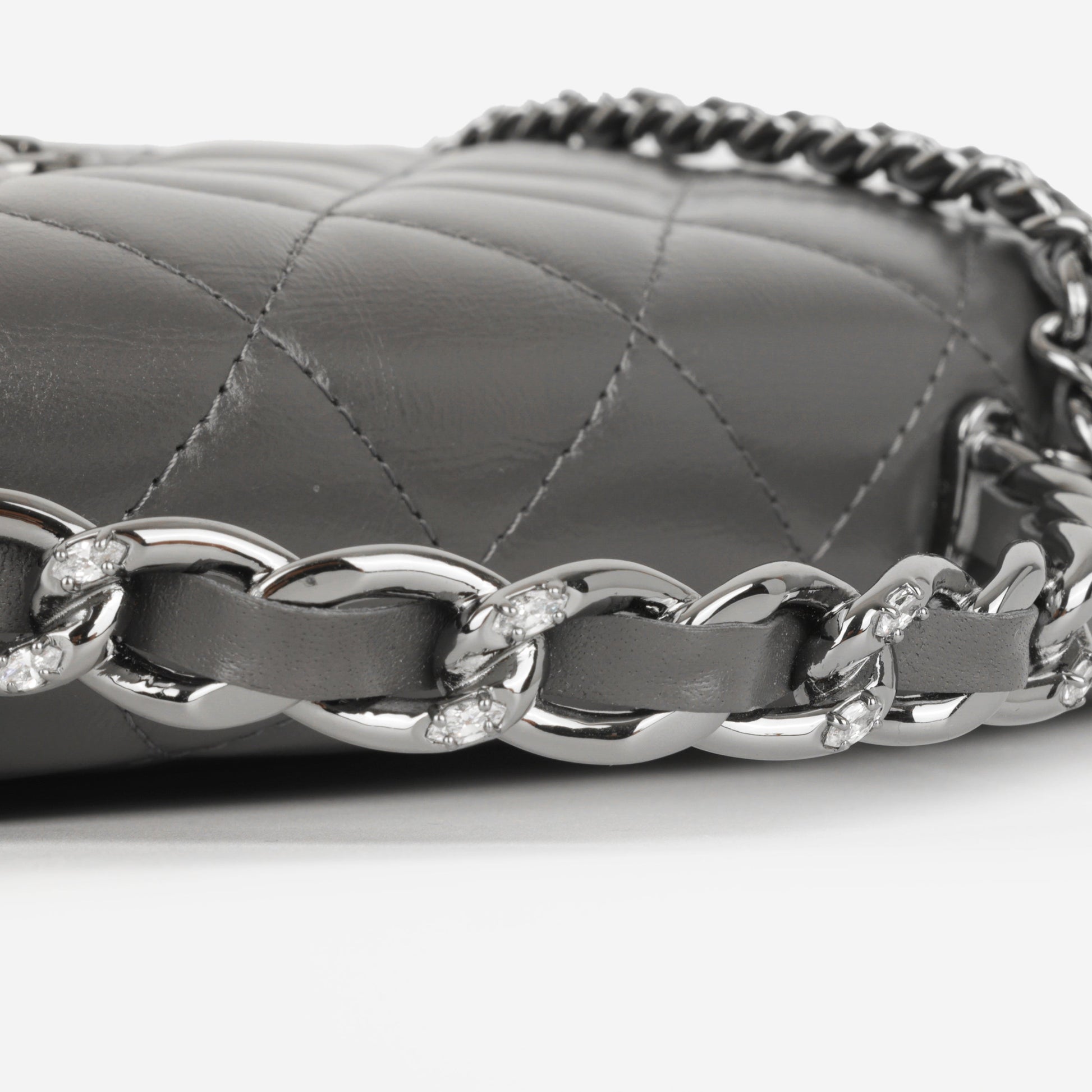 • Grey quilted lambskin leather