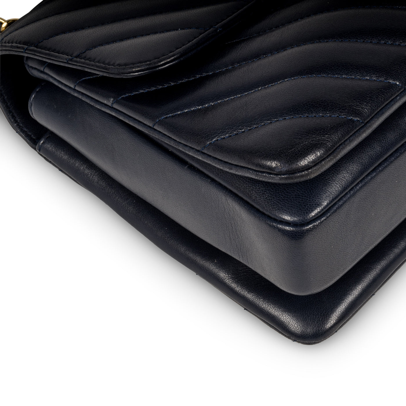 • Navy chevron lambskin leather