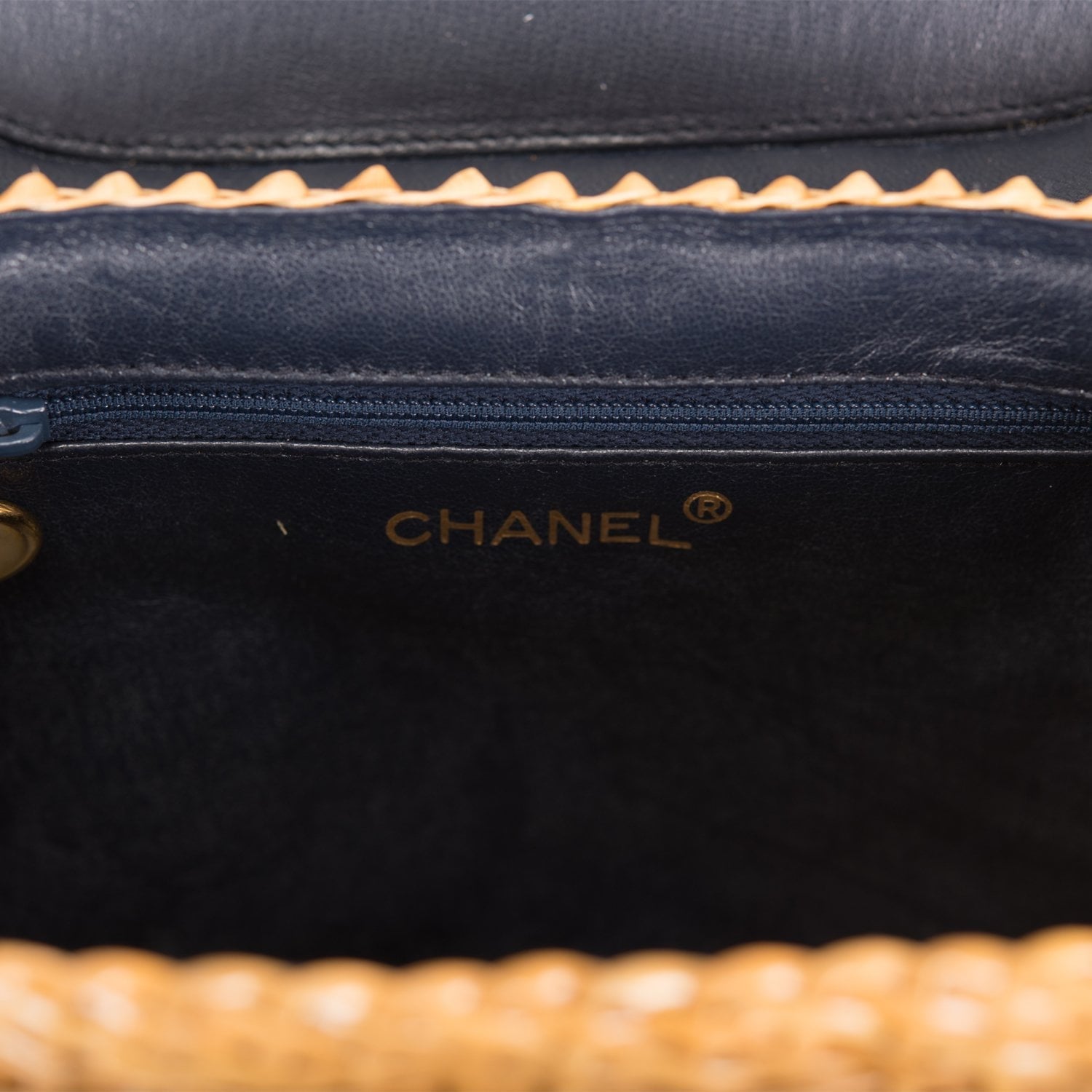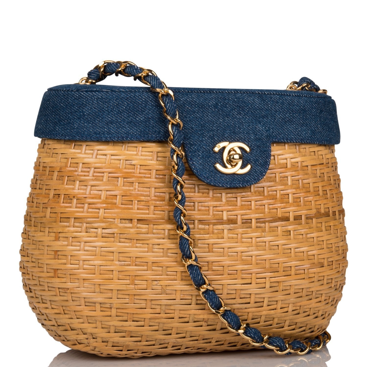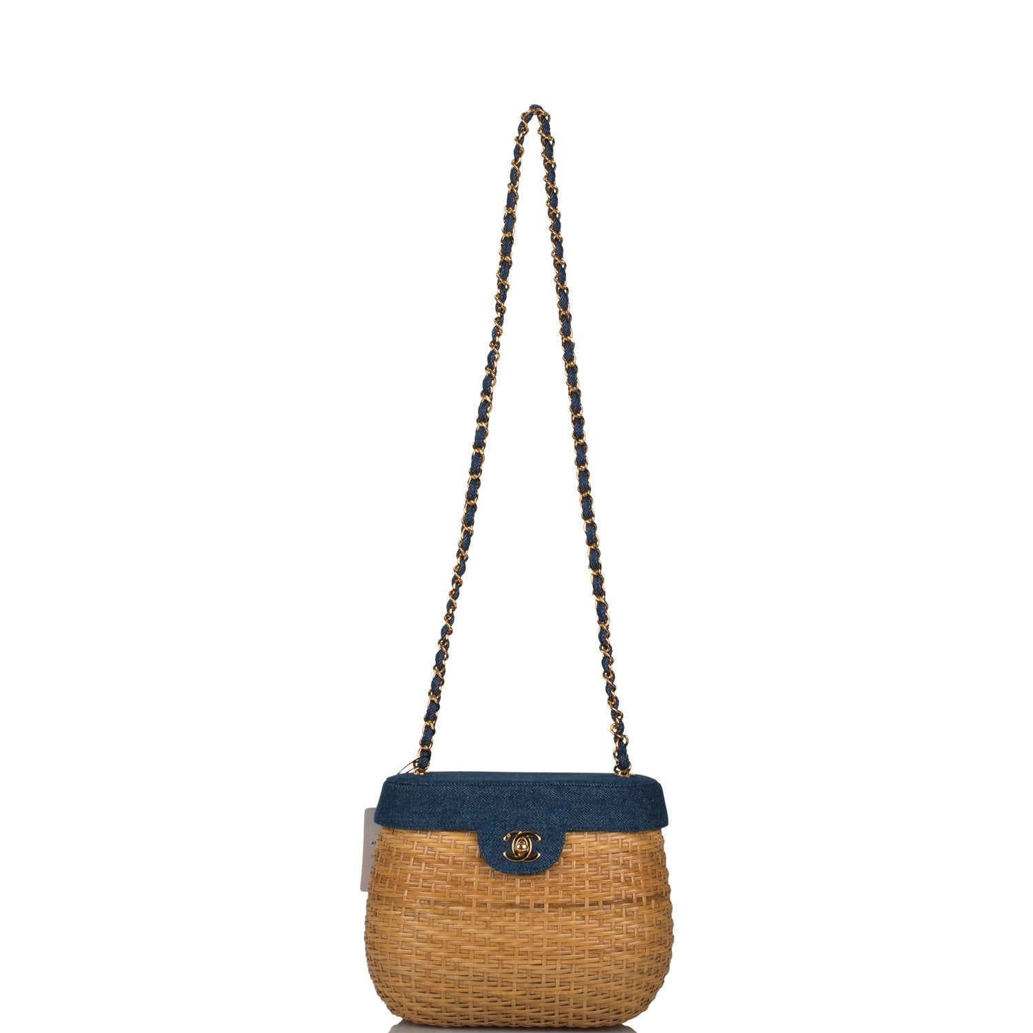 Chanel Vintage Basket Bag Denim and Wicker Gold Hardware