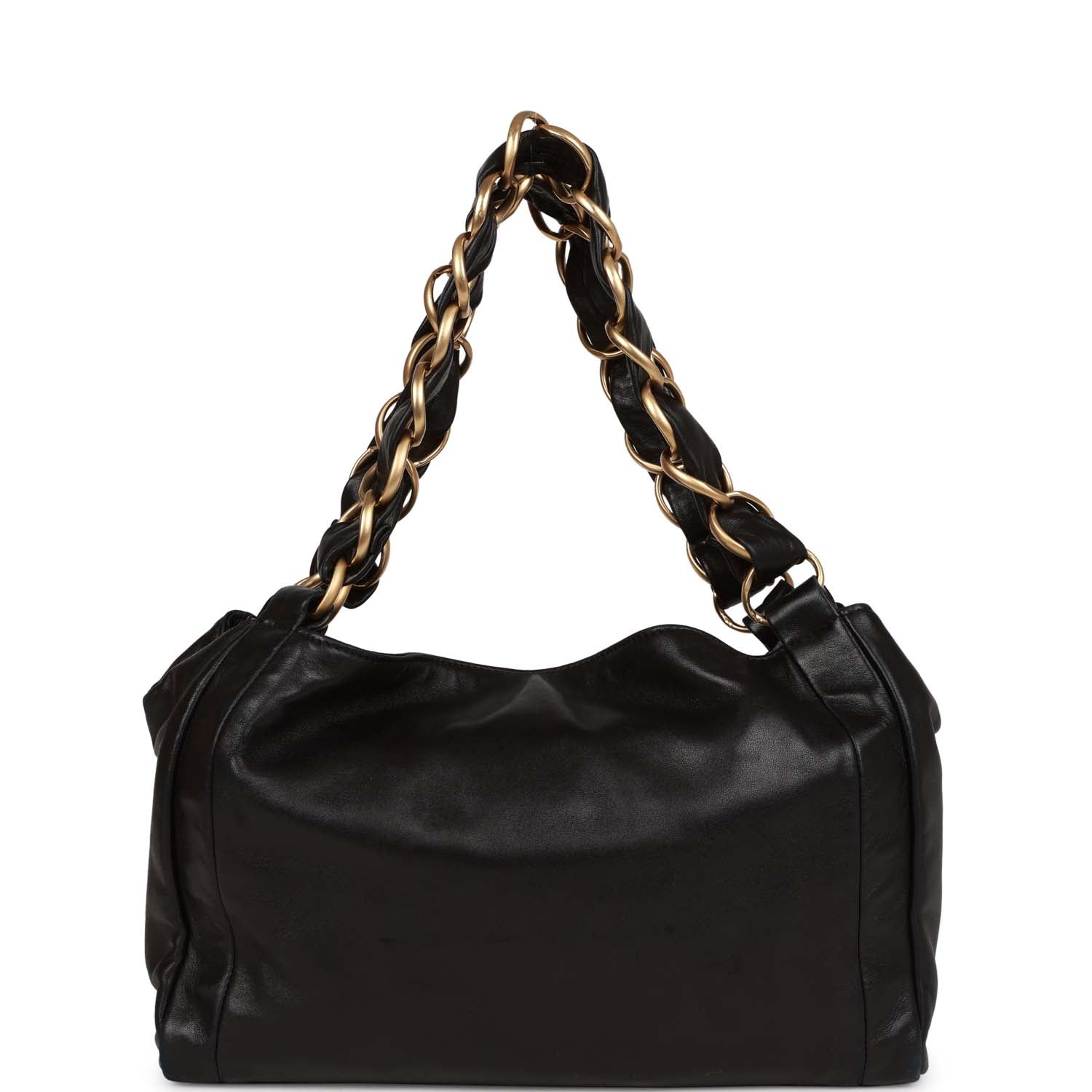 Chanel Vintage "Olsen" Hobo Shoulder Bag Black Lambskin Brushed Gold Hardware