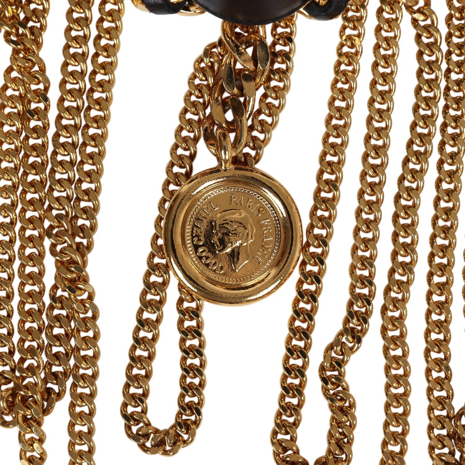 Chanel Vintage 24K Gold Plated Fringe Chain Leather Belt Black Leather