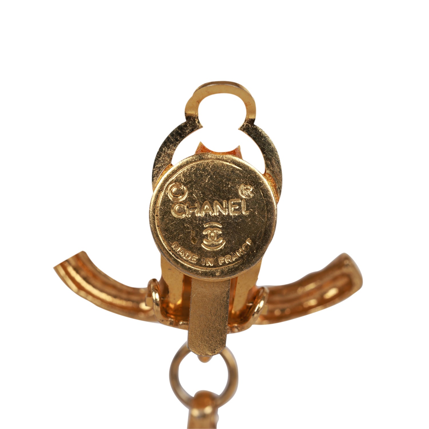 Chanel Vintage 24K Gold Plated Textured CC and Rhinestone Chandelier Clip Earrings