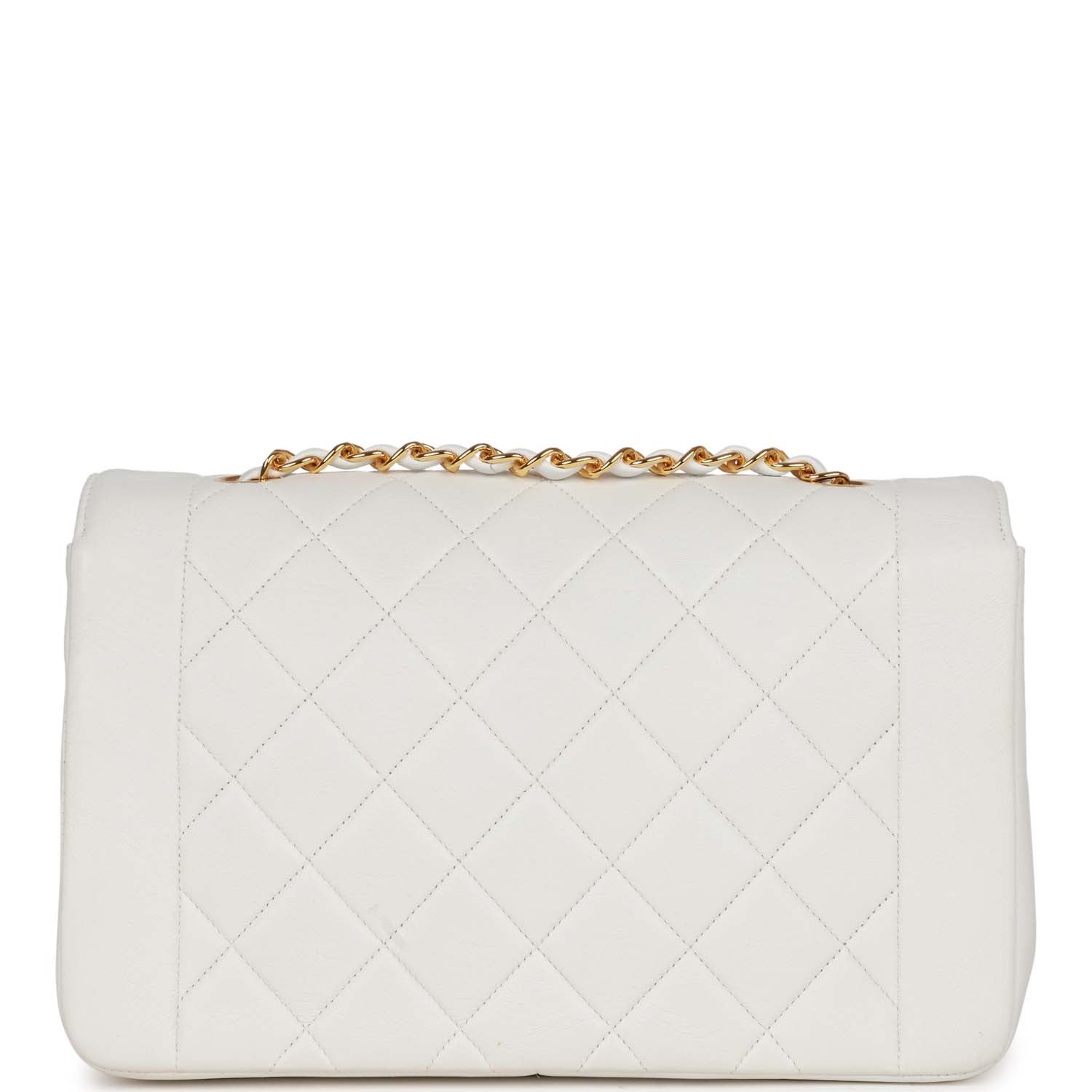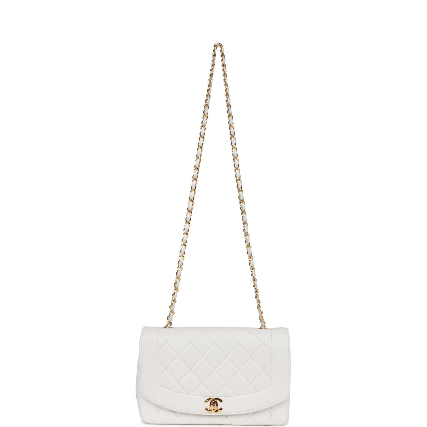 Chanel Vintage Medium Diana Flap Bag White Lambskin Gold Hardware