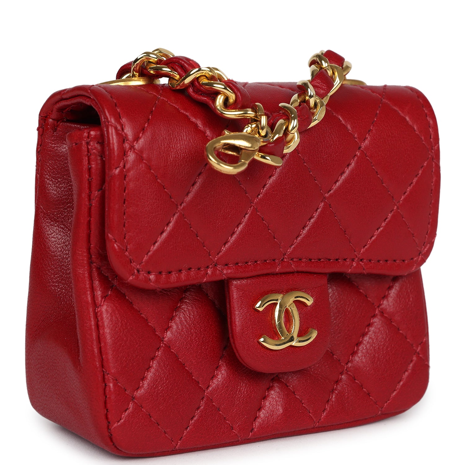 Chanel Vintage Micro Belt Flap Bag Red Lambskin Gold Hardware