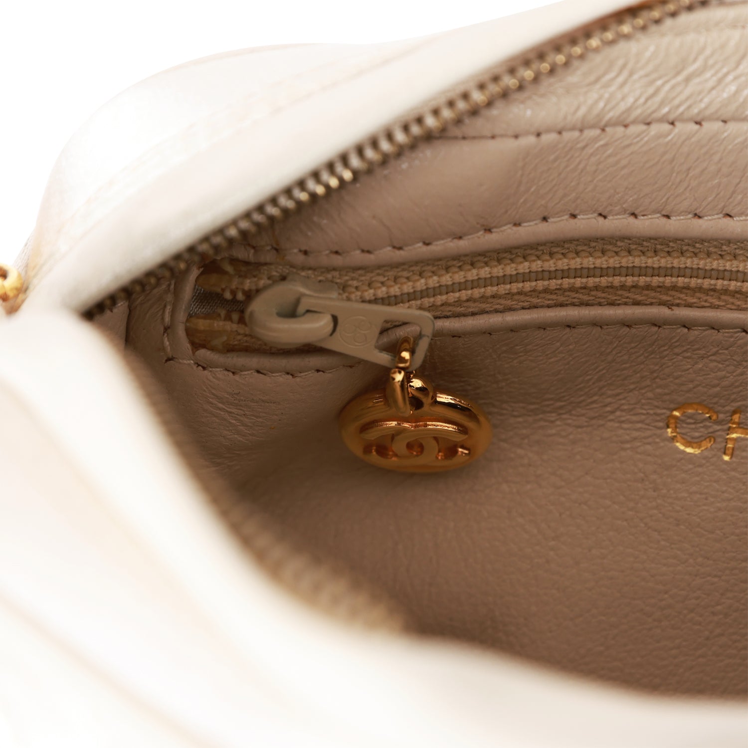 Chanel Vintage Mini Camera Bag Beige Satin Gold Hardware