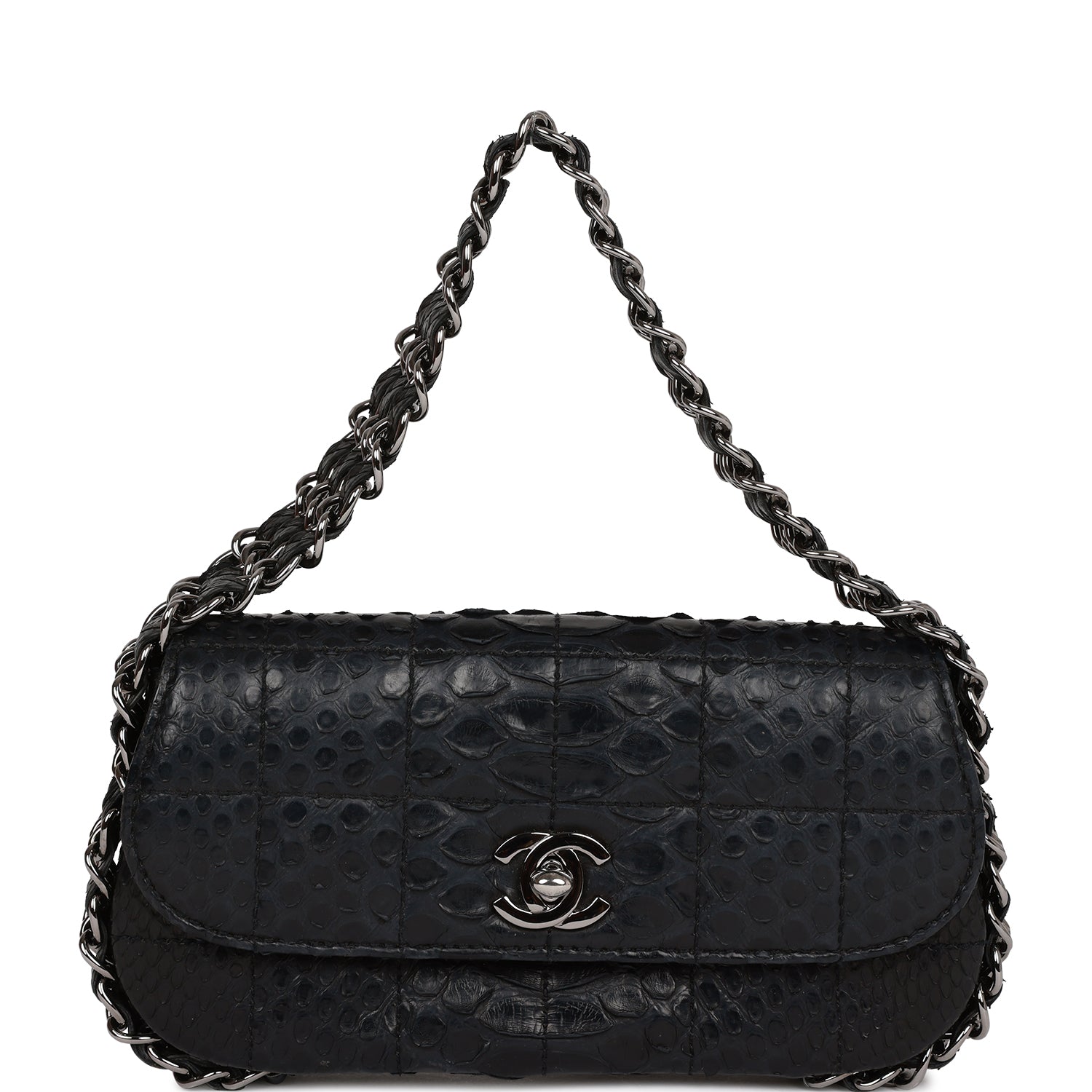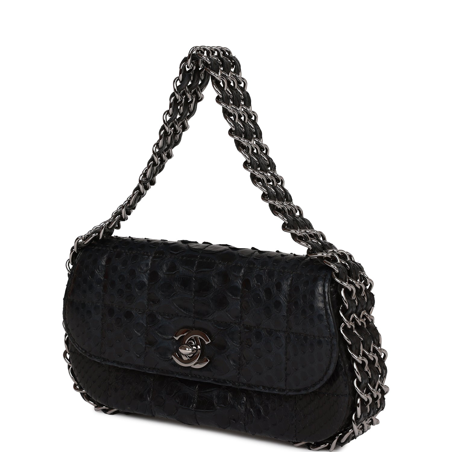 Chanel Vintage Mini Flap Bag Black Python Silver Hardware