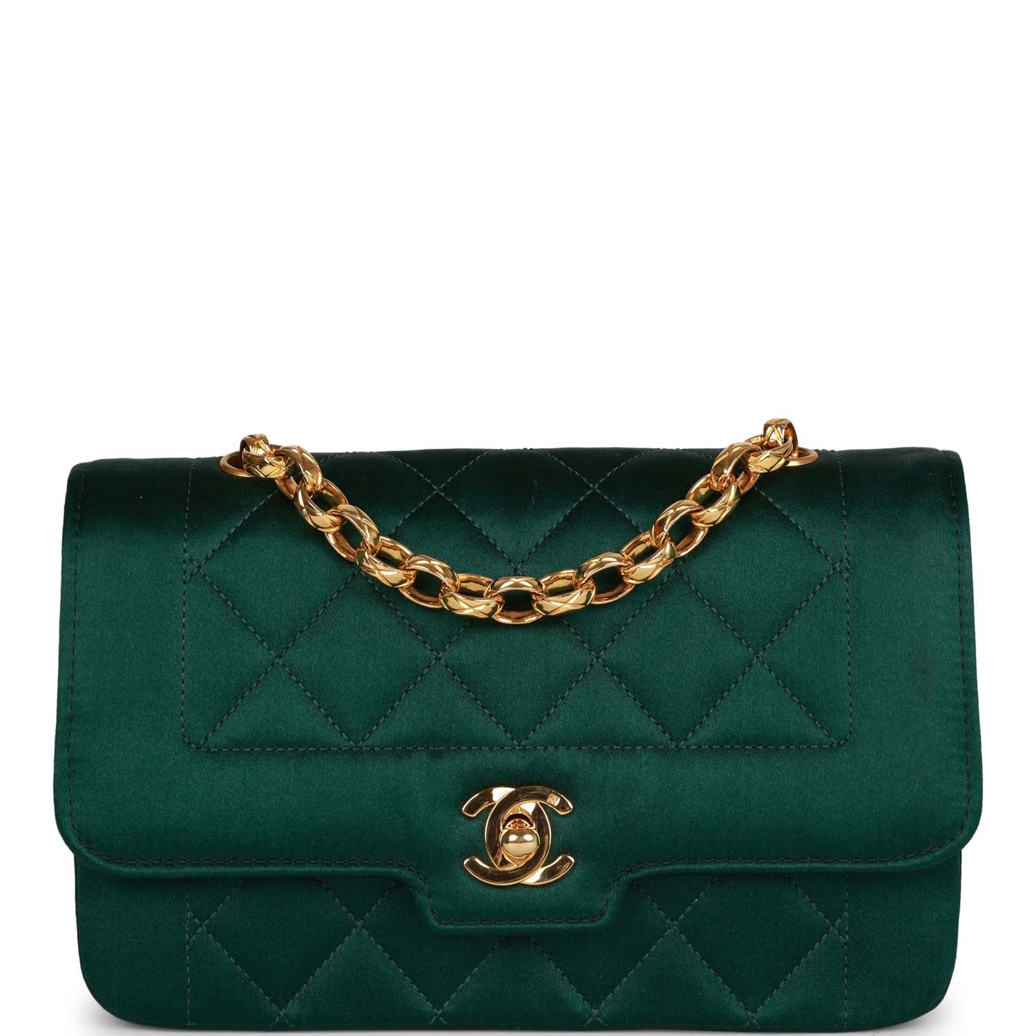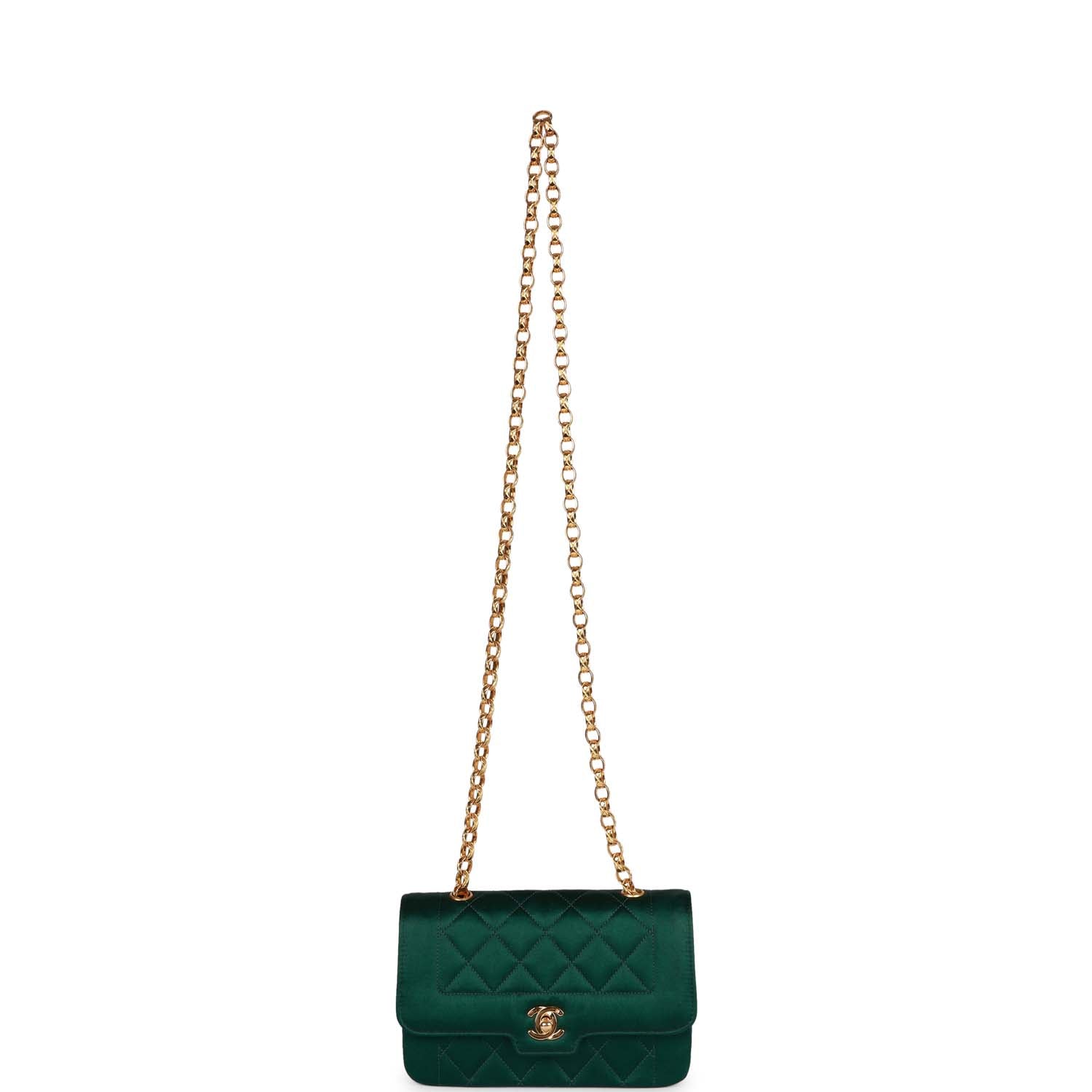 Chanel Vintage Mini Flap Bag Green Satin Gold Hardware