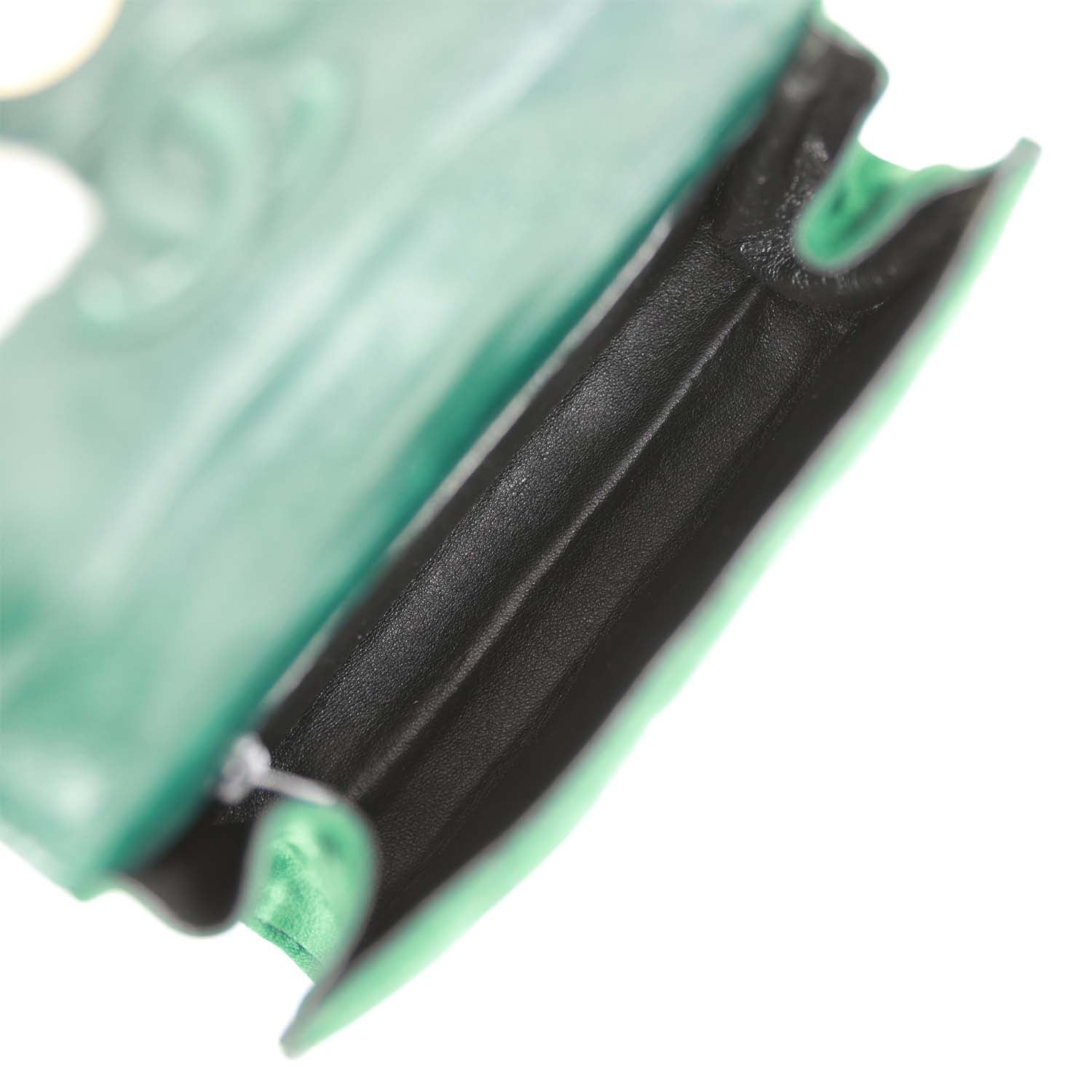 Chanel Vintage Mini Camellia Flap Bag Green Satin Gold Hardware