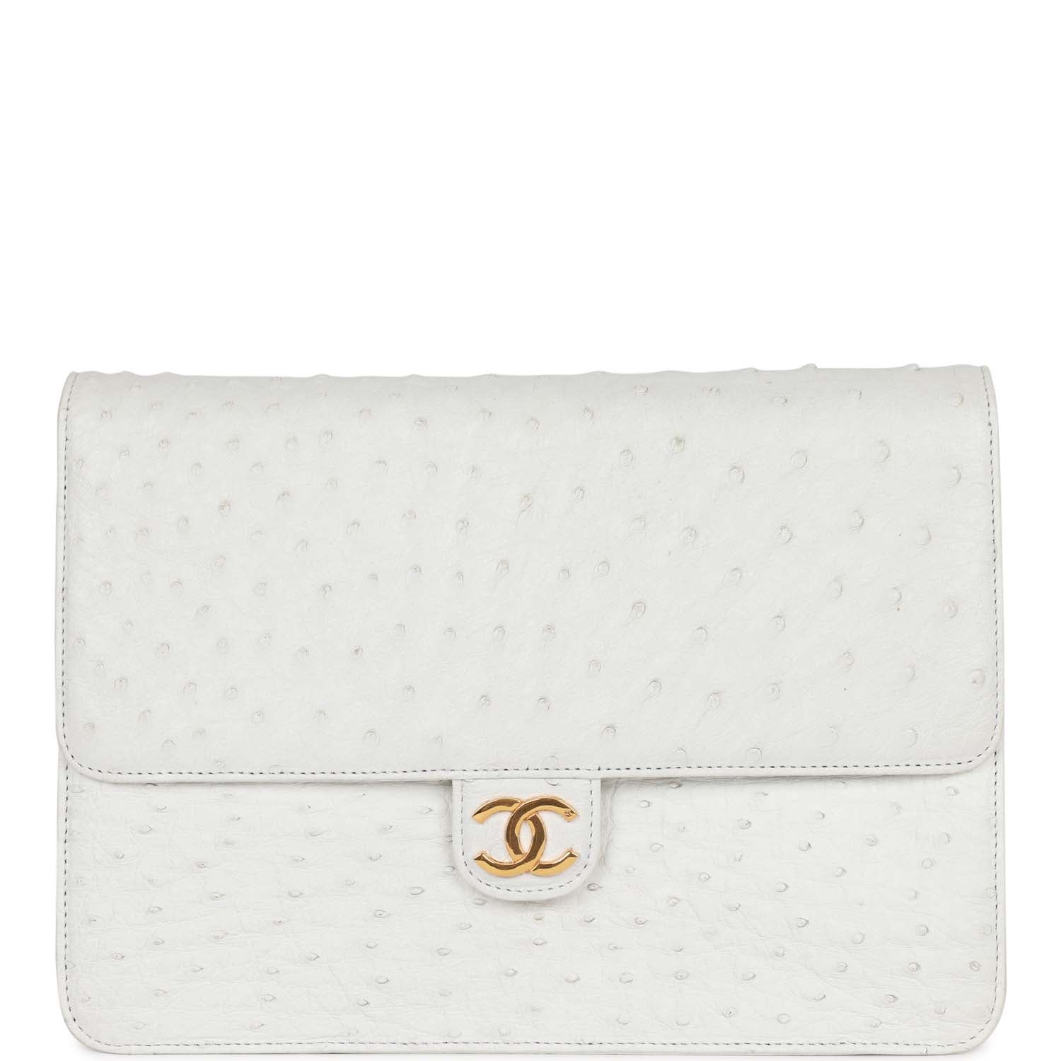 Chanel Vintage Single Flap Bag White Ostrich Gold Hardware