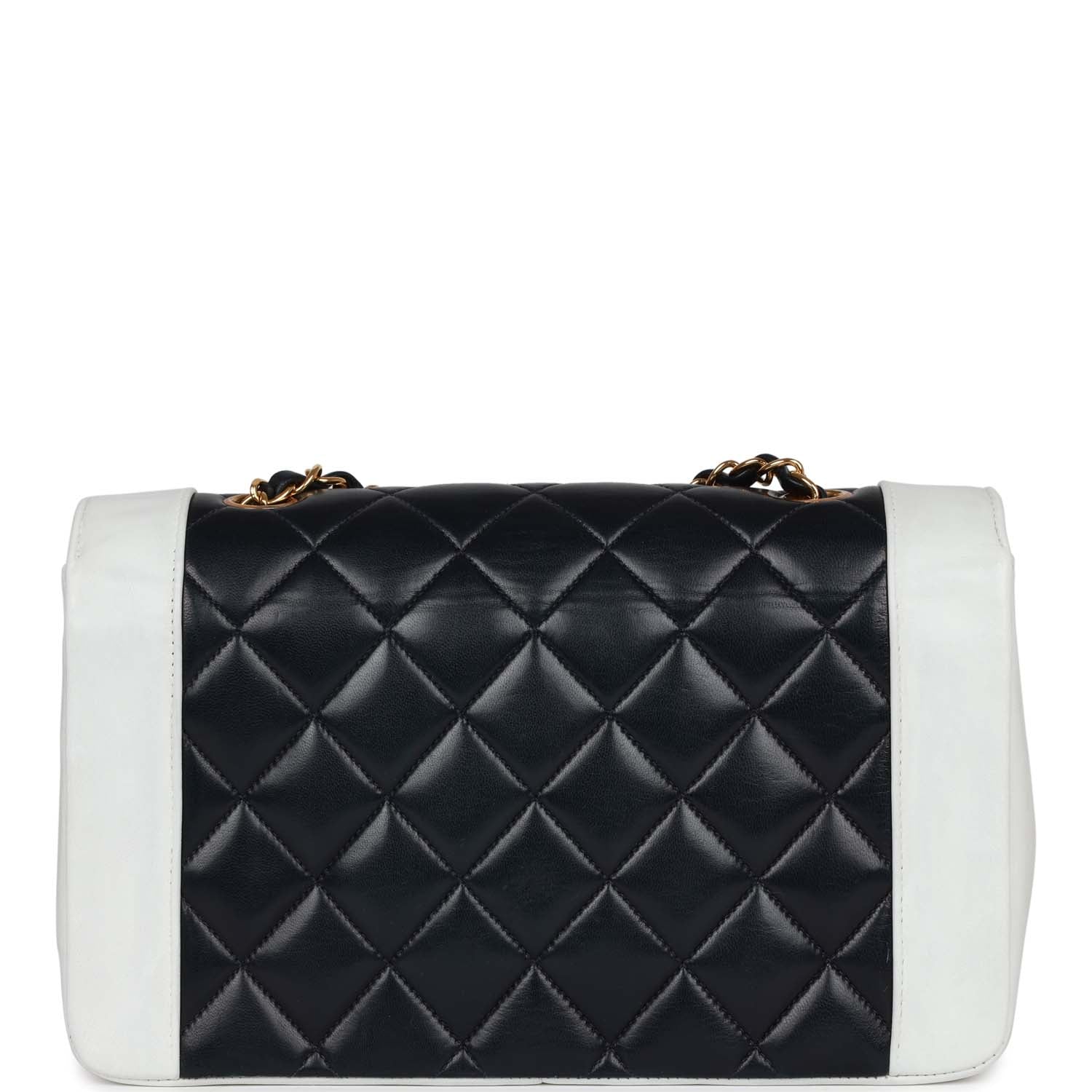Chanel Vintage Small Diana Flap Bag White and Navy Lambskin Gold Hardware