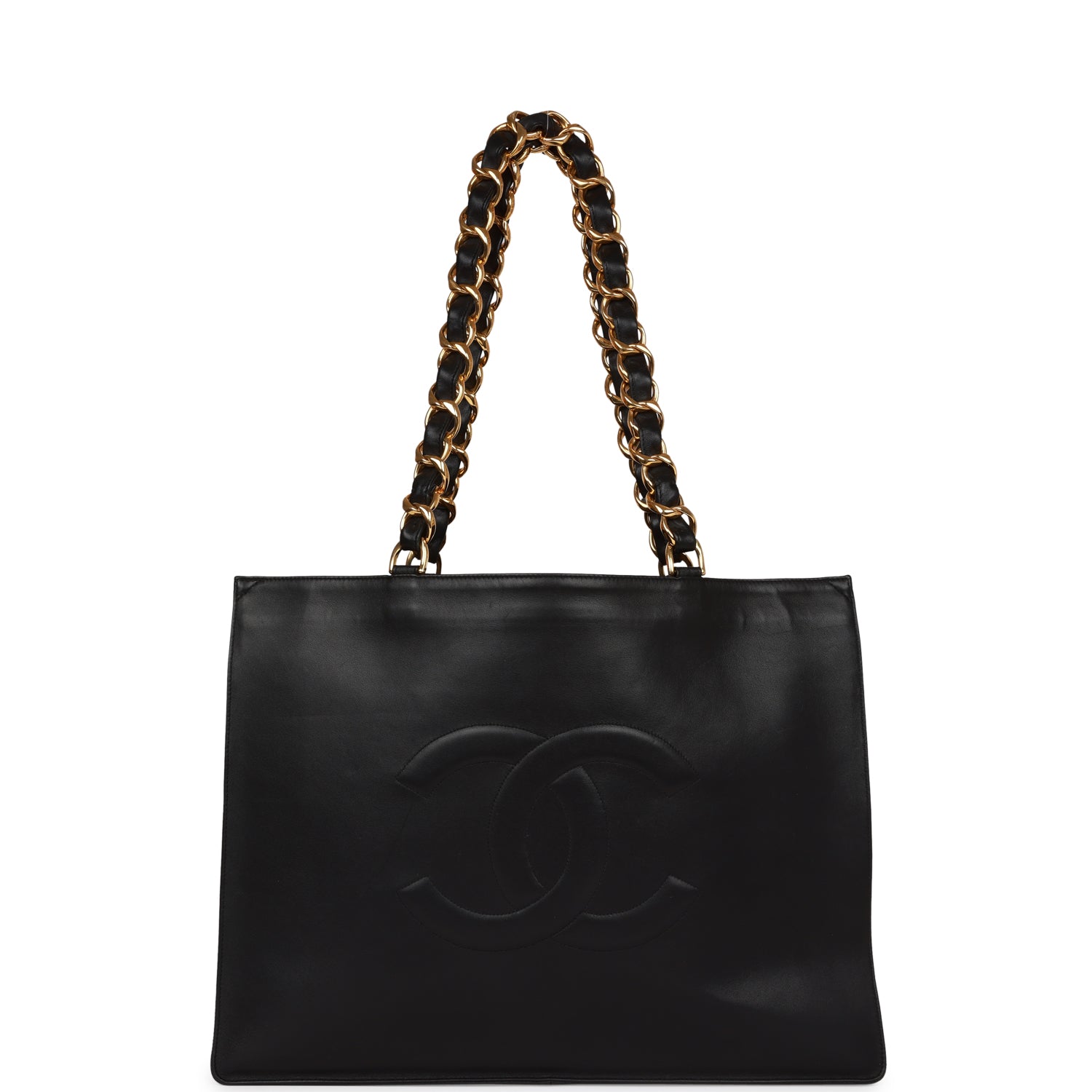 Chanel Vintage CC Chain Shopping Tote Bag Black Lambskin Gold Hardware