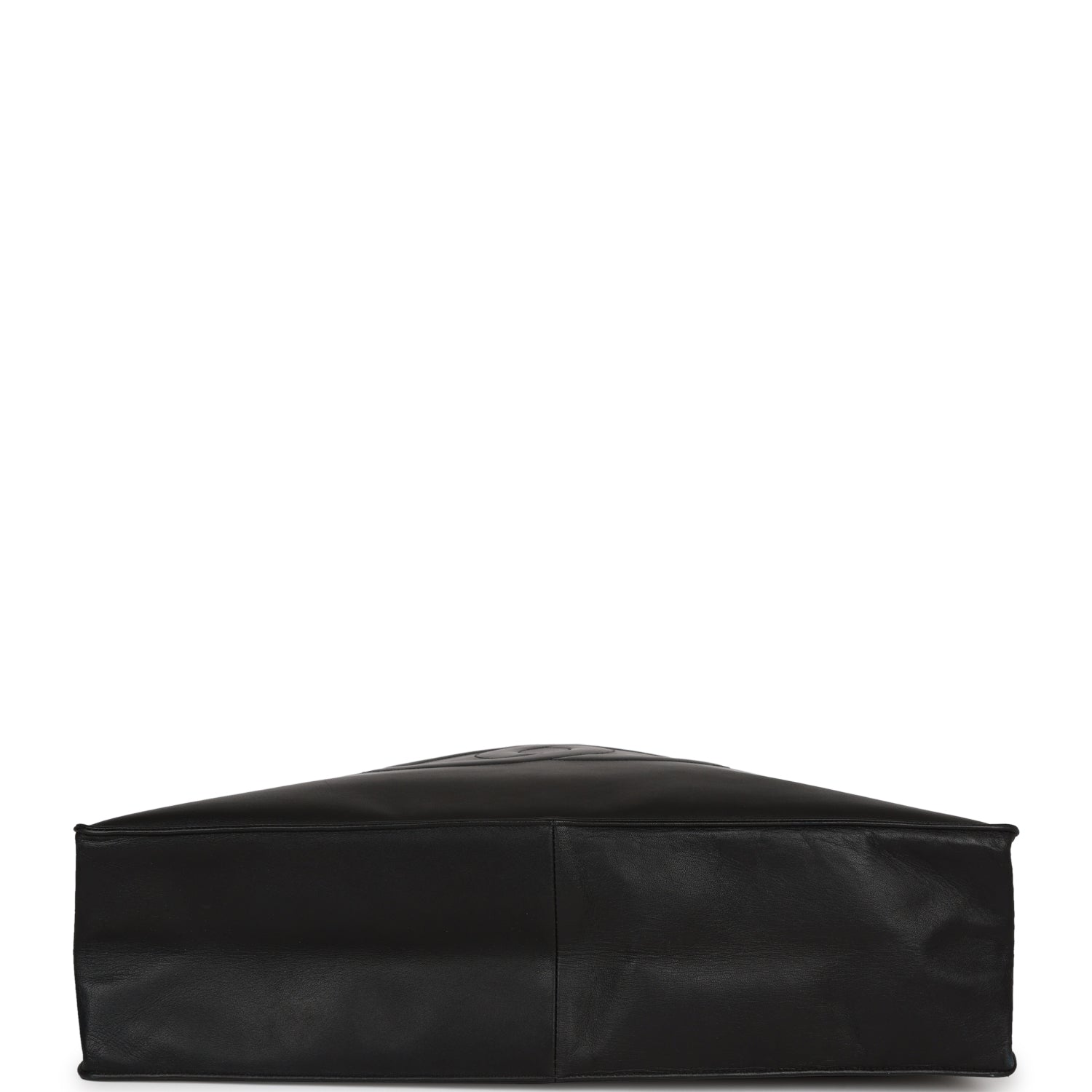 This Vintage Shopping Tote is in Black lambskin with gold hardware and features a signature CC logo accent and two interwoven gold plated chain link and black leather shoulder straps.