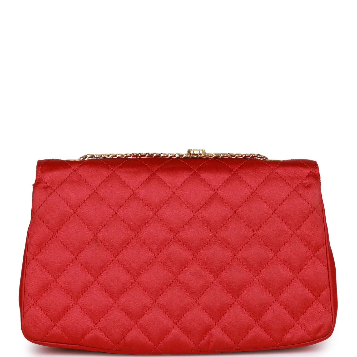 Chanel Vintage Flap Bag Red Satin Gold Hardware