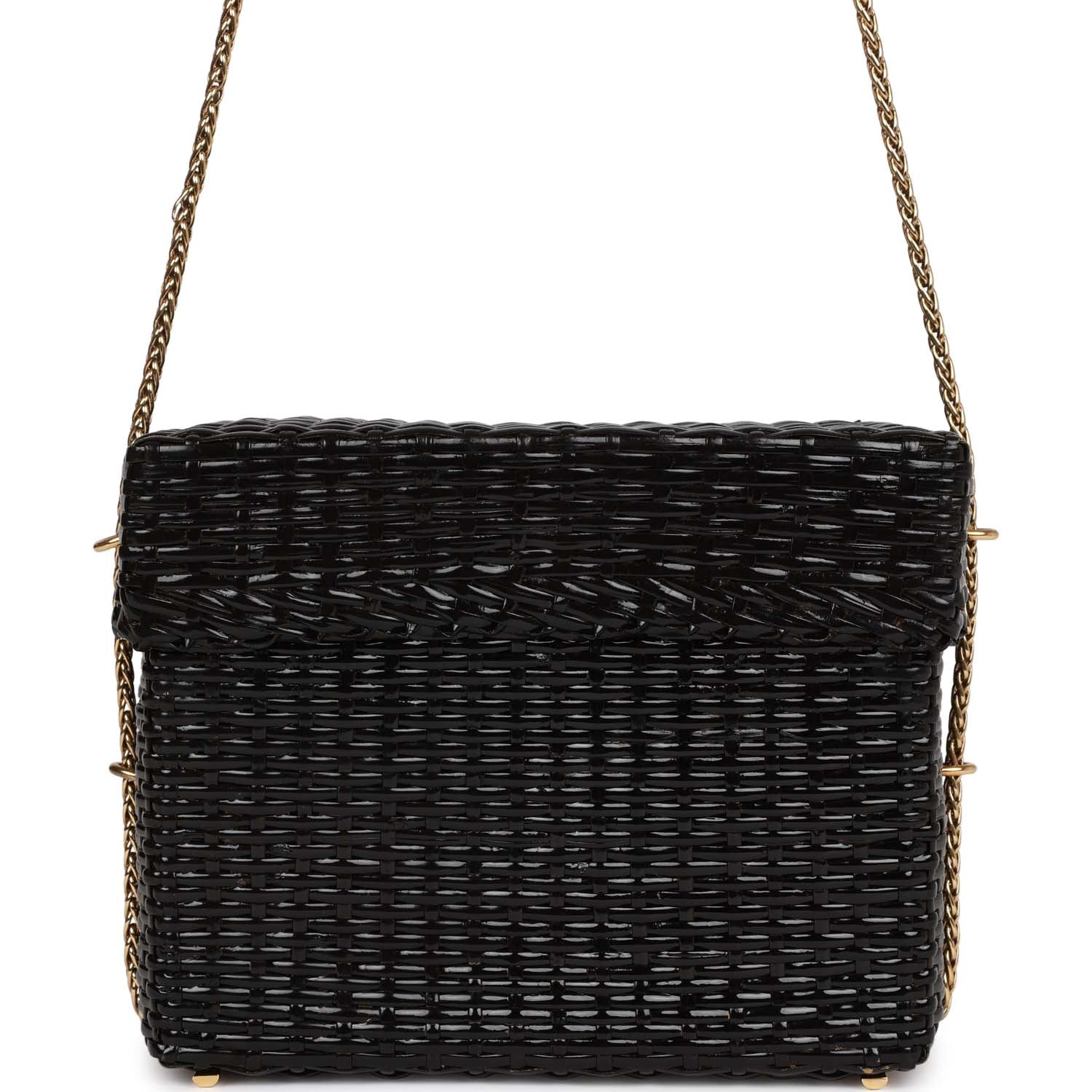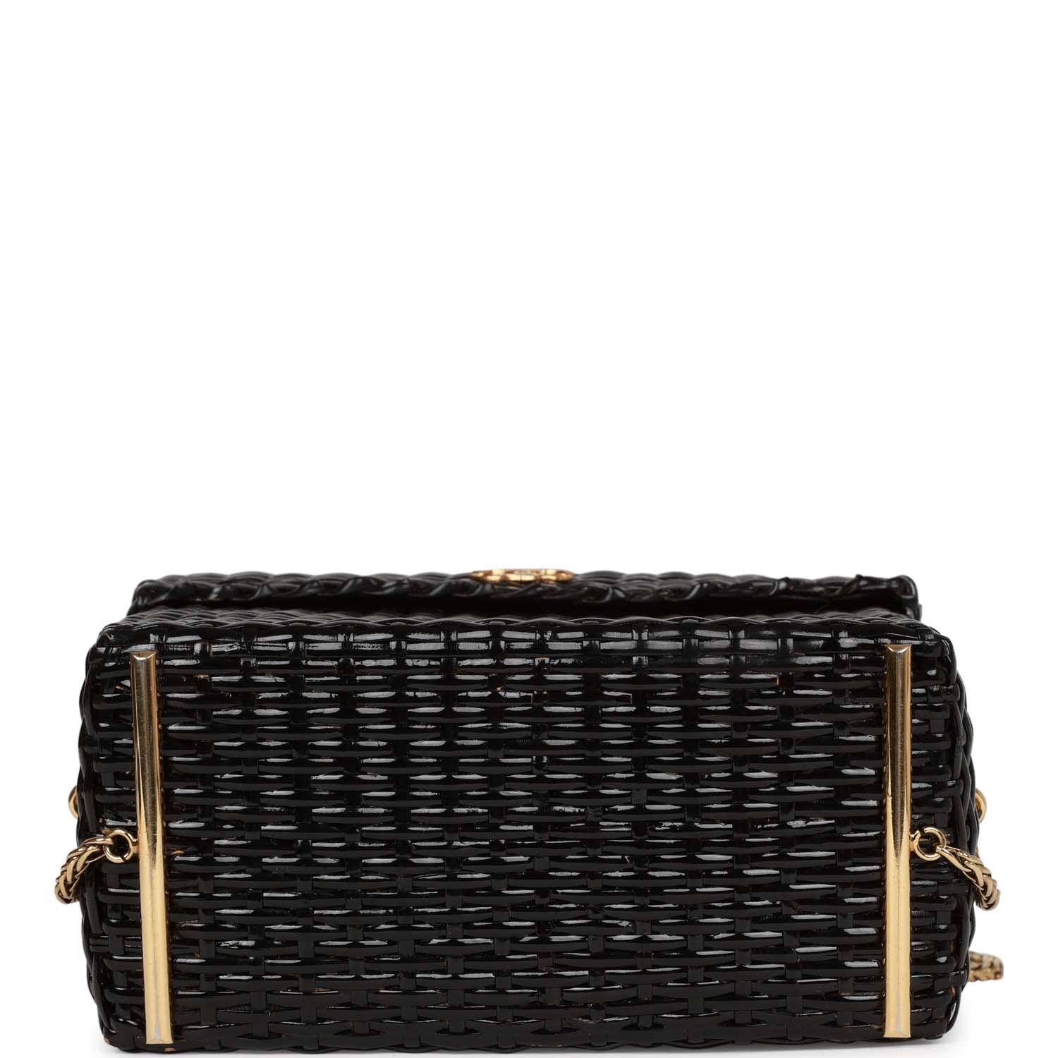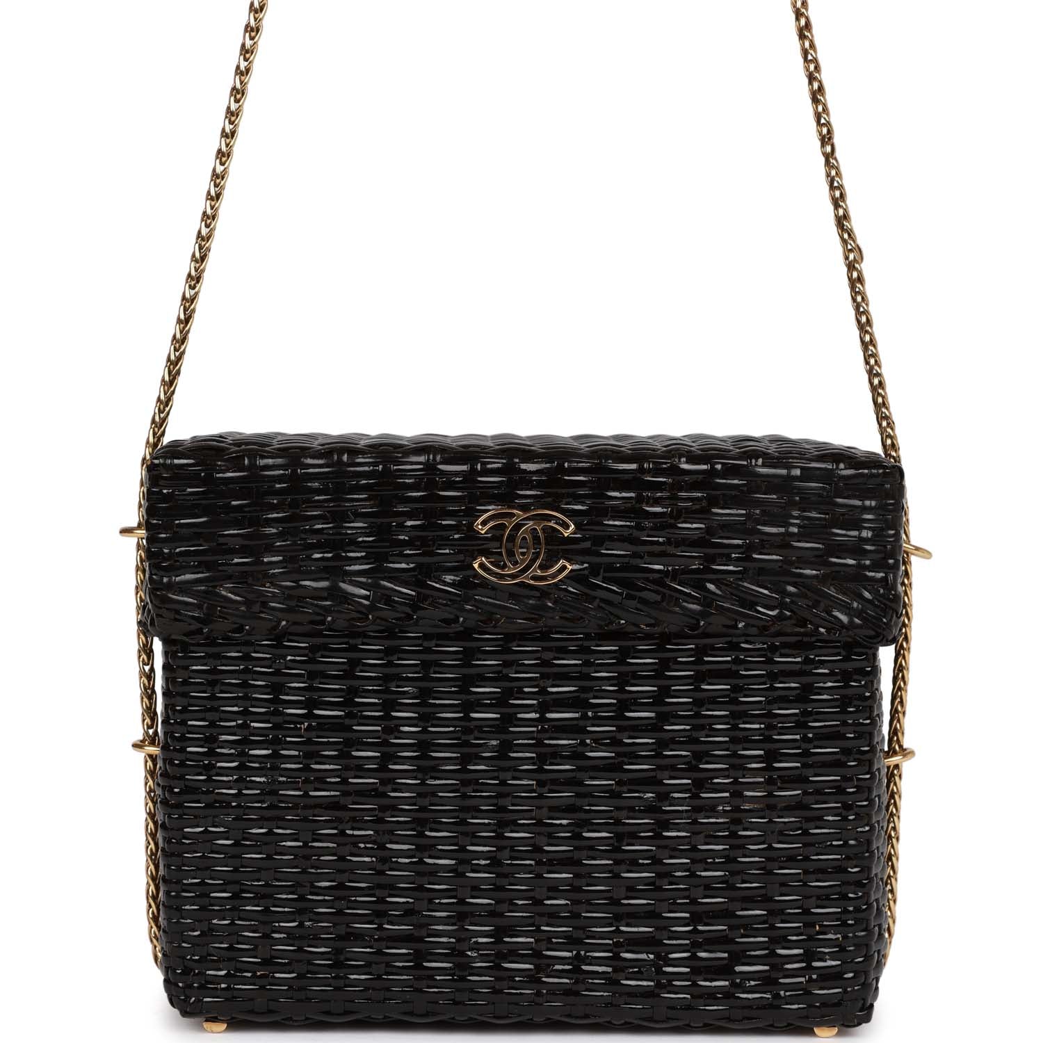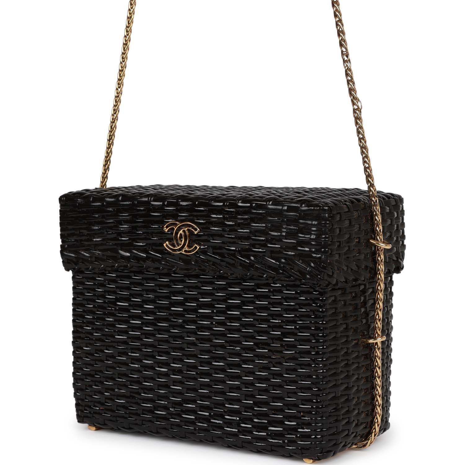 Chanel Vintage Wicker Picnic Basket Bag Black Gold Hardware