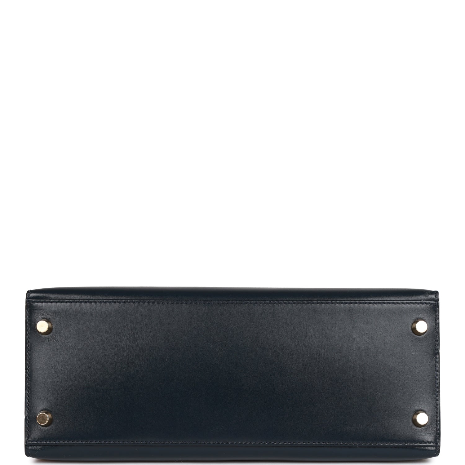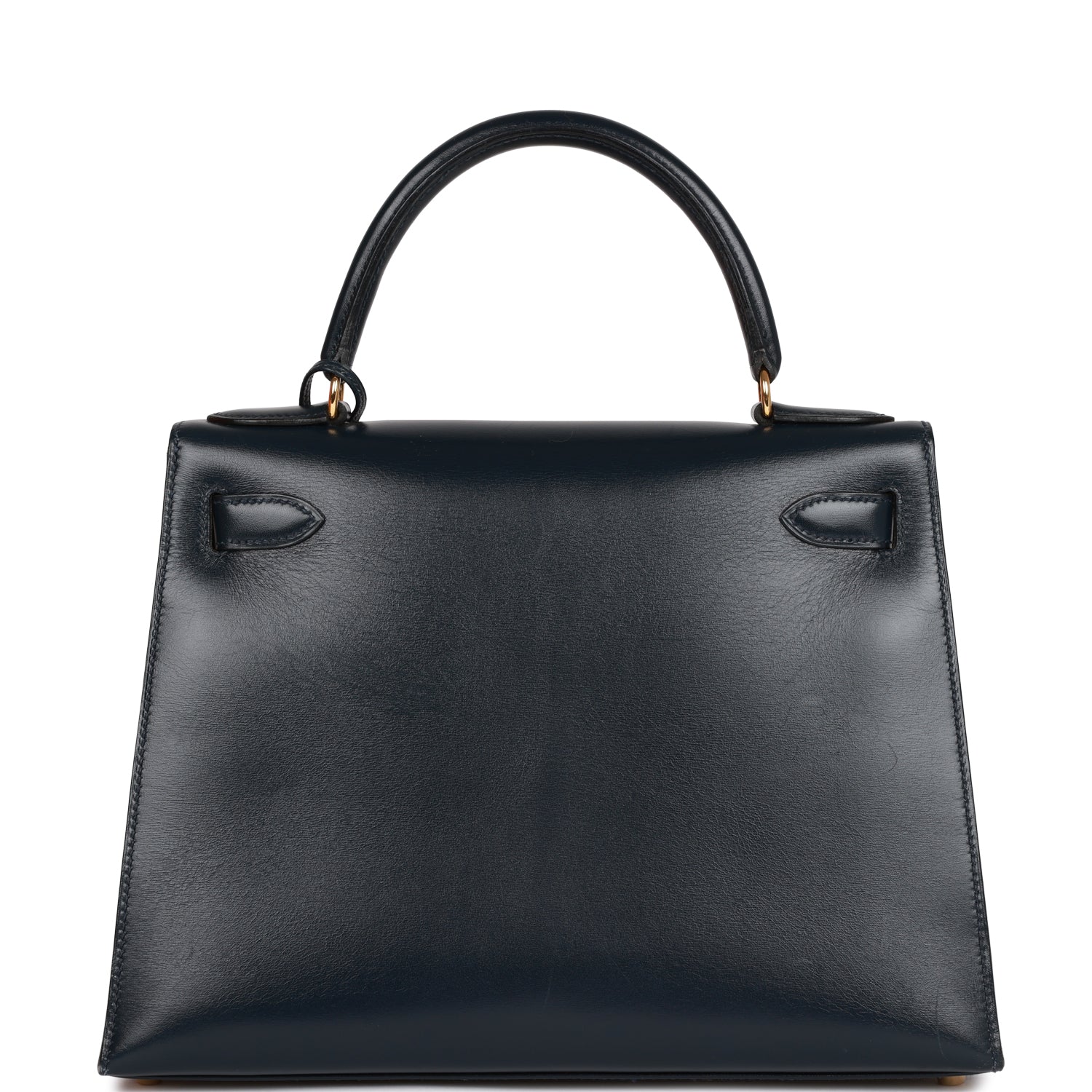 Hermes Kelly 28 Sellier Bleu Marine Box Gold Hardware