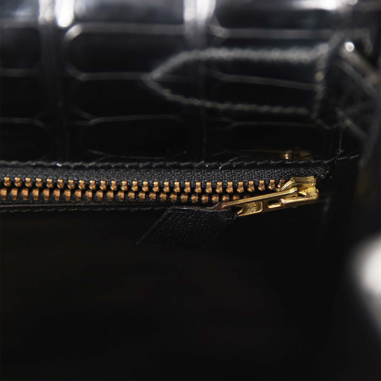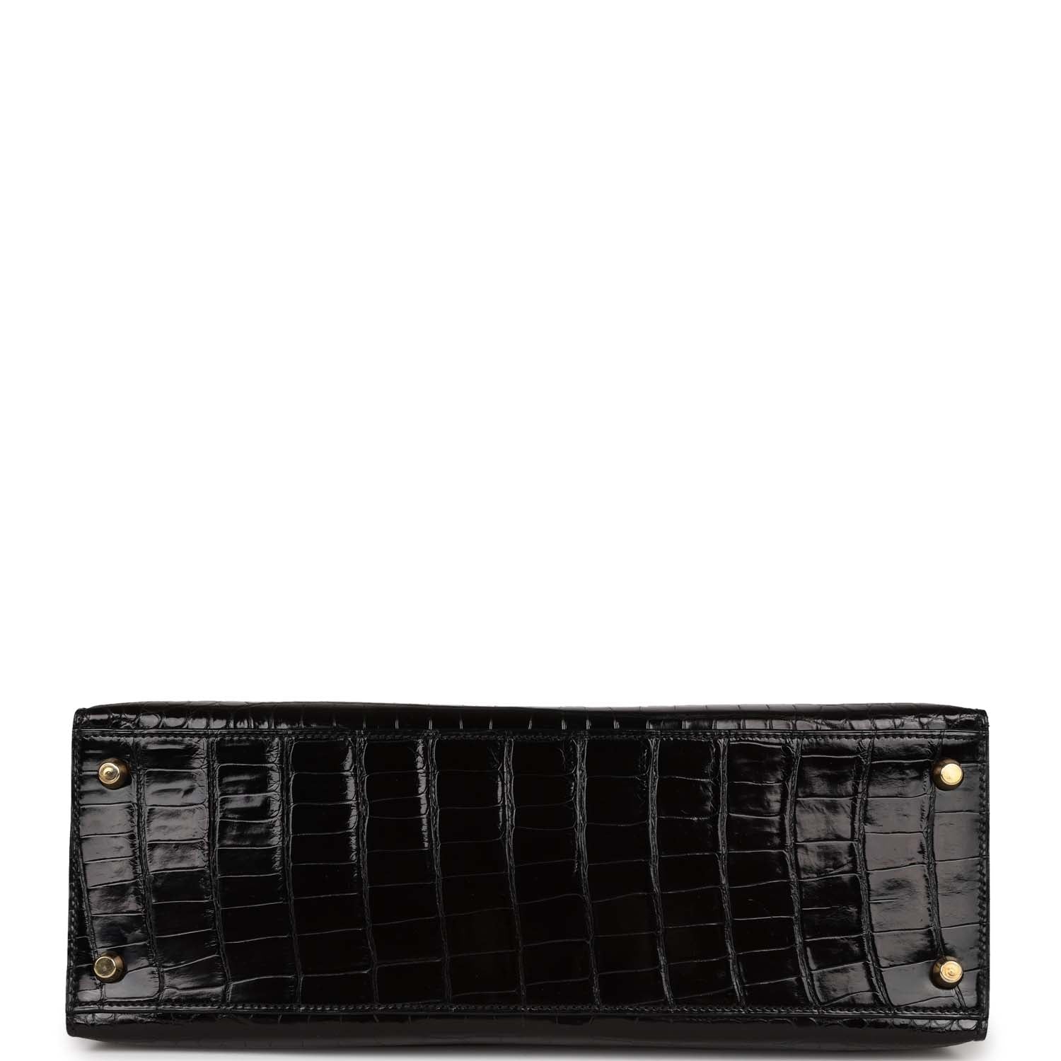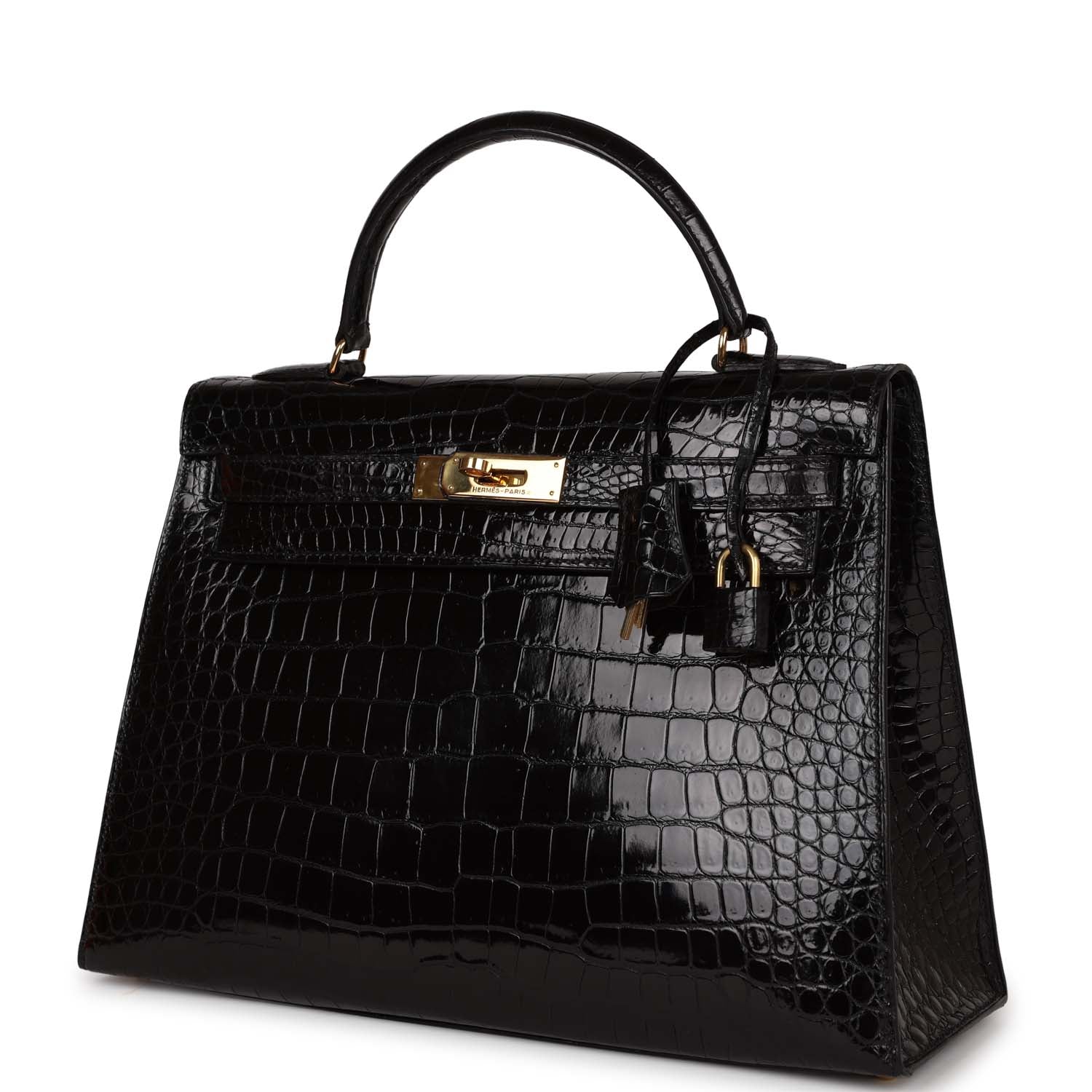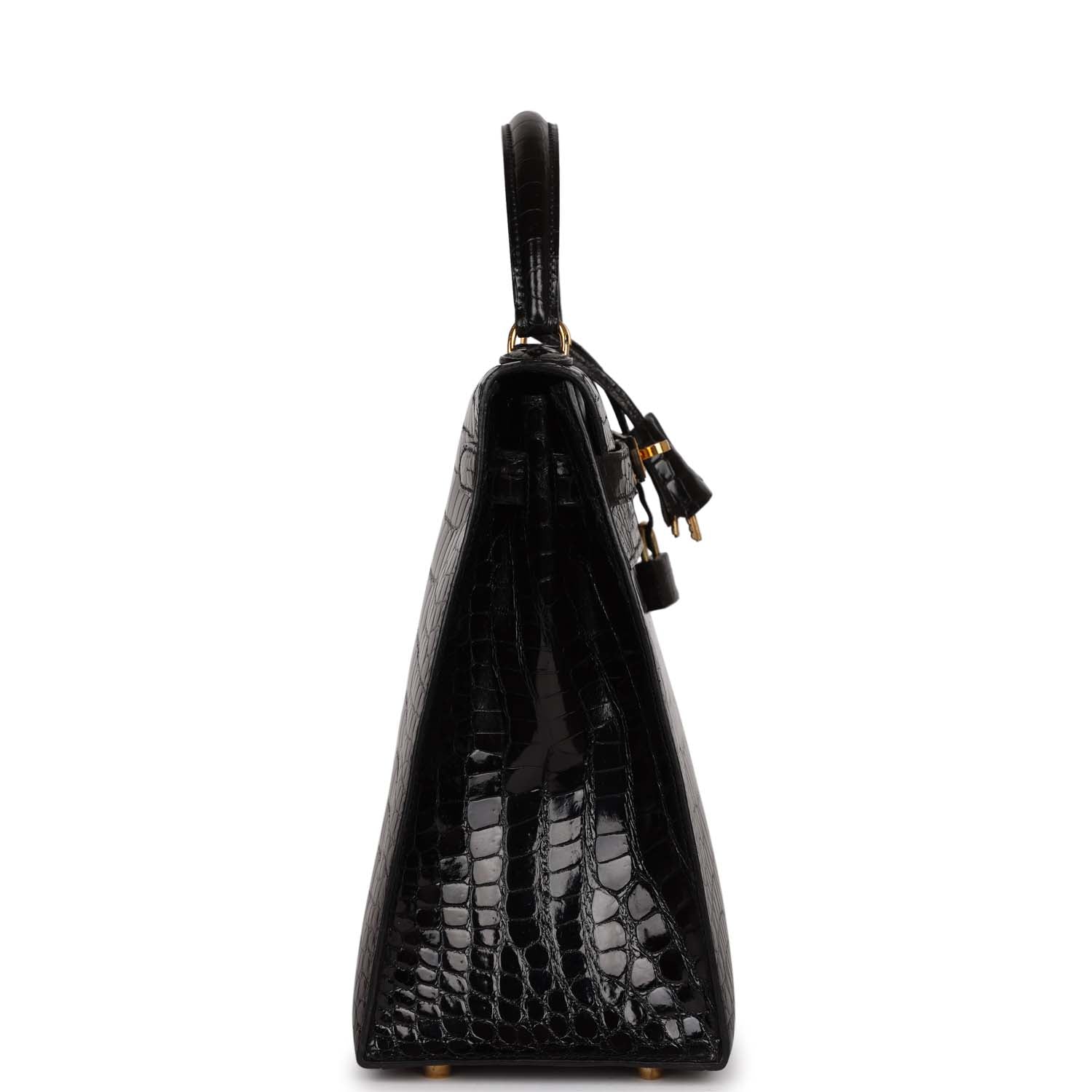 Hermes Kelly 32 Sellier Black Shiny Niloticus Crocodile Gold Hardware