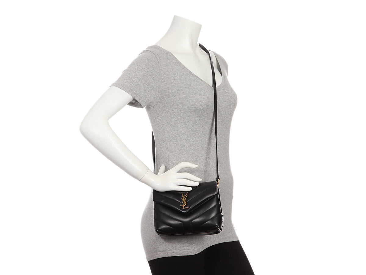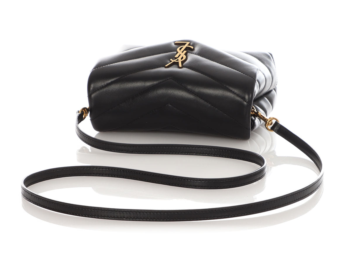 Saint Laurent’s Black Toy LouLou is small and sophisticated! Made of black quilted leather with gold YSL hardware on the flap, it secures with a magnetic snap, opening to black fabric inside divided into two sections with three card slots on the front wall and a zipped pocket on the back wall. In very good condition with a dustbag, there is rubbing on the corners, a handful of scratches throughout, light scratches on the hardware, and a few marks inside. With a 22-inch drop on the detachable strap, this Toy isn’t playing around!