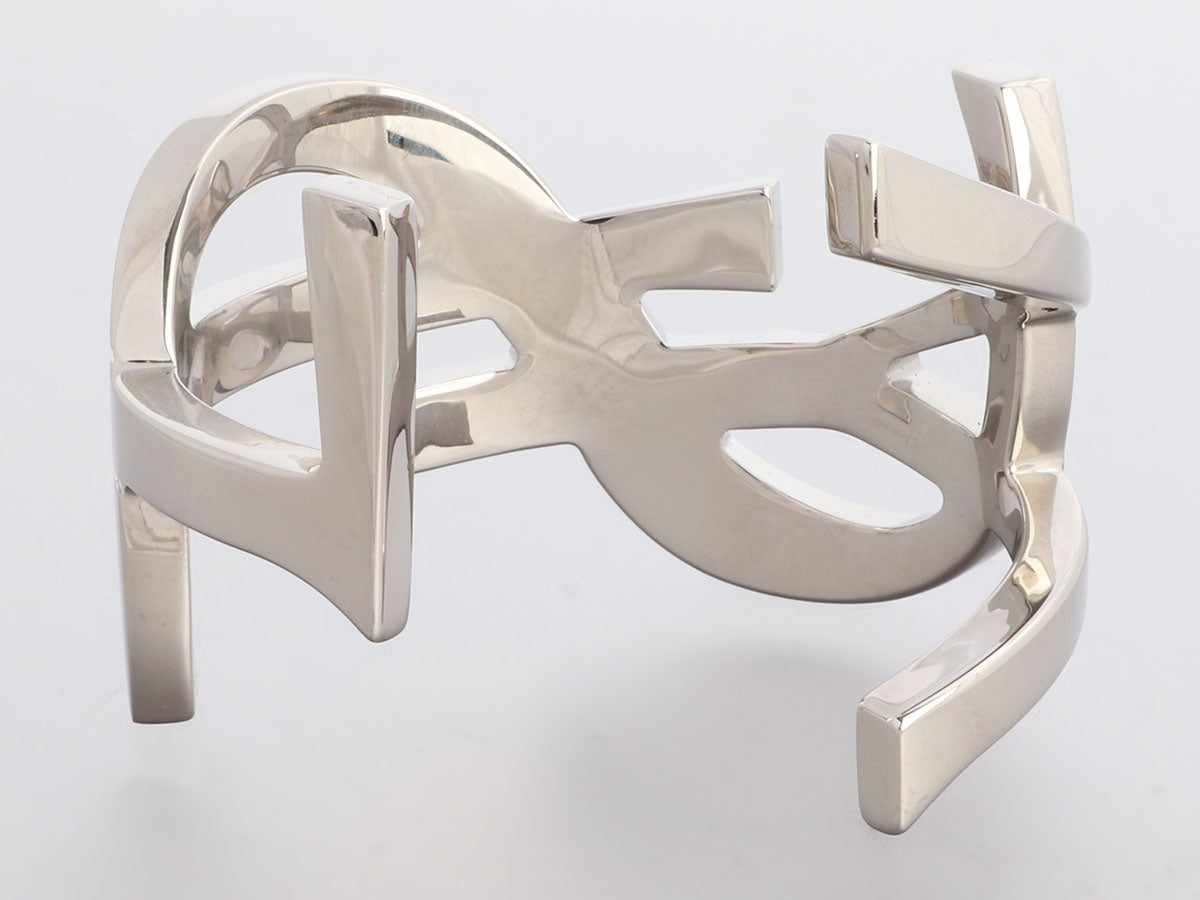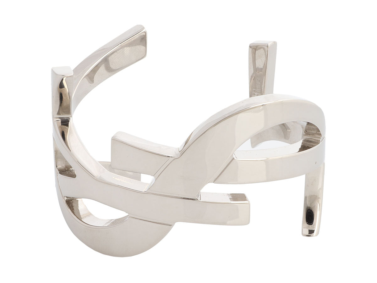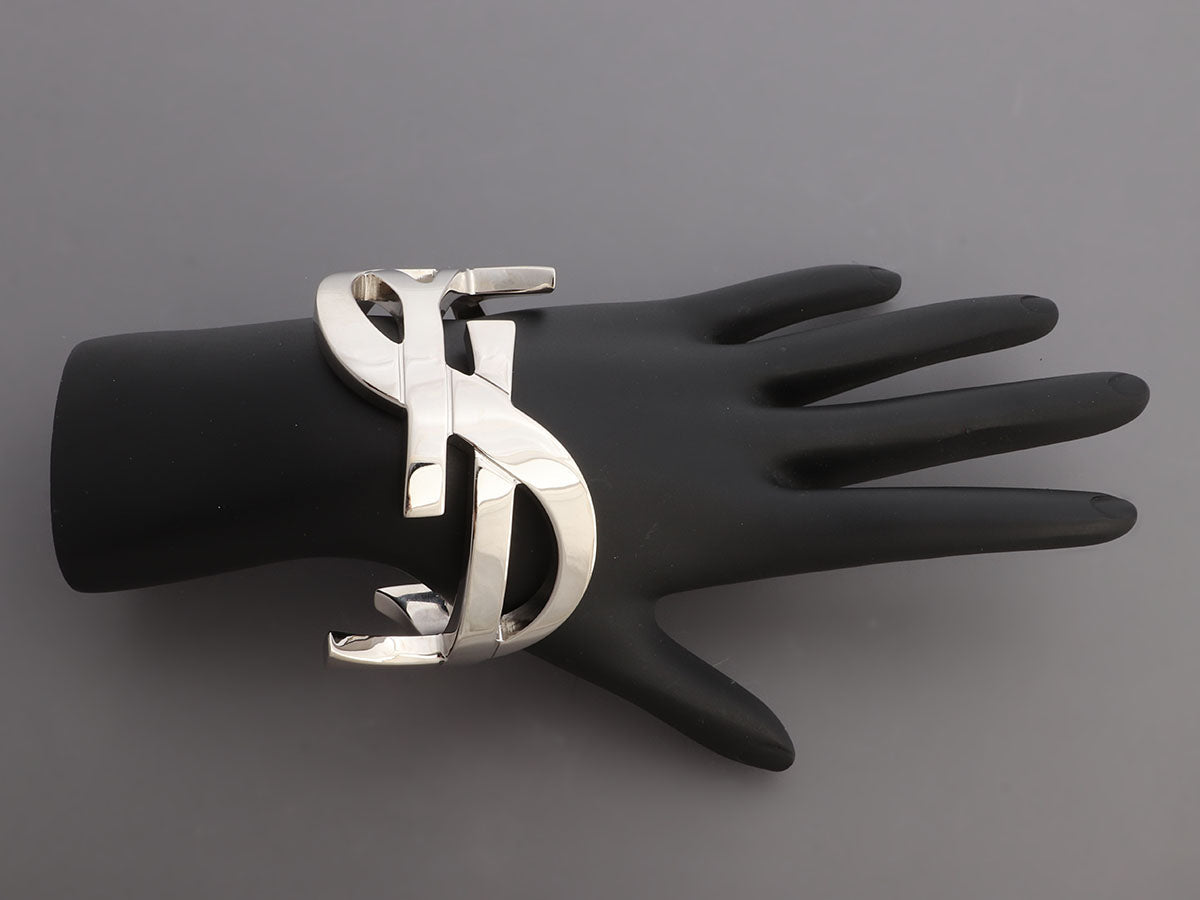 Saint Laurent Silver Cassandre Monogram Cuff Bracelet