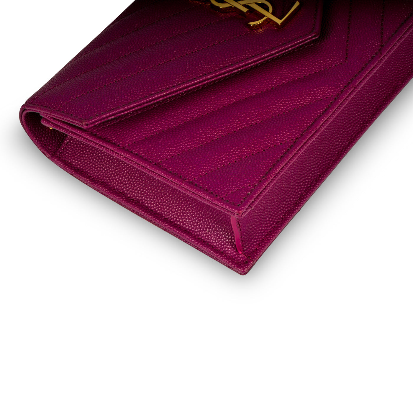 Carefully crafted from purple matelassé leather, Saint Laurent presents their iconic Monogram Envelope Wallet-On-Chain with gold tone hardware. The ideal accessory to compliment anything in your wardrobe and can easily take you from day to night, this purple mini bag is the perfect companion to accompany you wherever you go at whatever hour. With its signature YSL logo prominently placed at the front of the bag, this WOC is luxurious and one of the most glamorous bags around. An absolute must-have for any woman with a love for luxury and all-things-colourful, this bag is the perfect balance between sophistication and youthfulness. Joyous, playful and effortlessly chic, the YSL WOC is that perfect little piece to brighten up any neutral or monochromatic look. An investment piece that will remain in style forever and in your wardrobe forever, the Envelope WOC is a well-worthy addition to any luxury handbag collection!