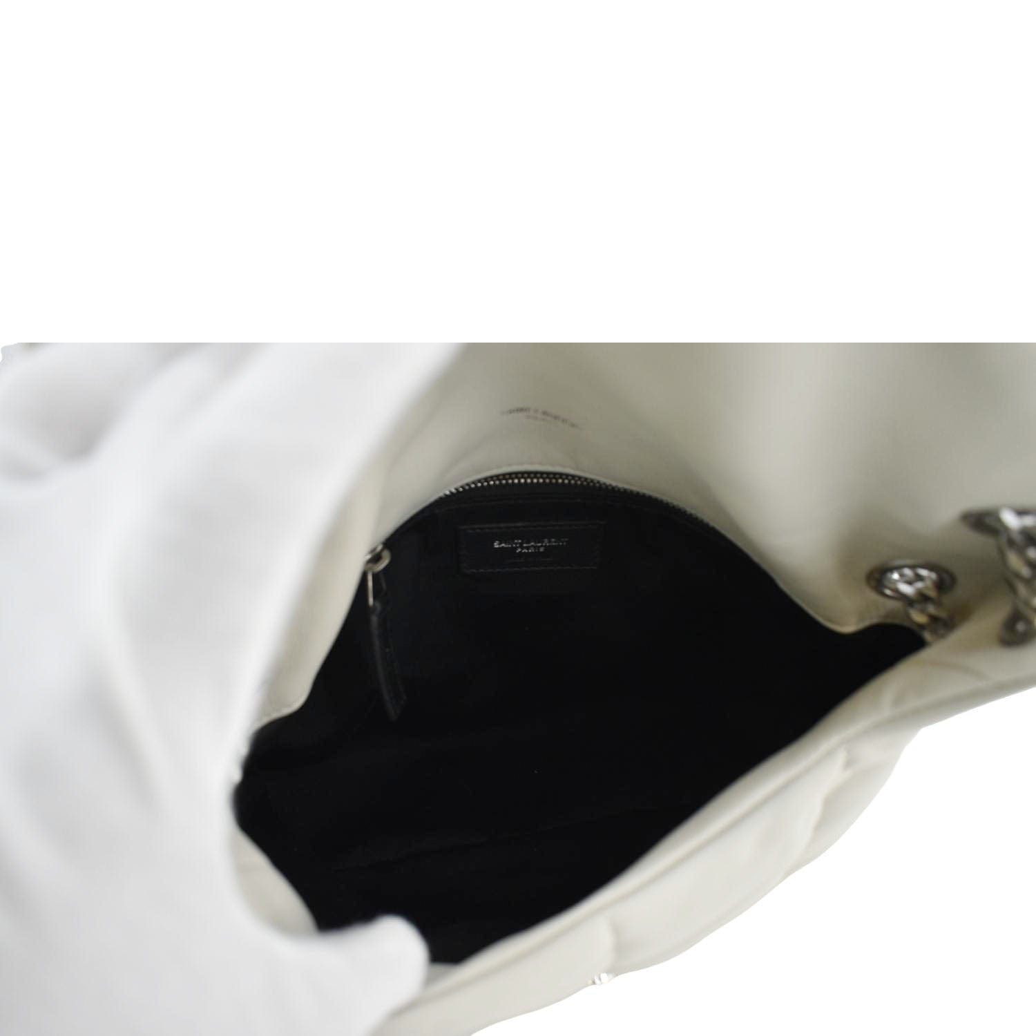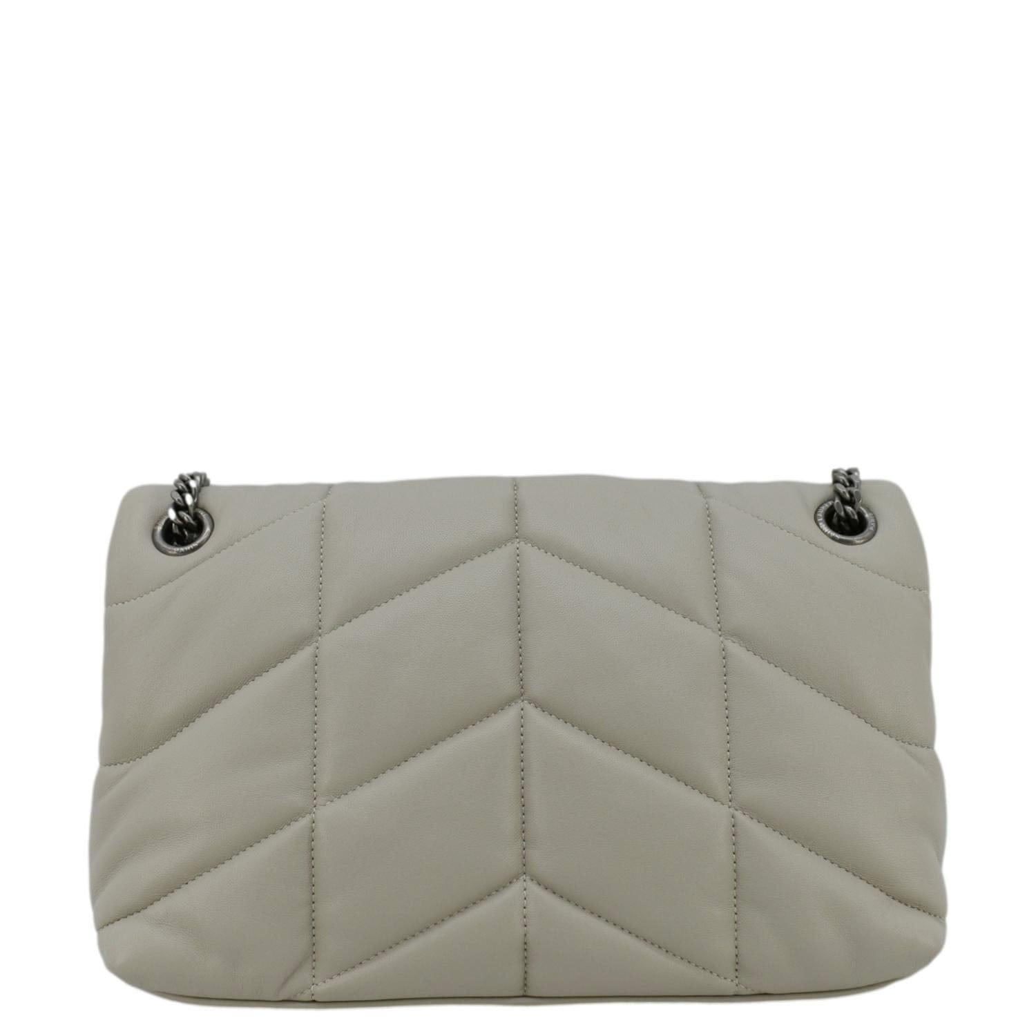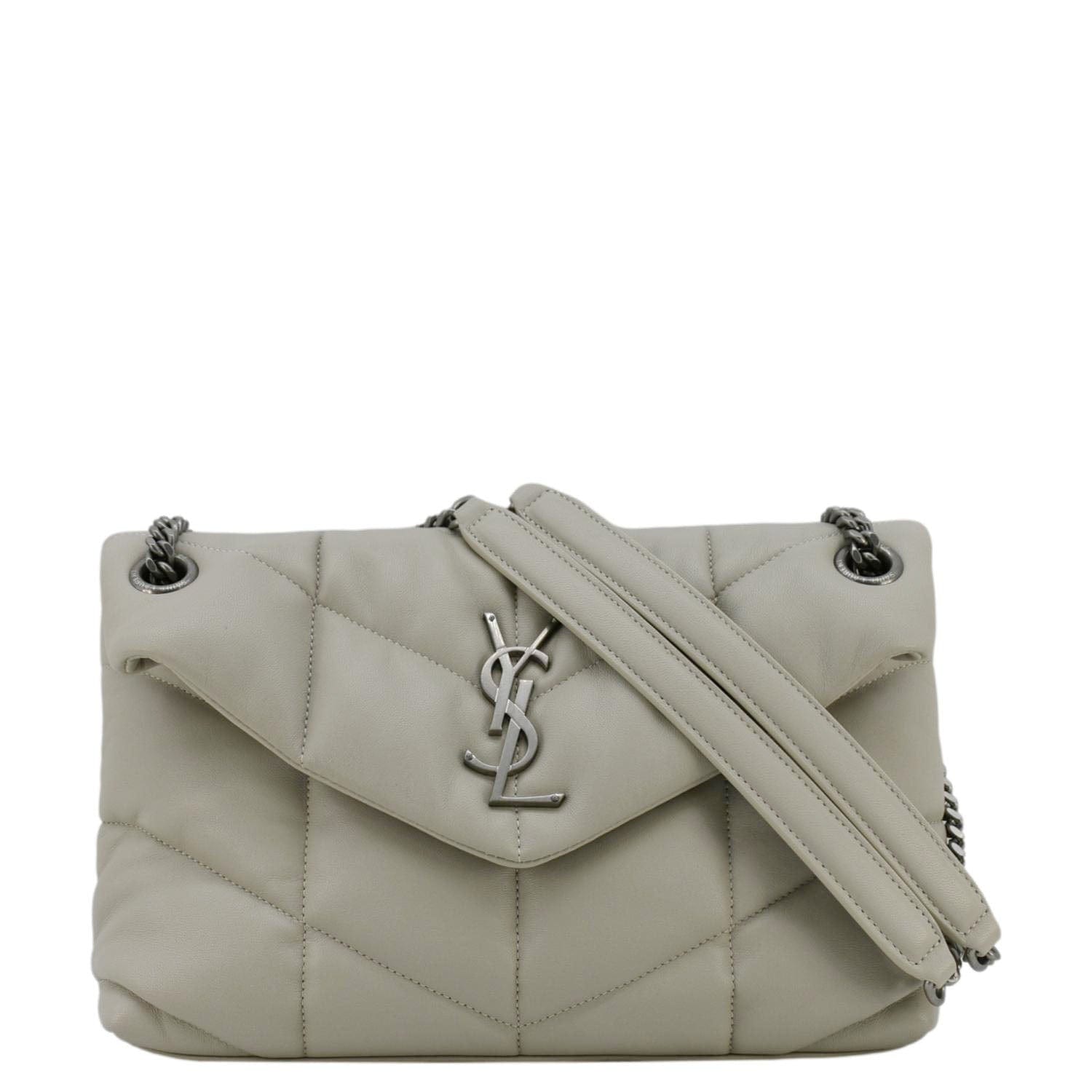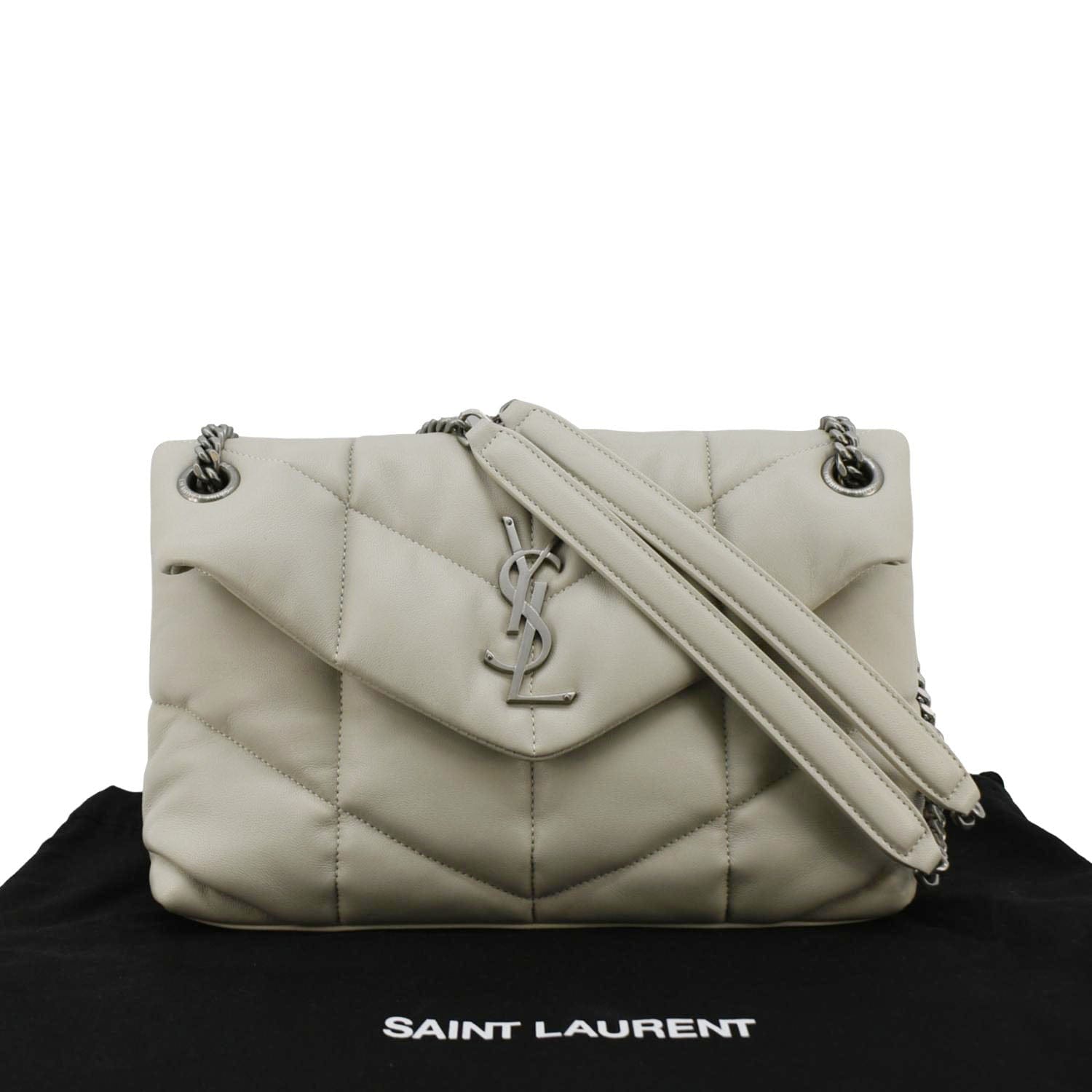YVES SAINT LAURENT Loulou Puffer Quilted Leather Shoulder Bag Light Grey
