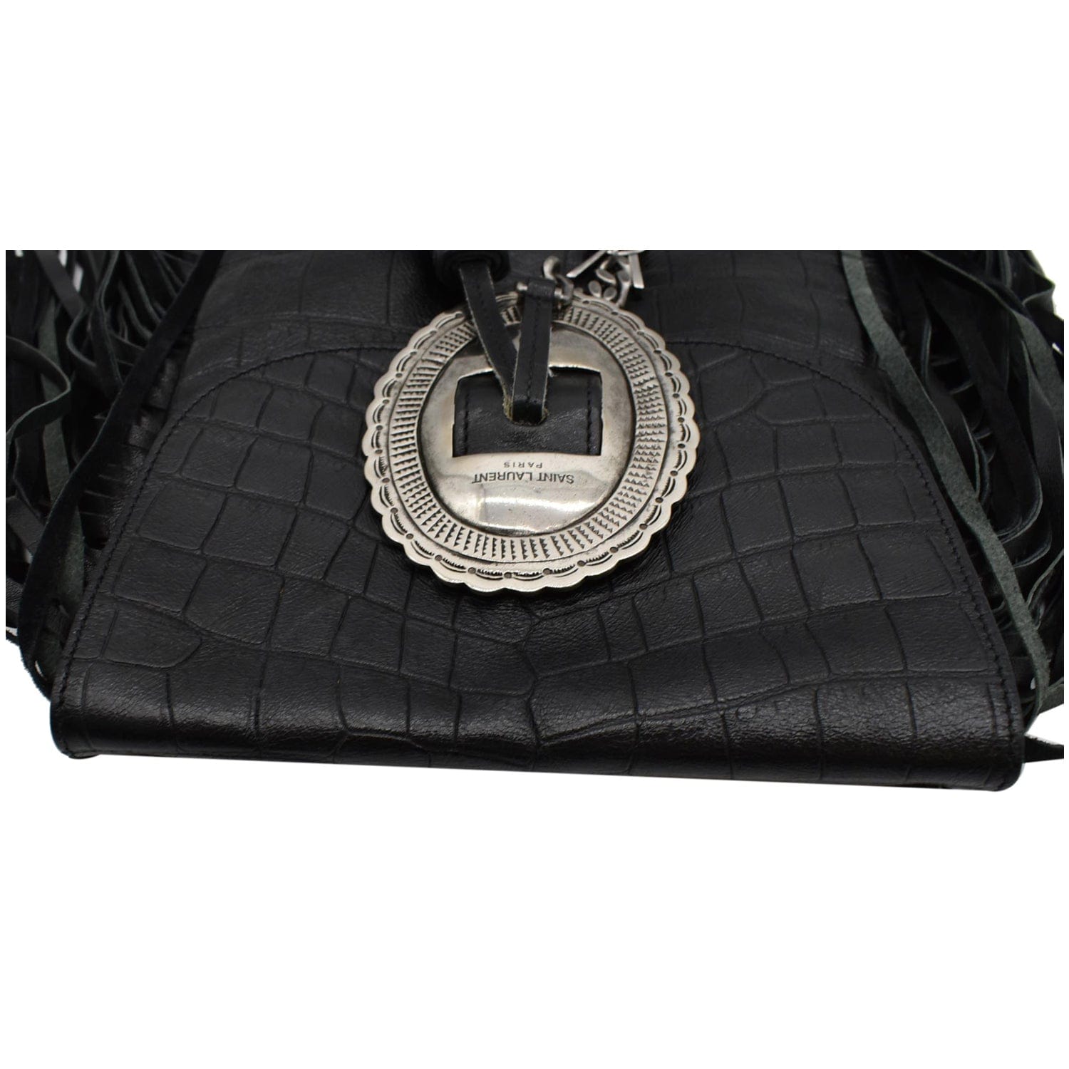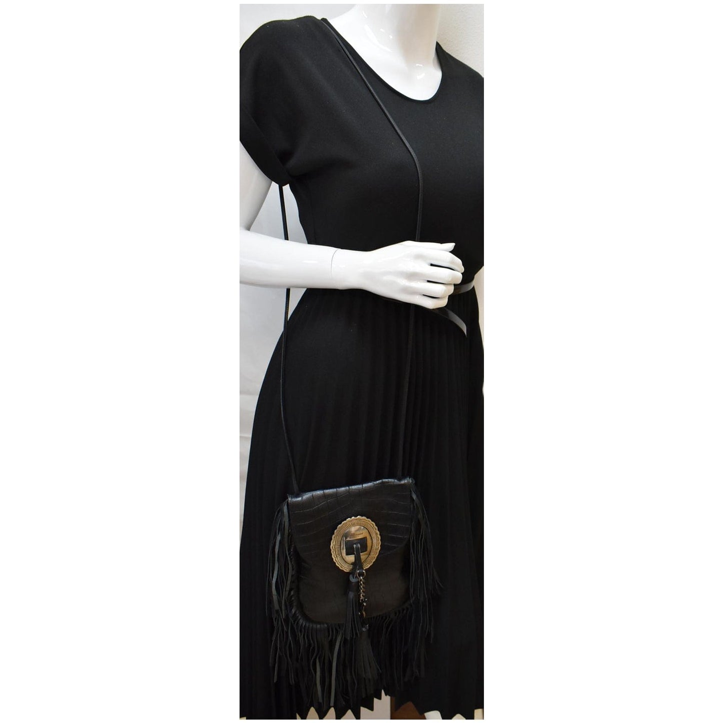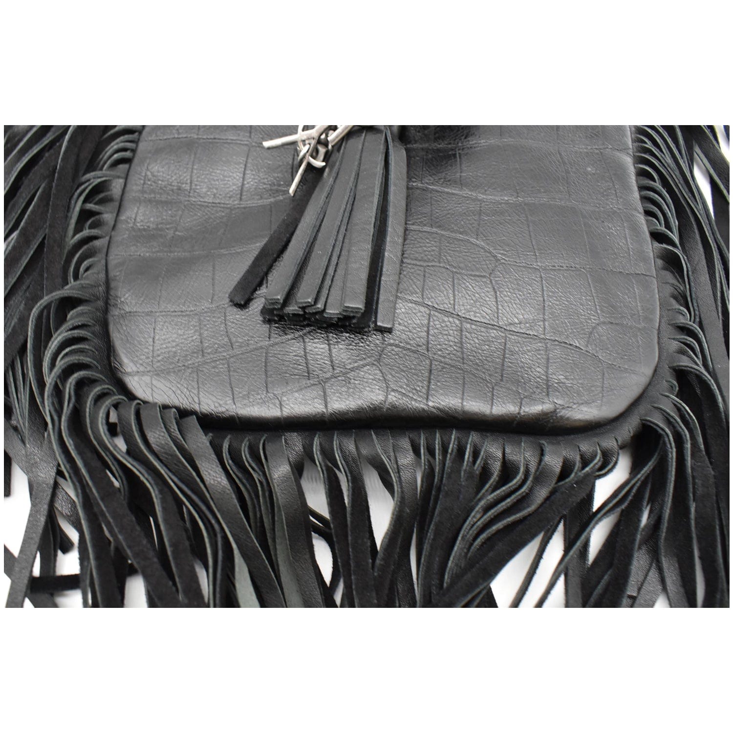 YVES SAINT LAURENT Anita Fringe Leather Crossbody Bag Black