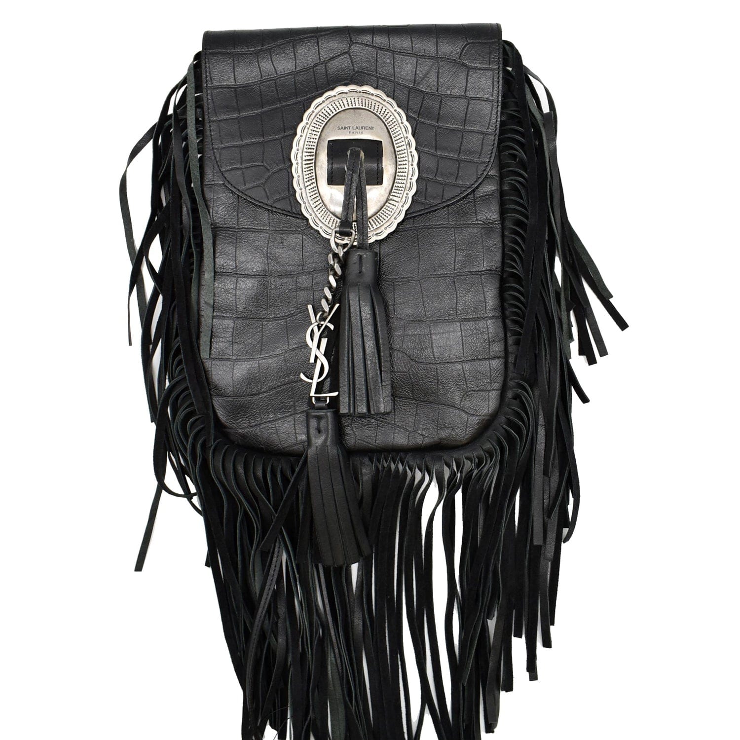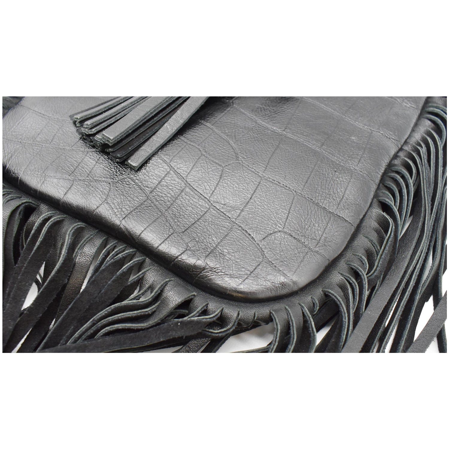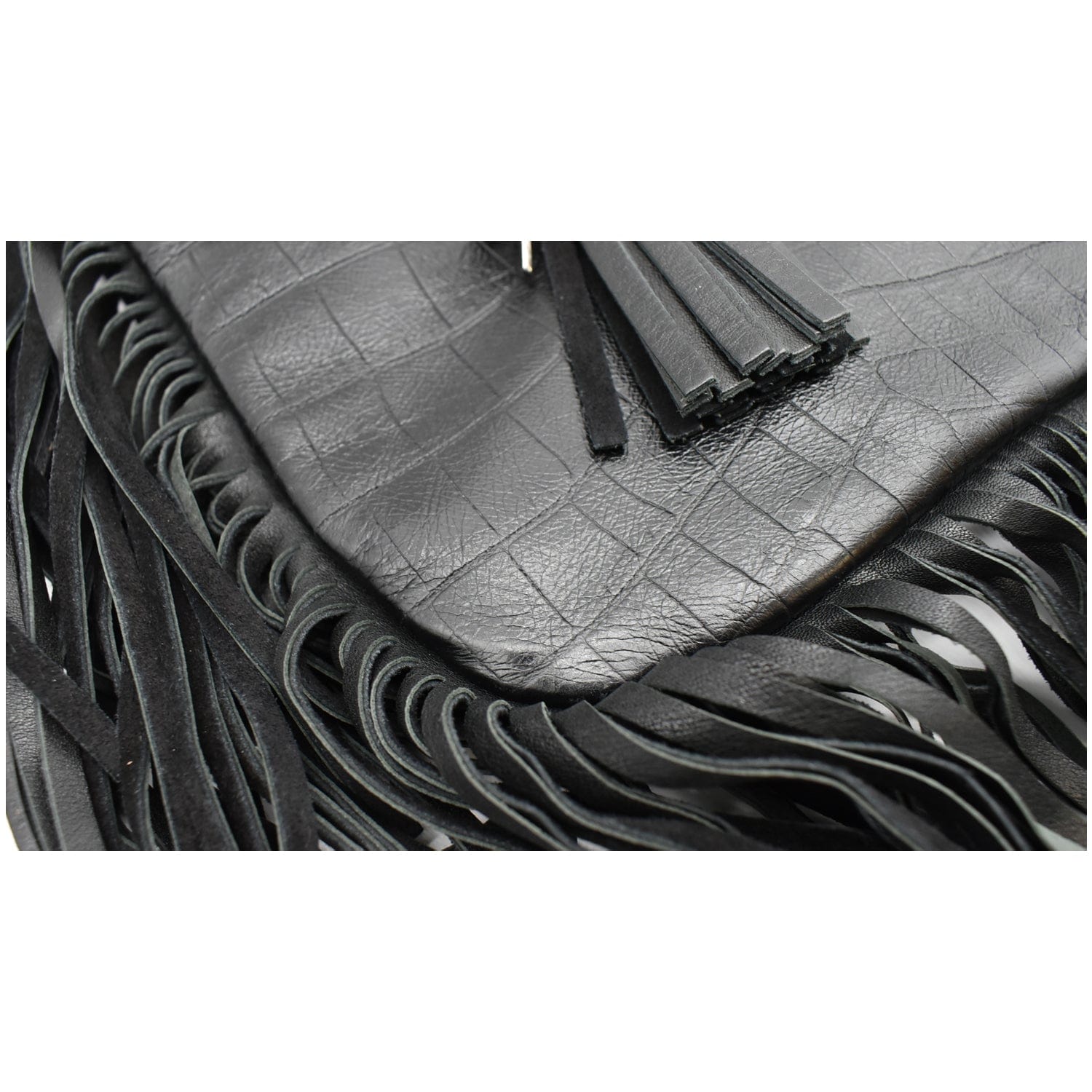YVES SAINT LAURENT Anita Fringe Leather Crossbody Bag Black