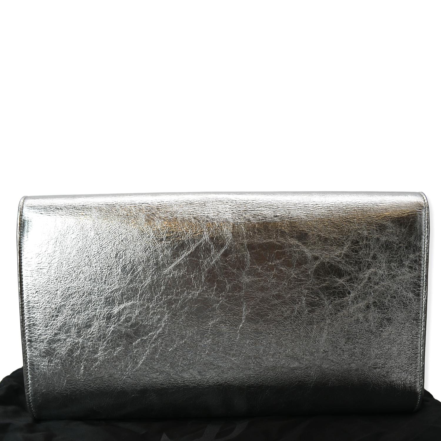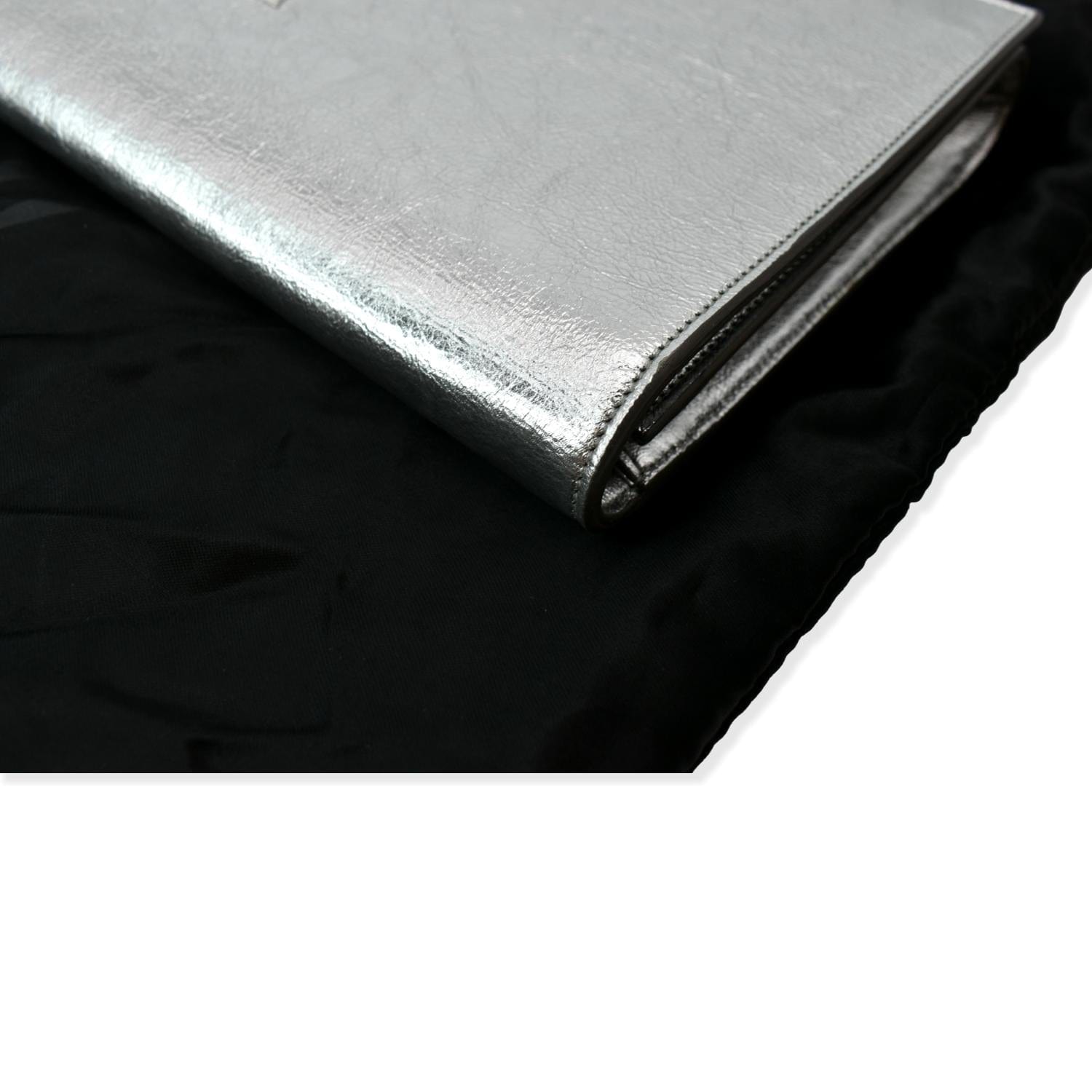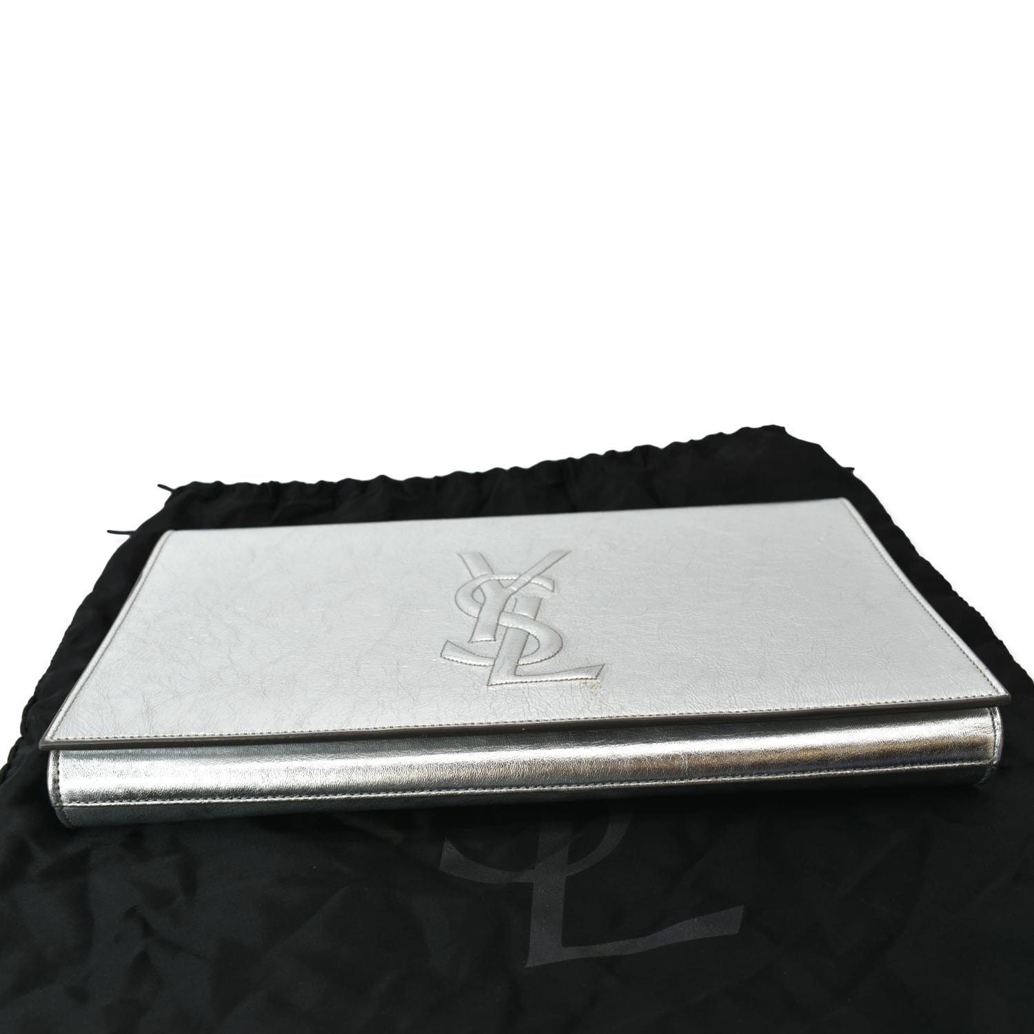 YVES SAINT LAURENT Belle de Jour Leather Clutch Bag Silver