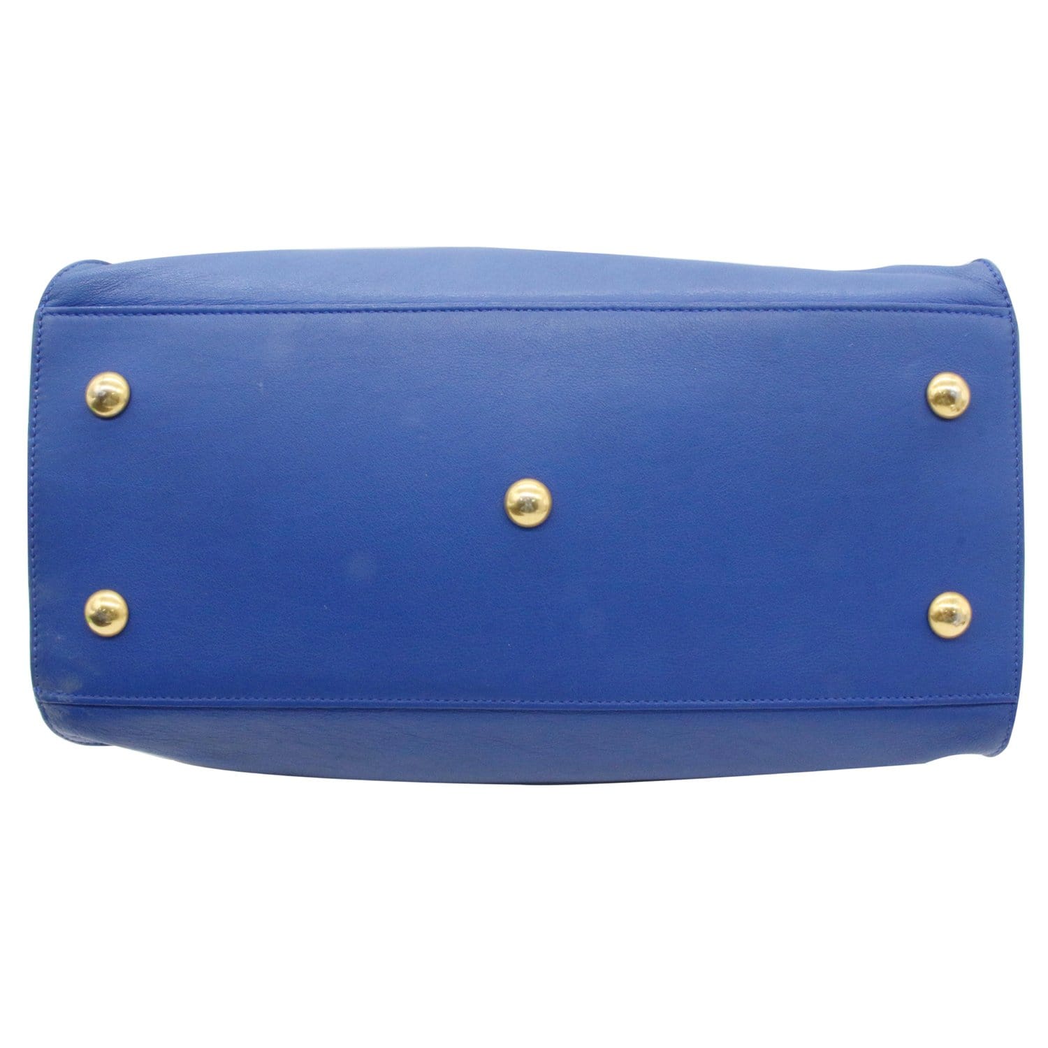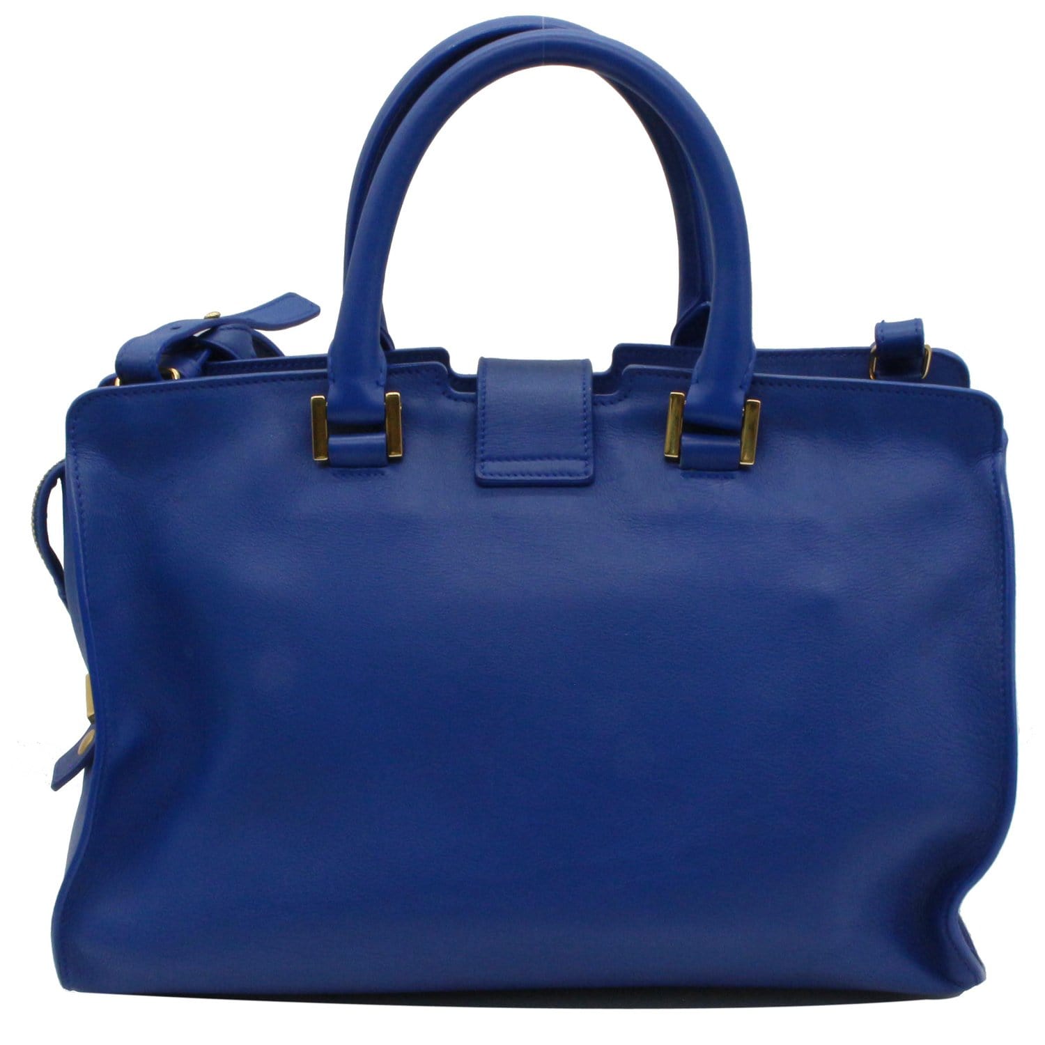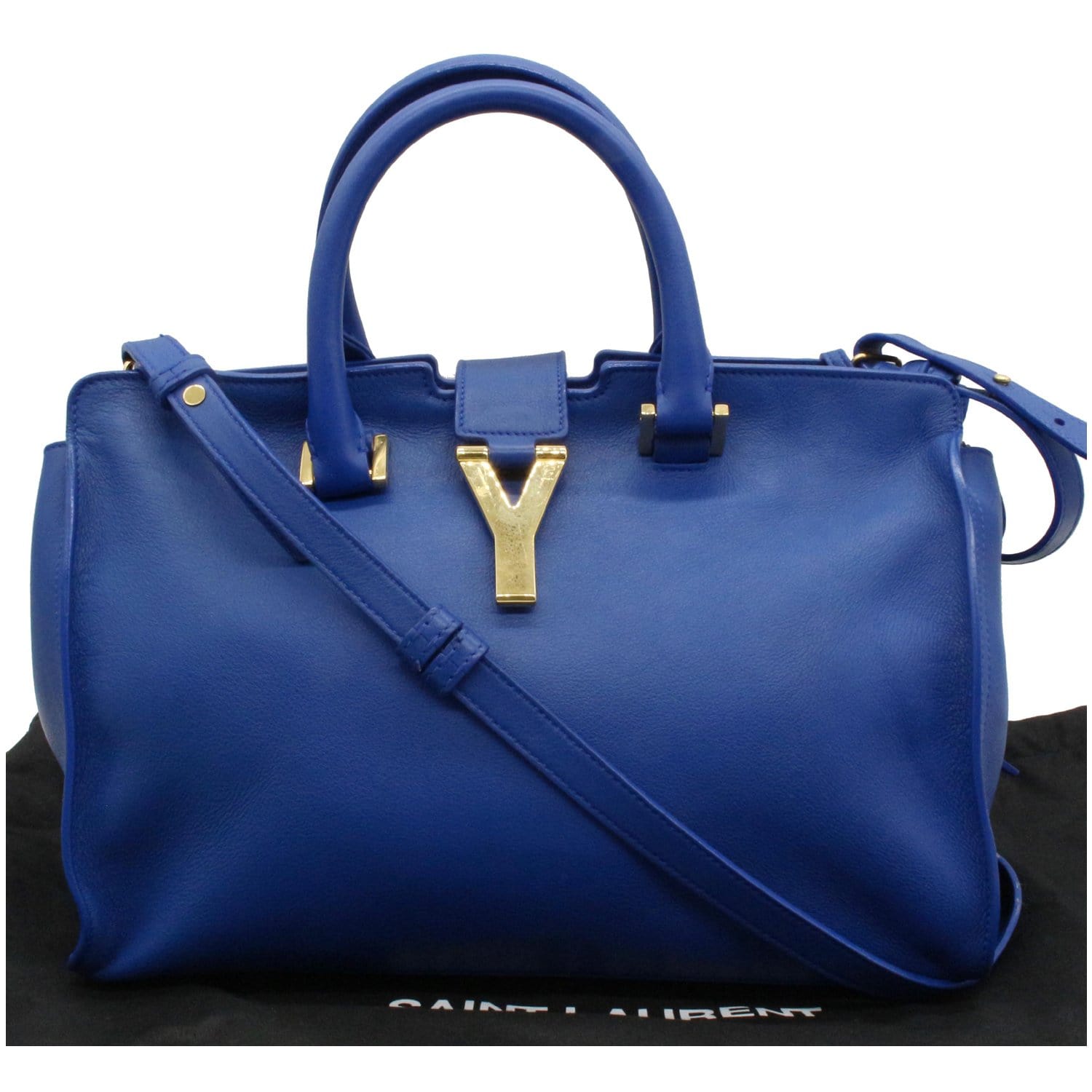 YVES SAINT LAURENT Cabas Y Small Calfskin Leather Tote Shoulder Bag Blue