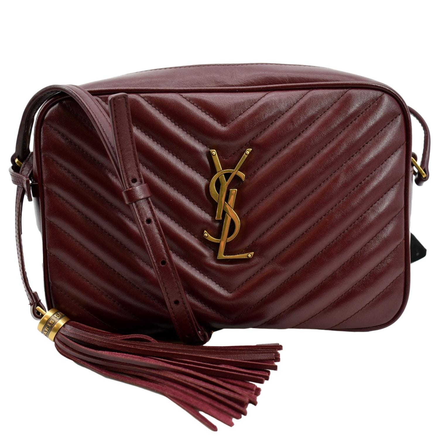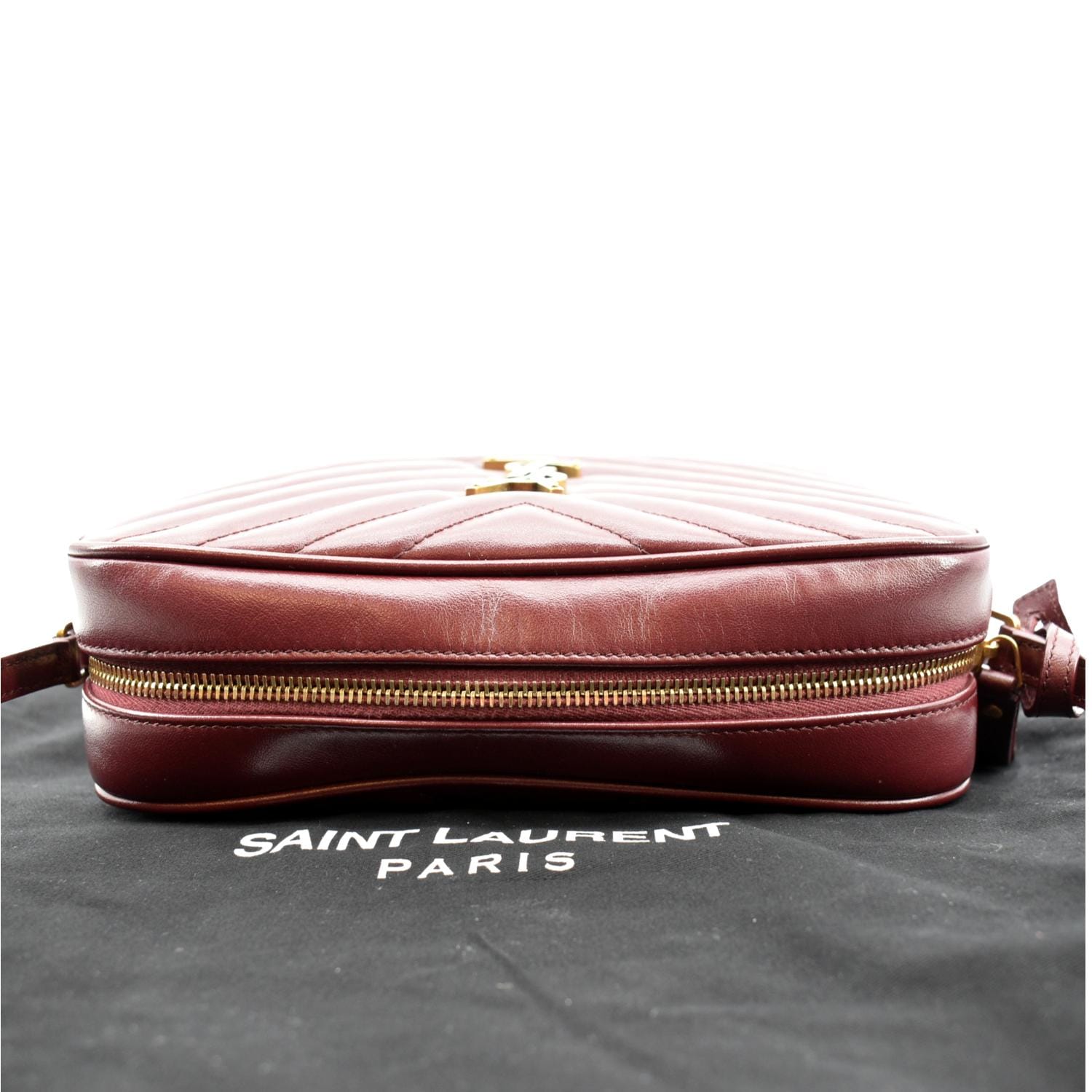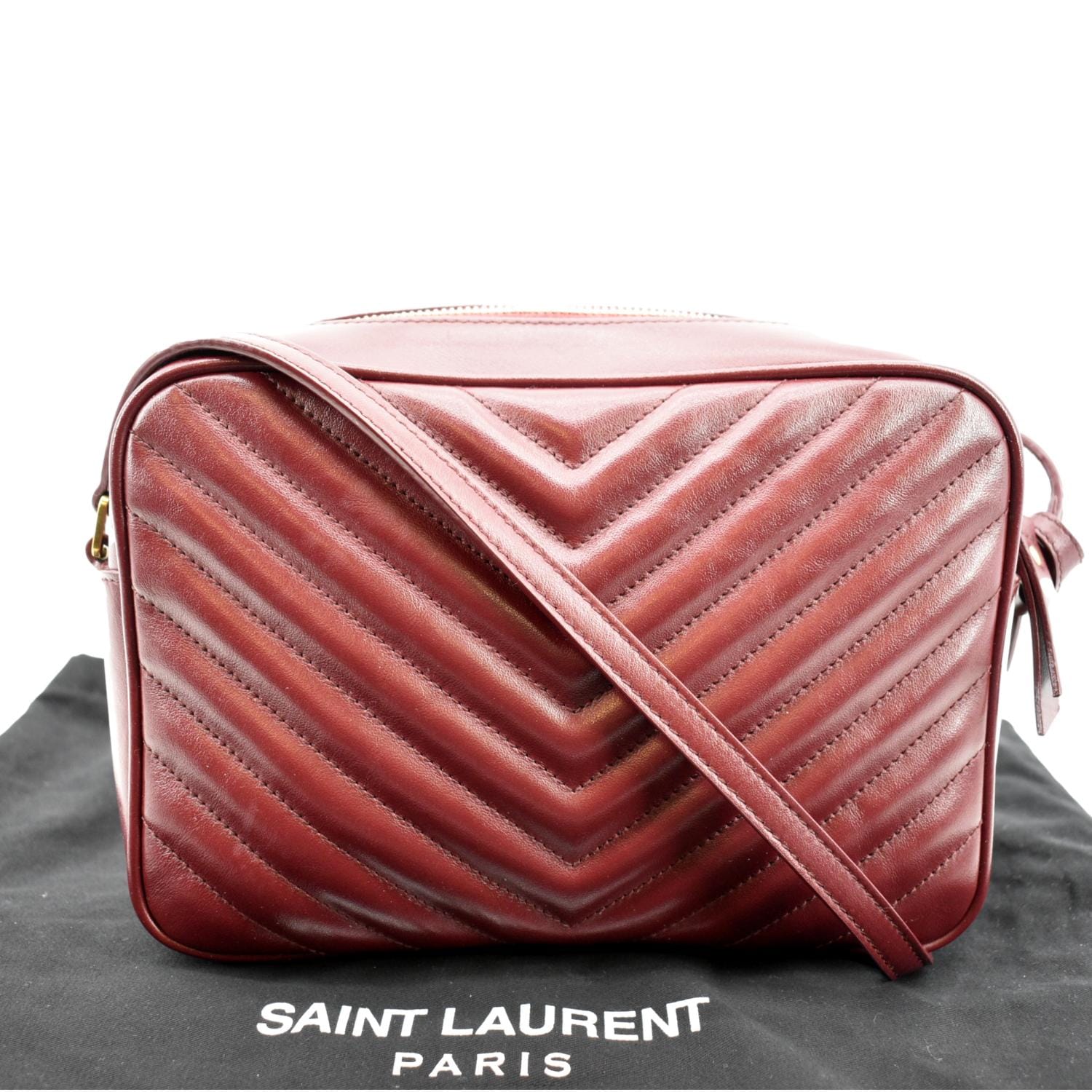 YVES SAINT LAURENT Lou Camera Chevron Leather Crossbody Bag Maroon