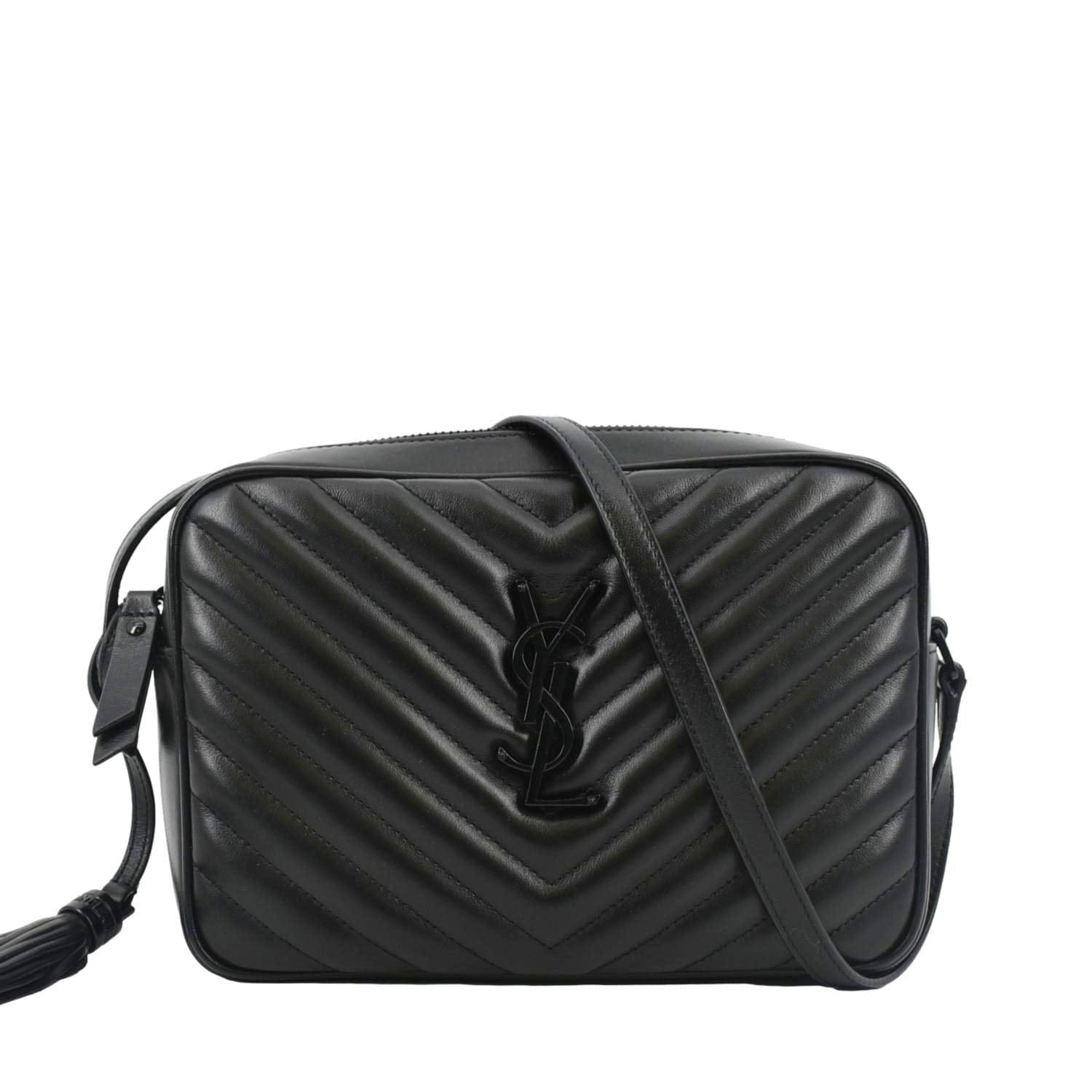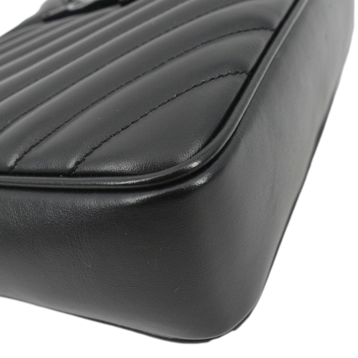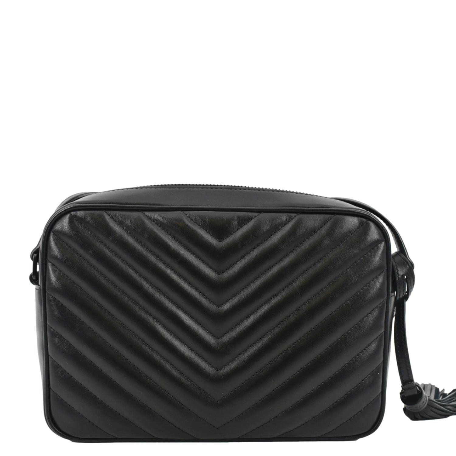 YVES SAINT LAURENT Lou Chevron Leather Camera Crossbody Bag Black