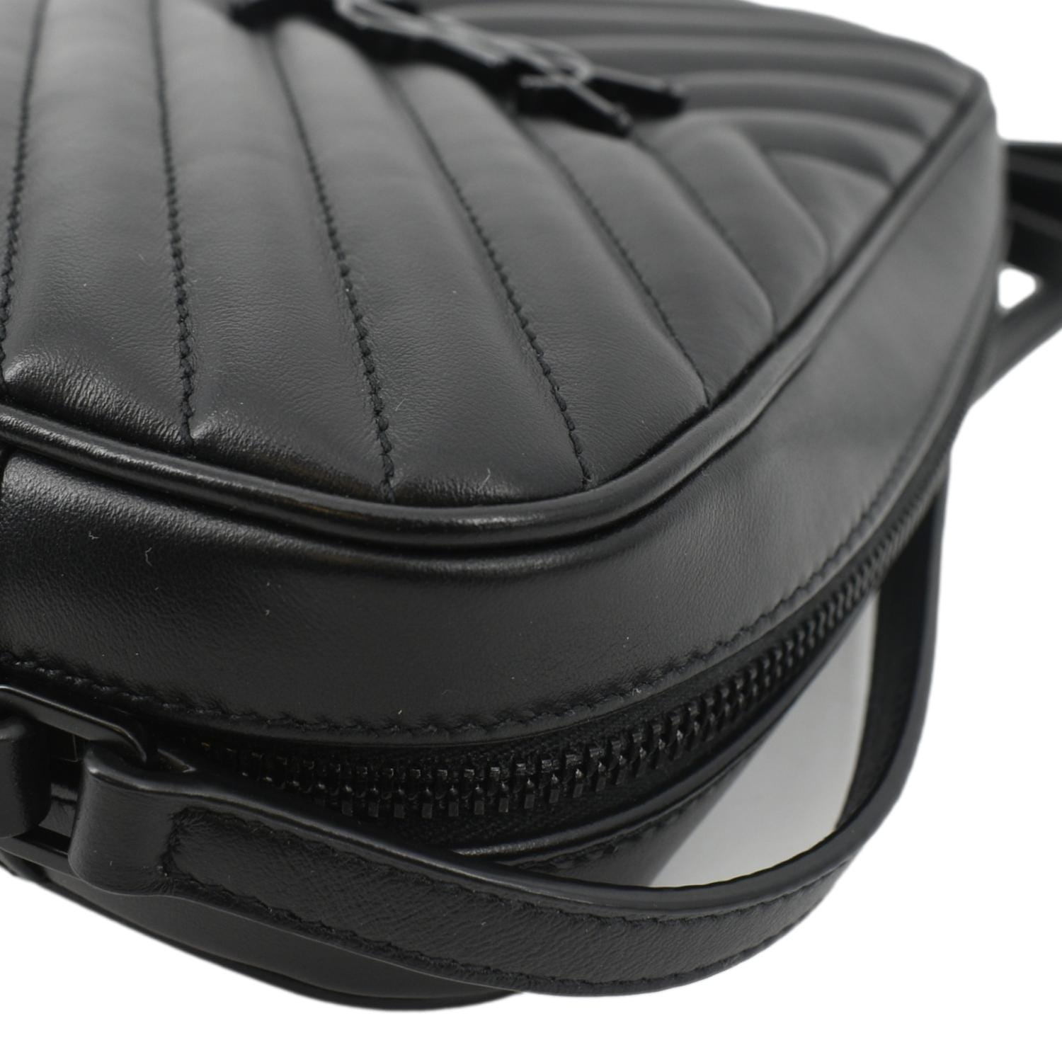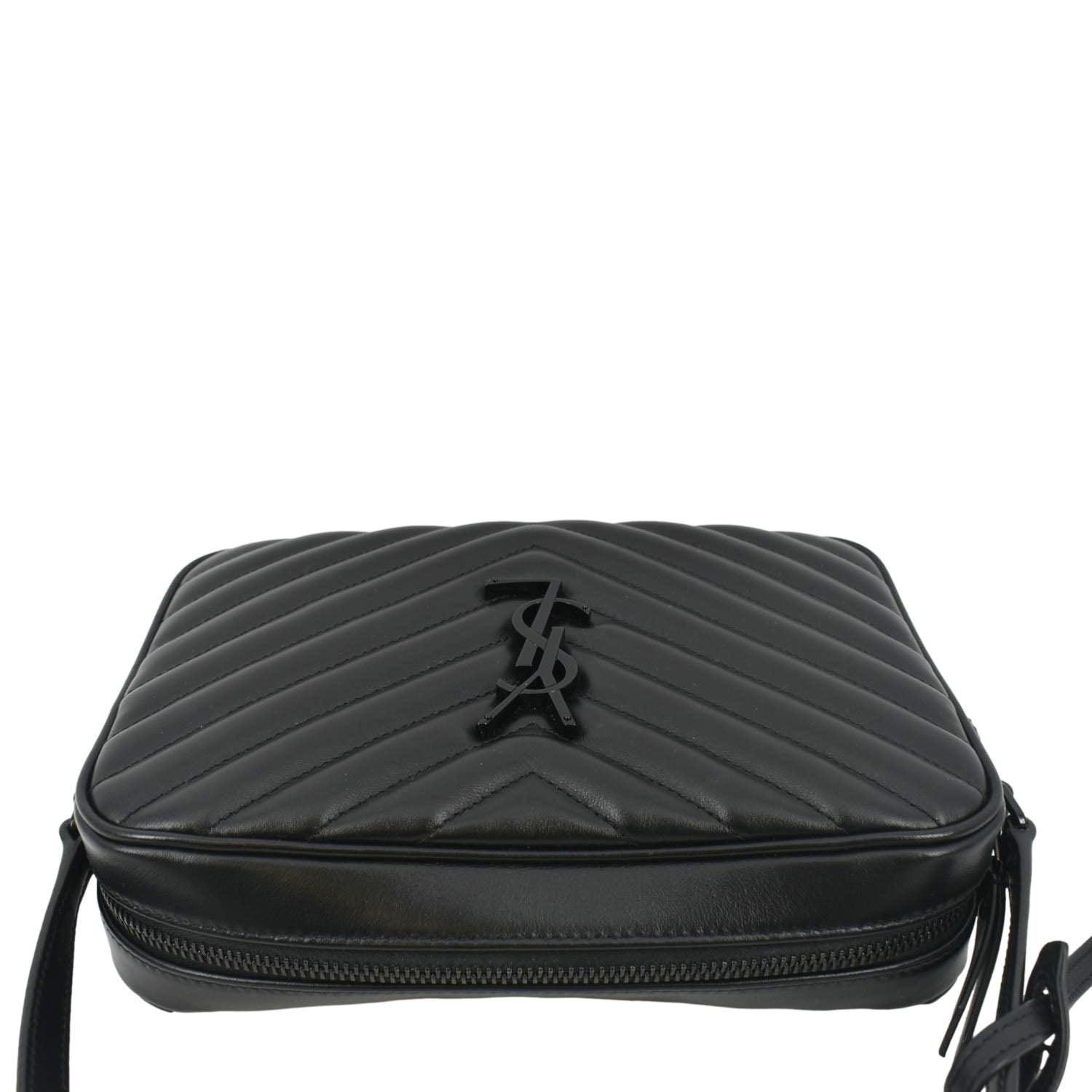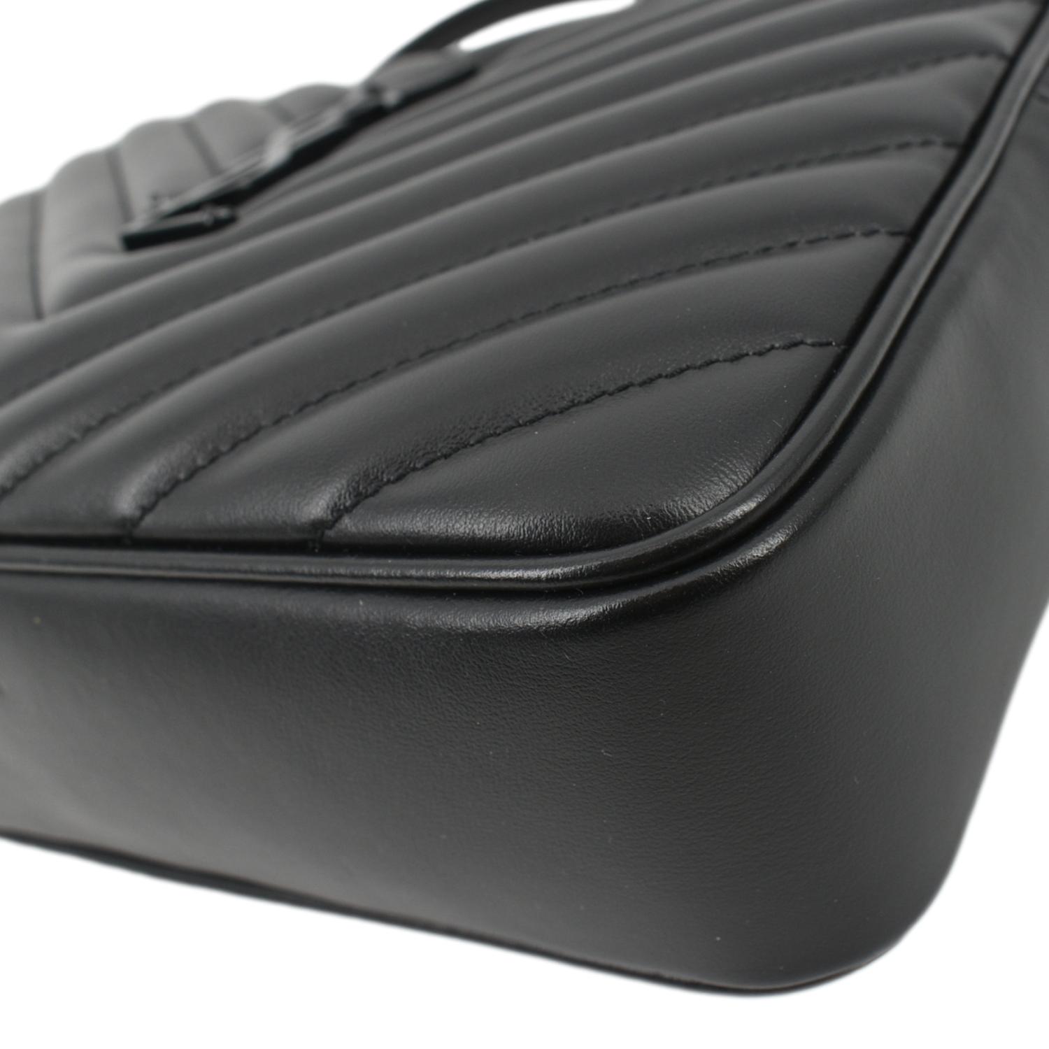YVES SAINT LAURENT Lou Chevron Leather Camera Crossbody Bag Black
