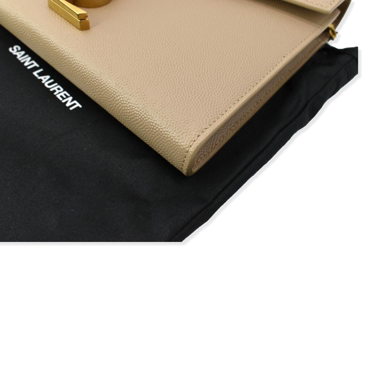 YVES SAINT LAURENT Cassandra Grain De Poudre Embossed Chain Wallet Beige
