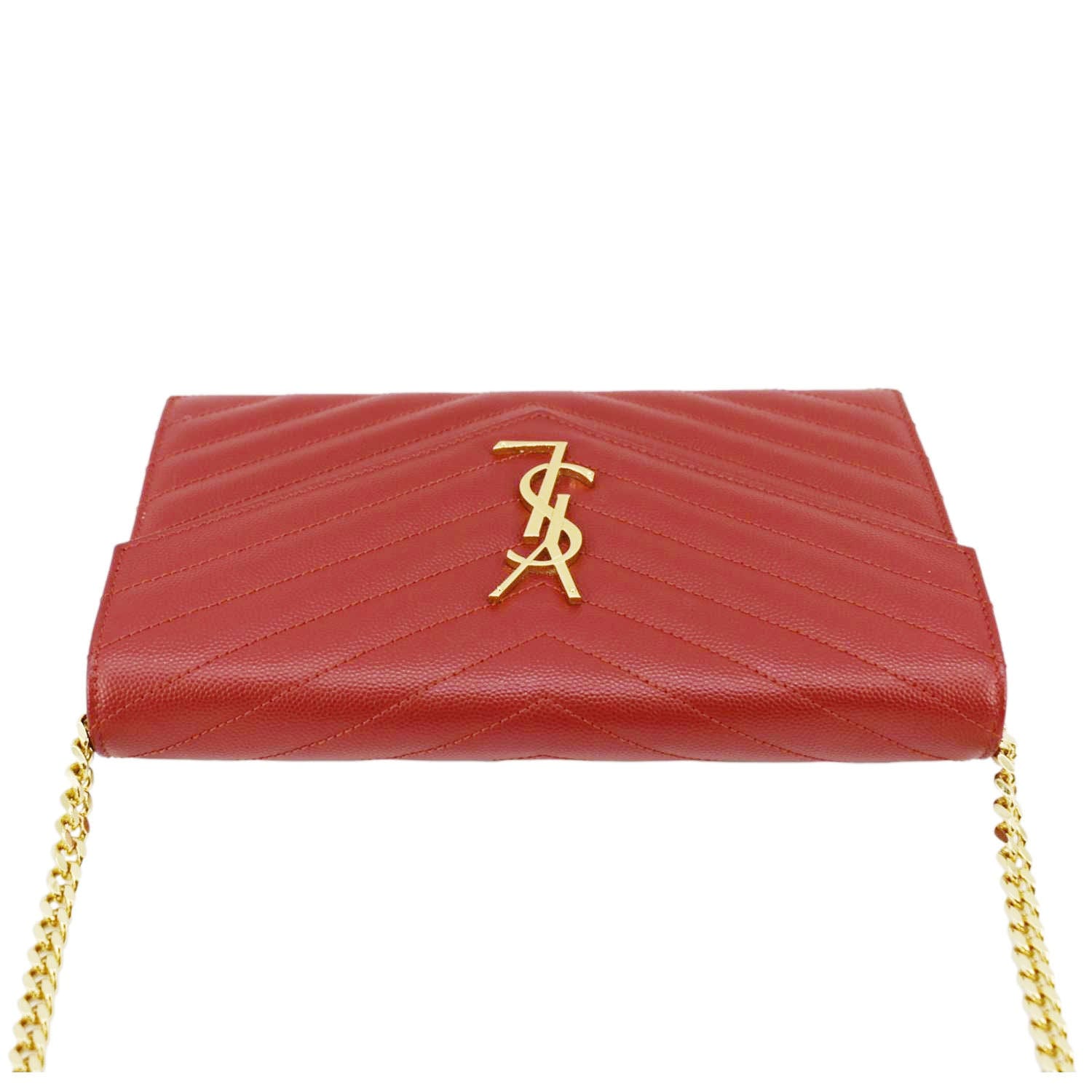 YVES SAINT LAURENT Cassandre Leather Chain Crossbody Bag Red