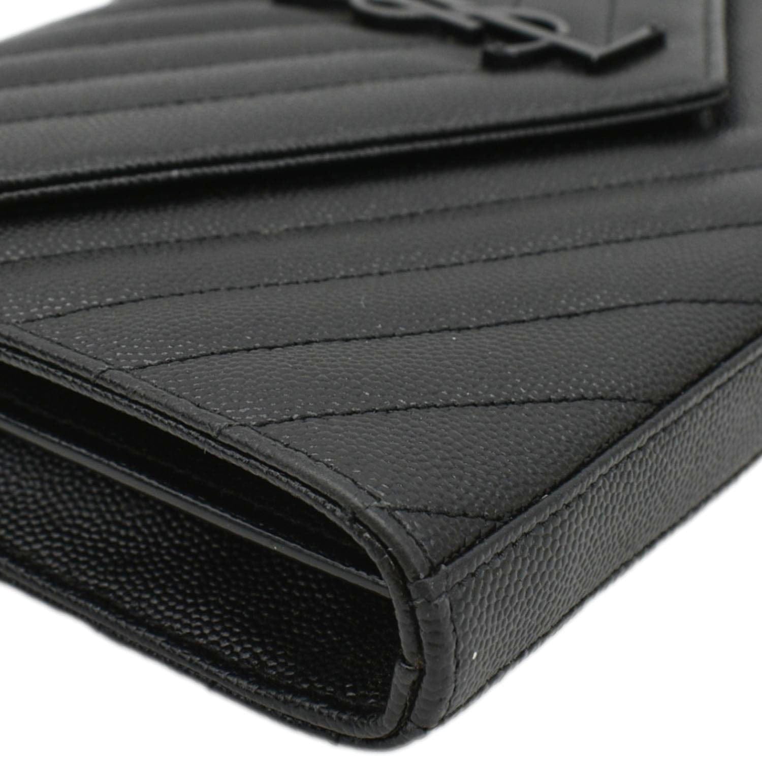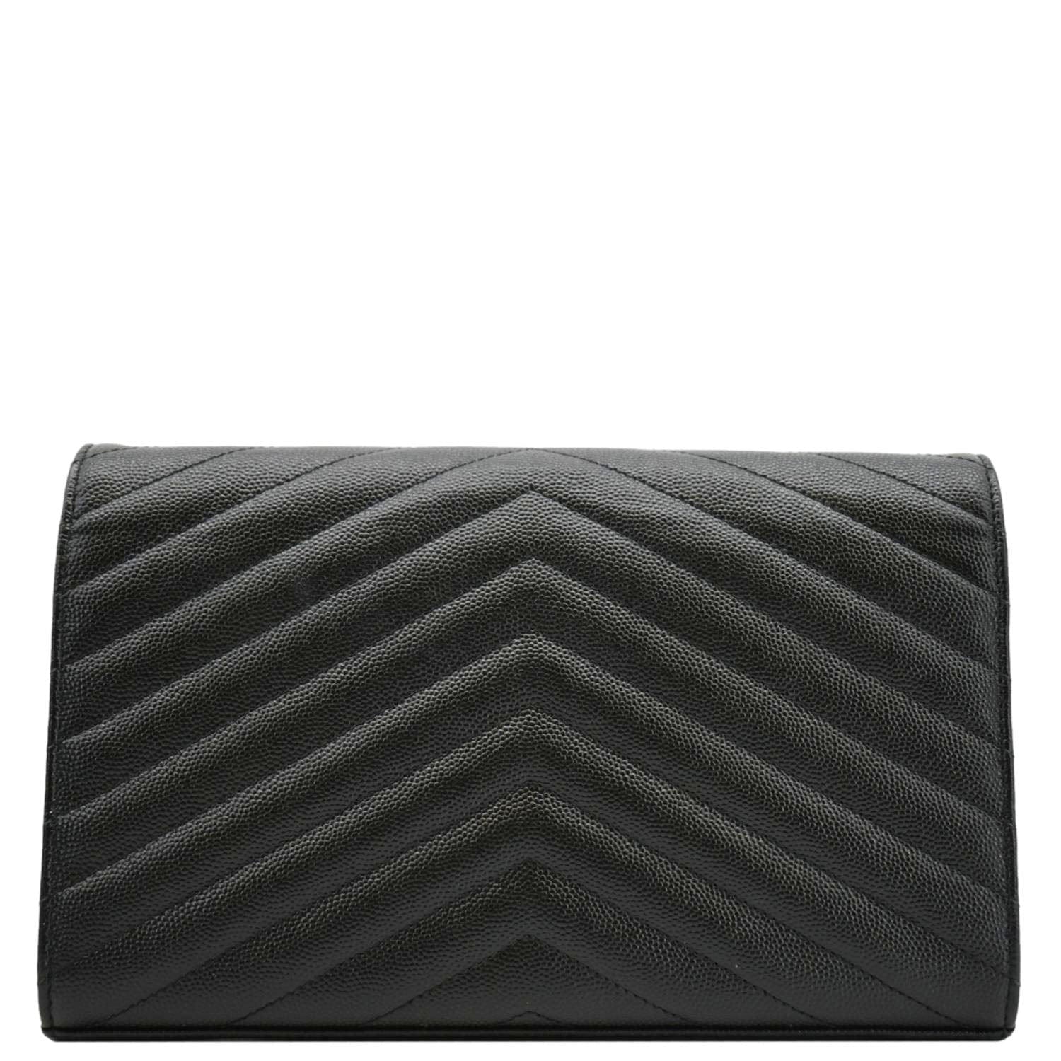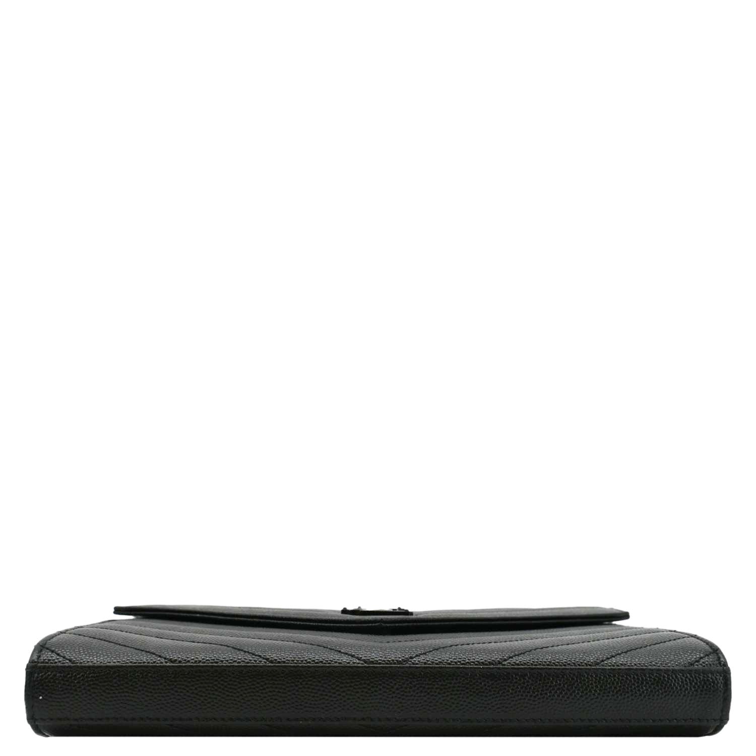 YVES SAINT LAURENT Cassandre Envelope Grain De Poudre Leather Chain Crossbody Bag Black