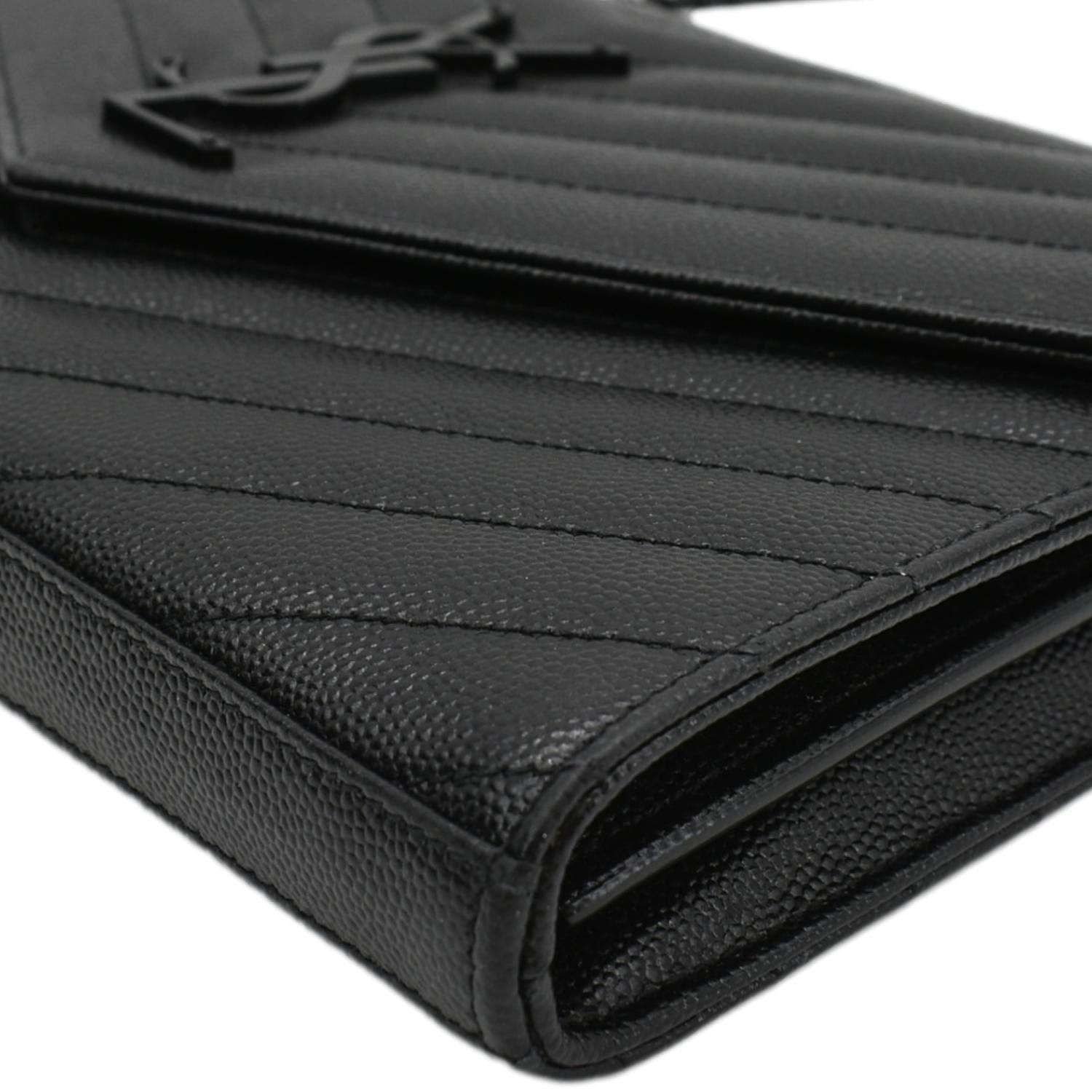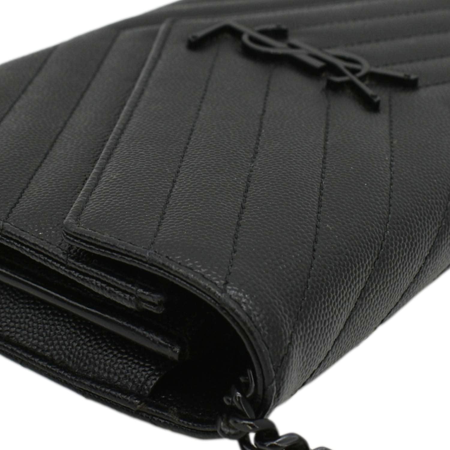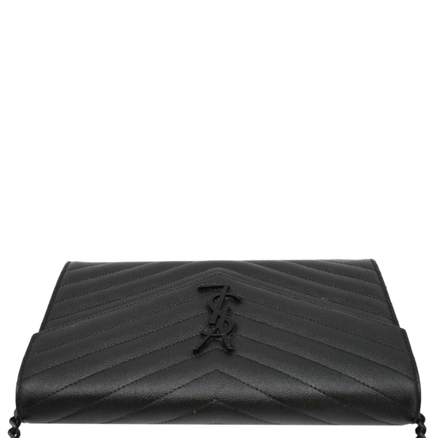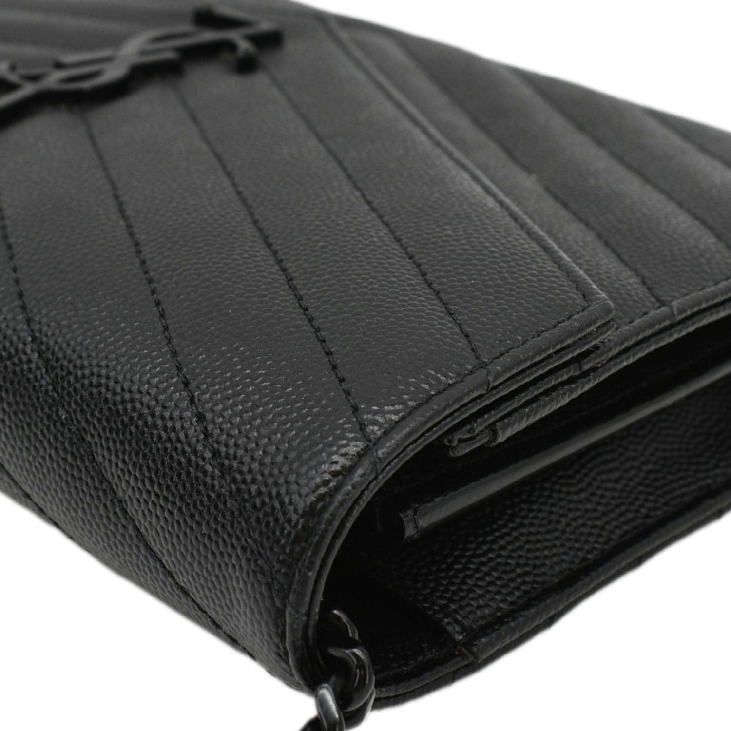 YVES SAINT LAURENT Cassandre Envelope Grain De Poudre Leather Chain Crossbody Bag Black