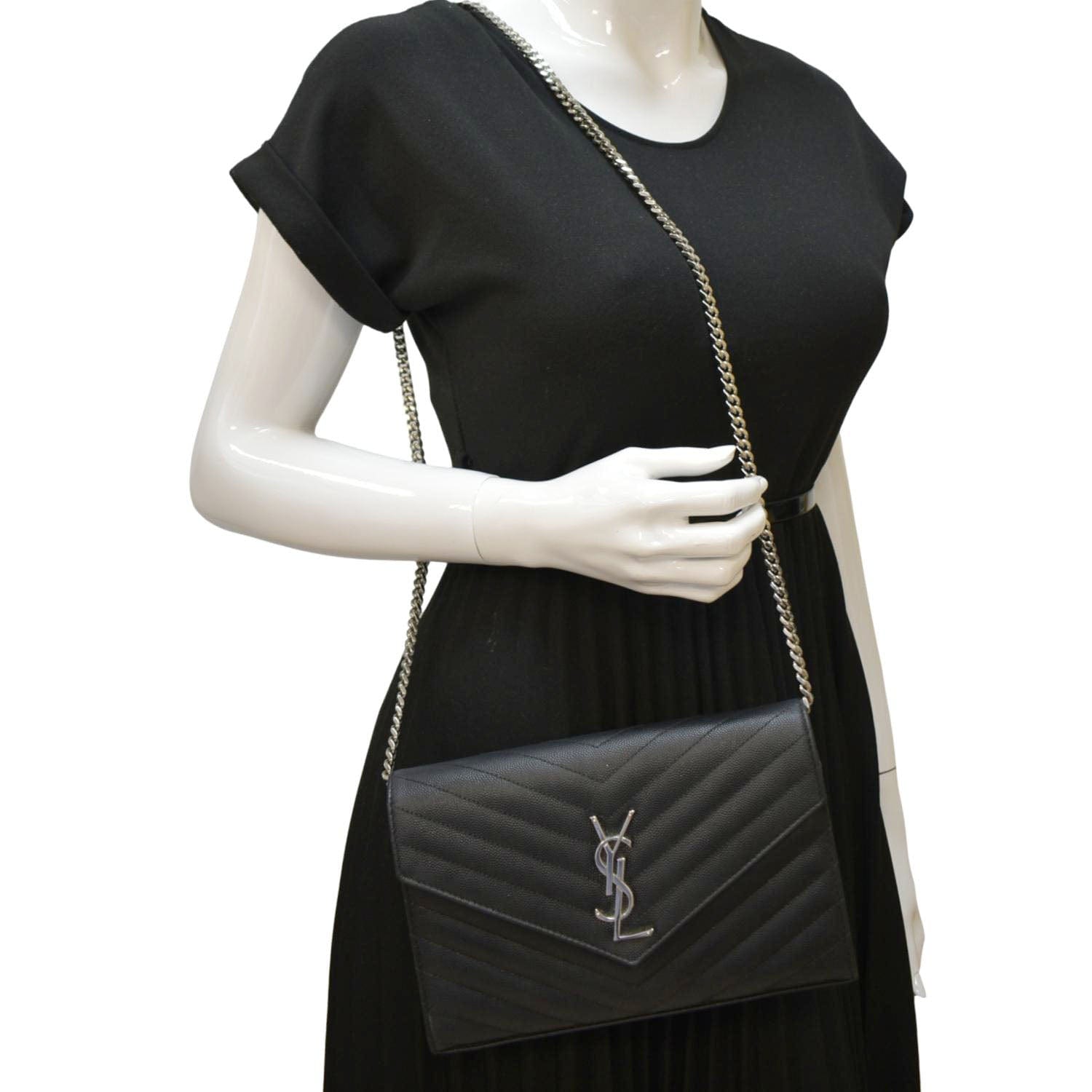 YVES SAINT LAURENT Cassandre Chain Wallet Leather Crossbody Bag Black